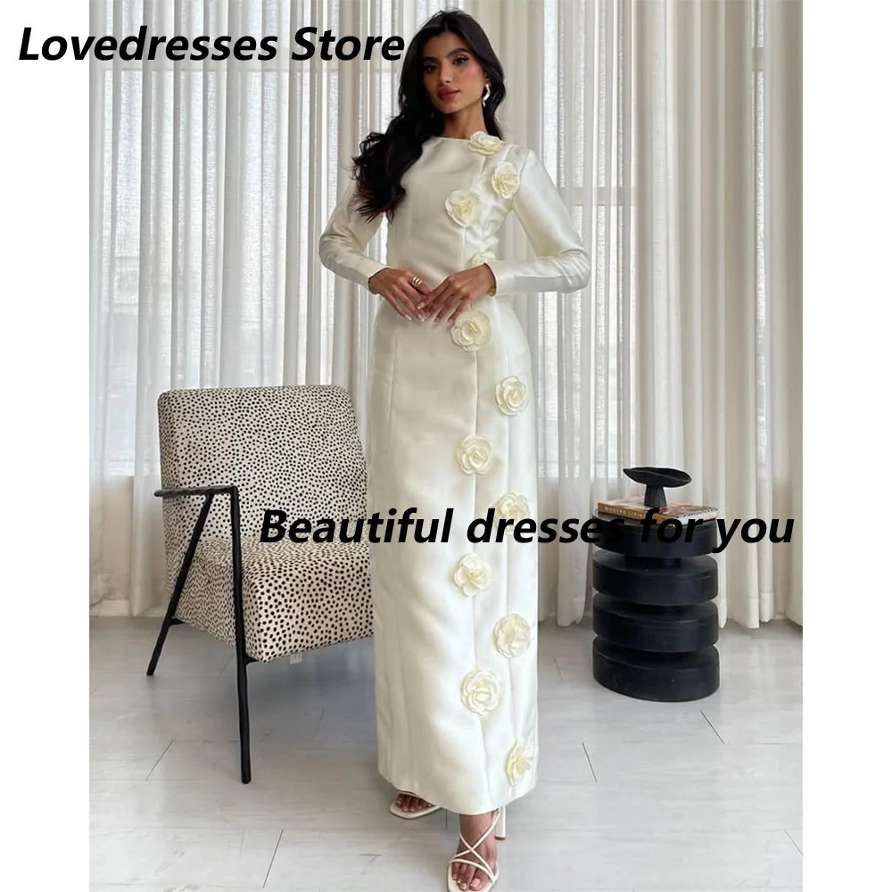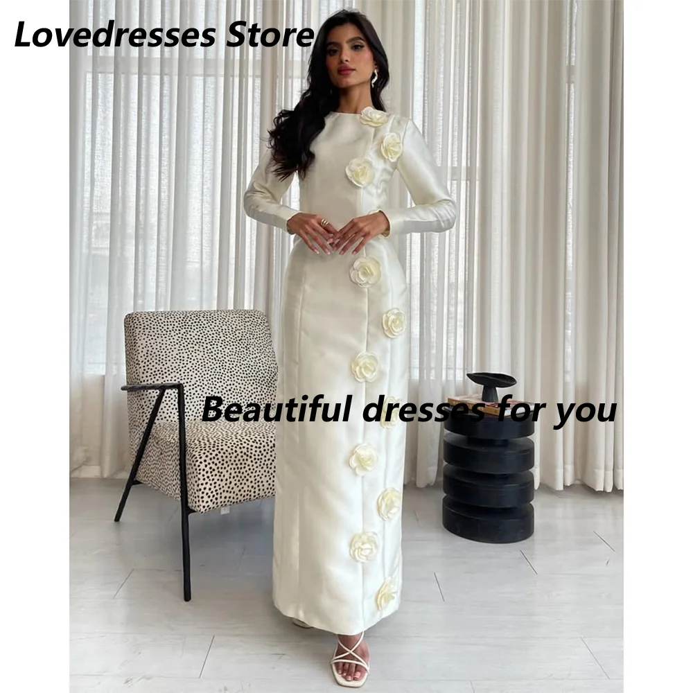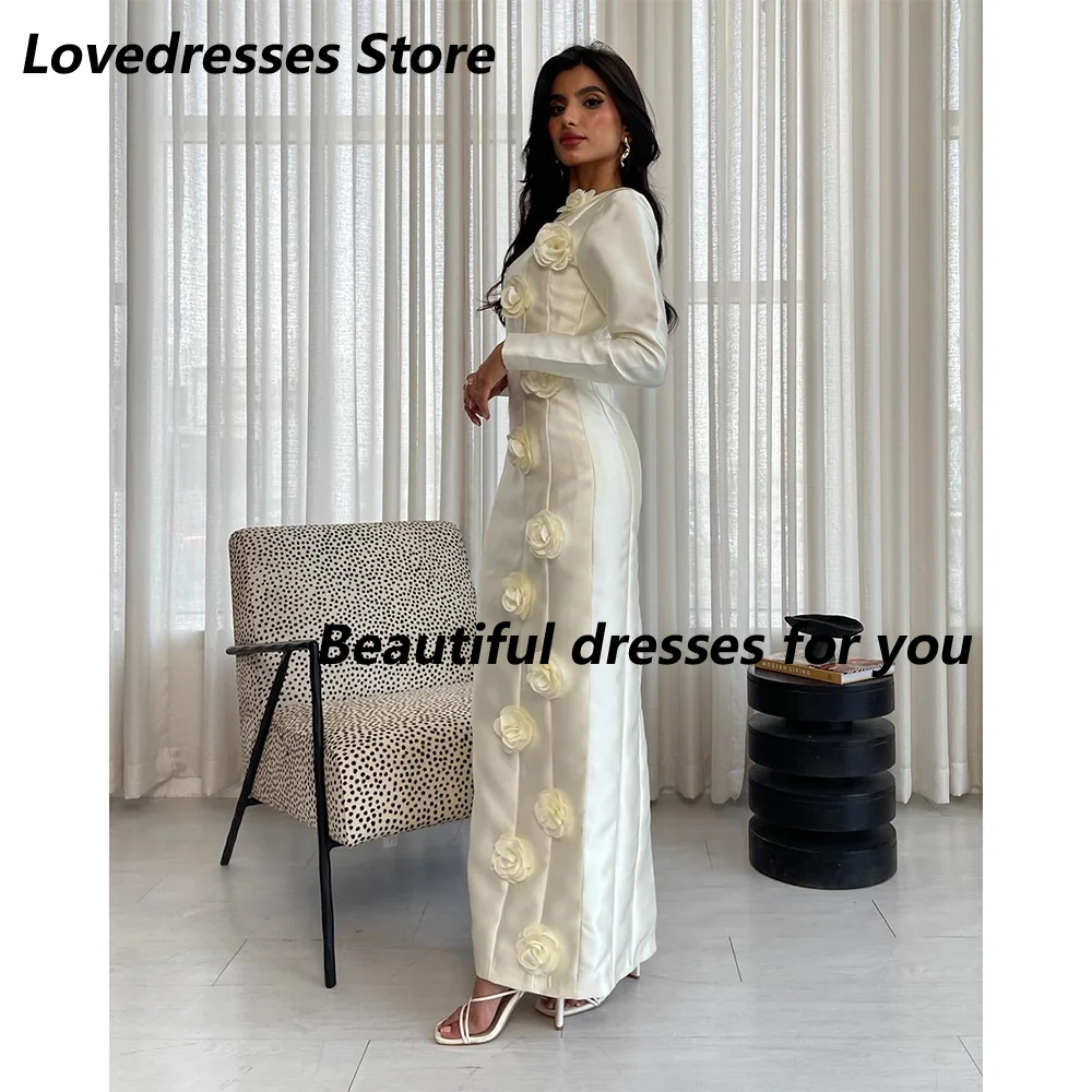 Elegant Evening Dresses for Women Long Sleeves Flowers Floor-Length Prom Formal