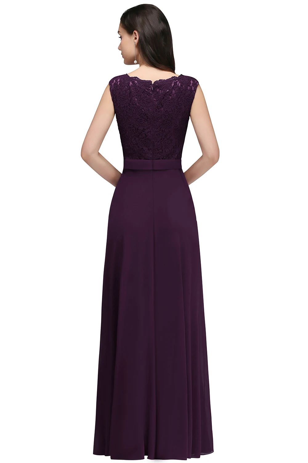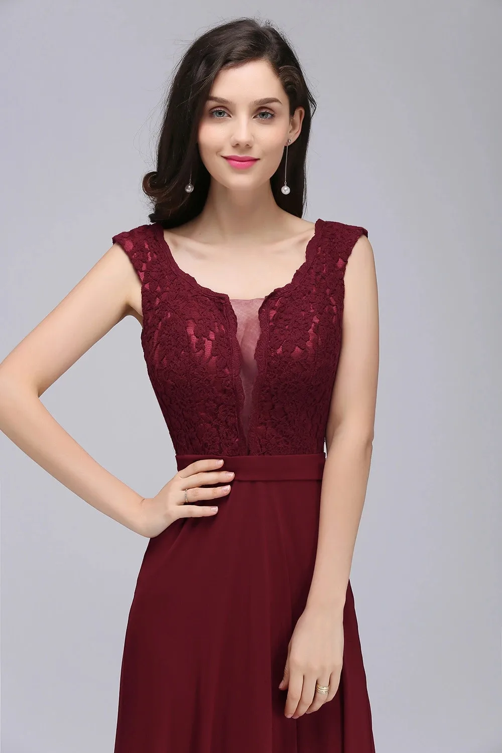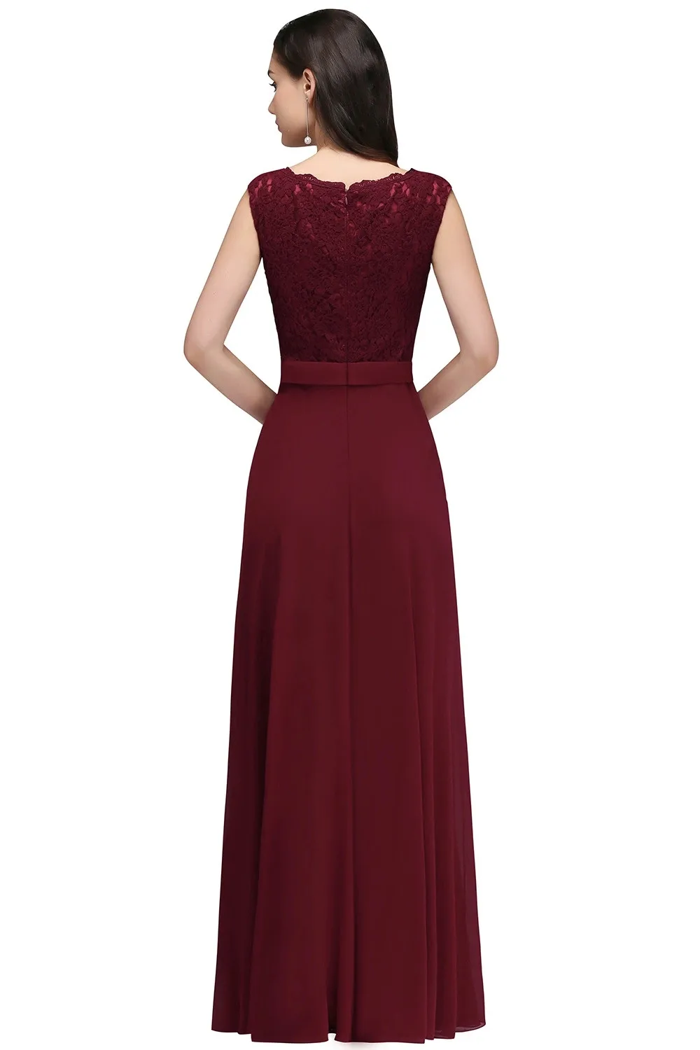 Elegant Long Burgundy Women Evening Dresses Sexy Illusion O Neck Lace Sleeveless
