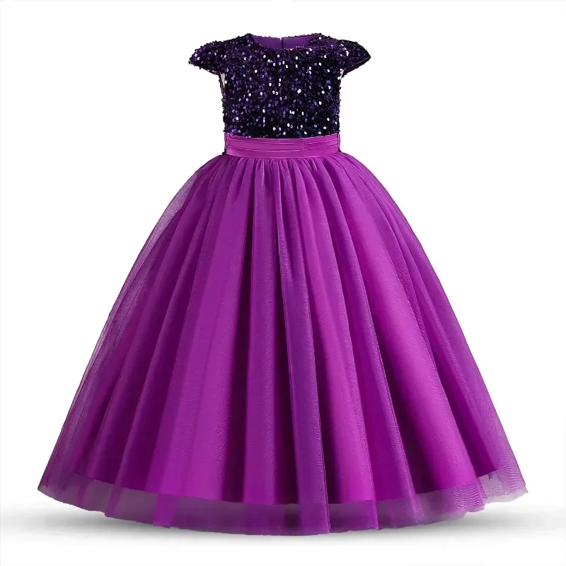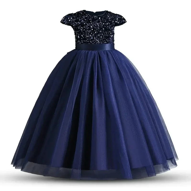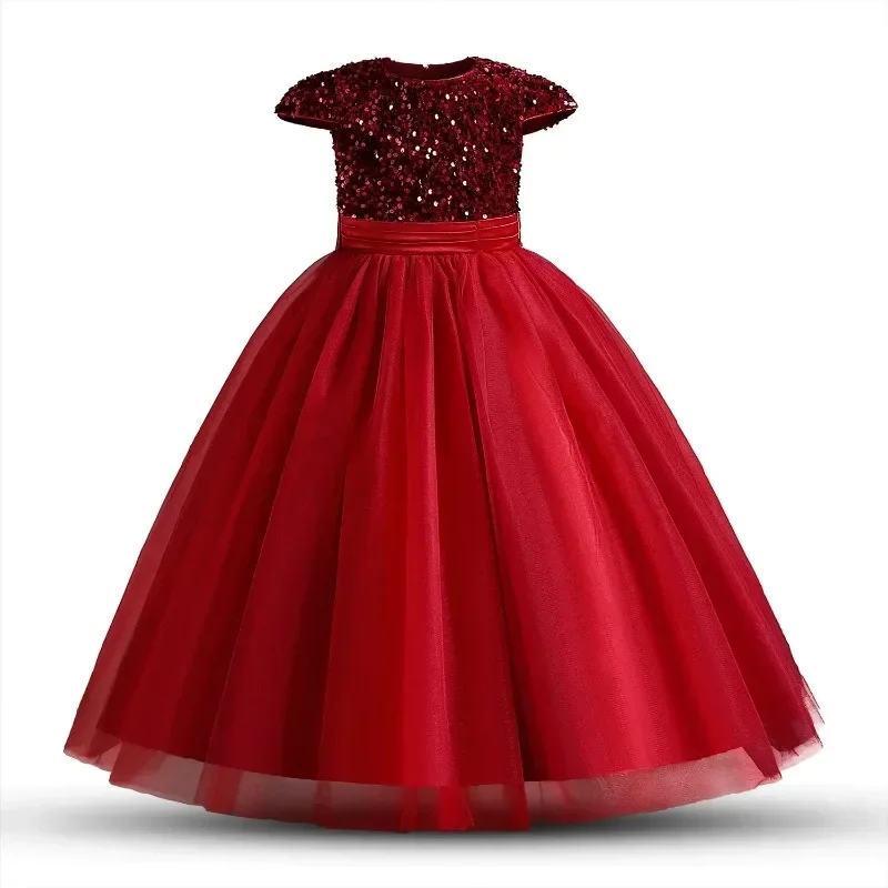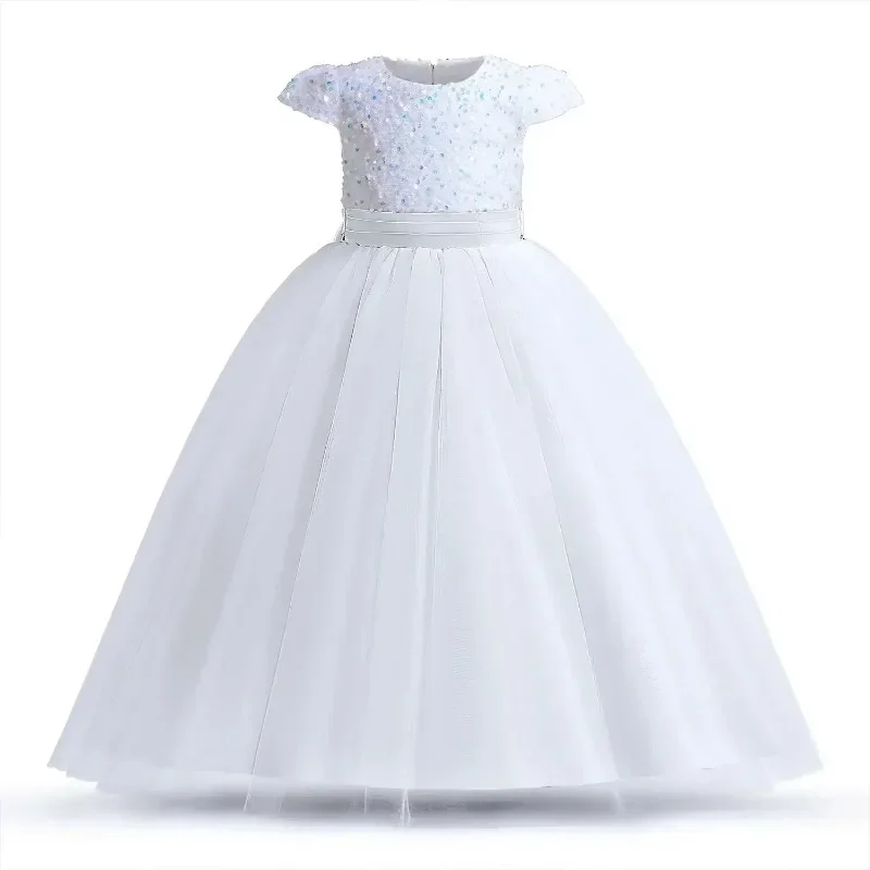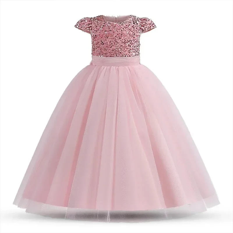 Elegant Party Dress for Girls Short Sleeve Princess Dress for Wedding Kids Sequi