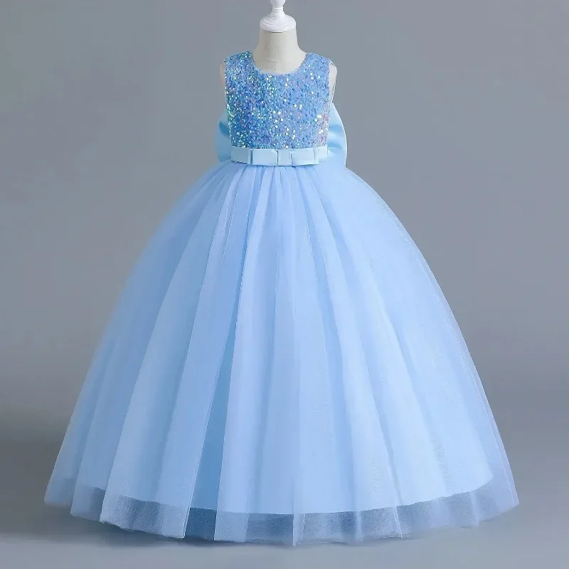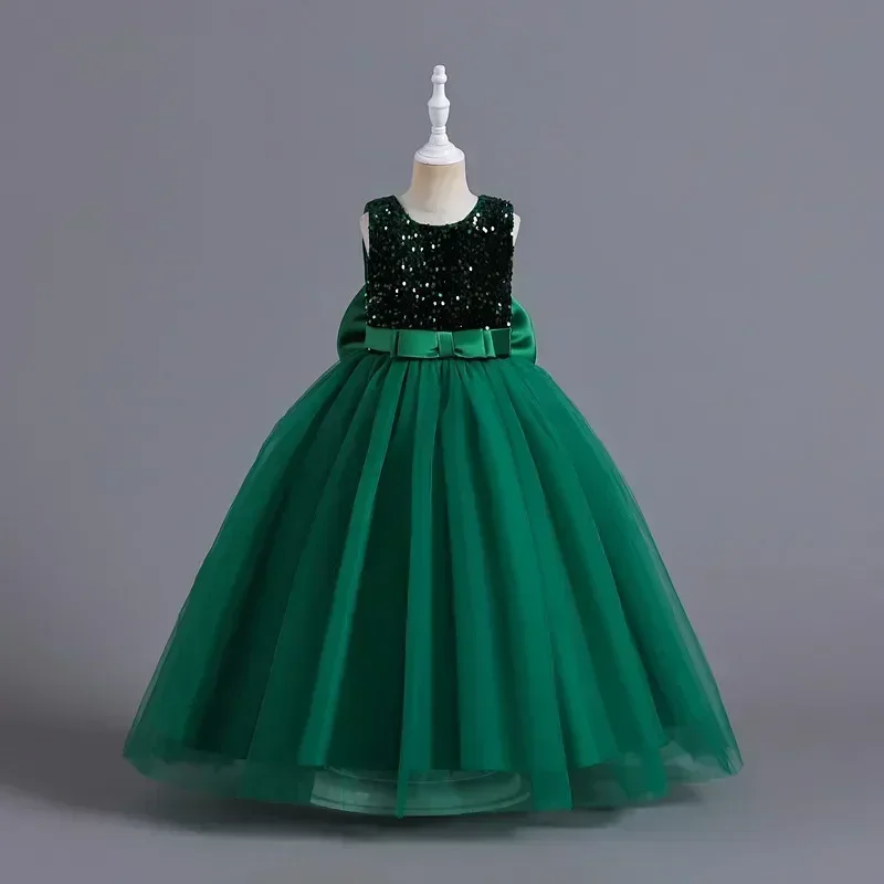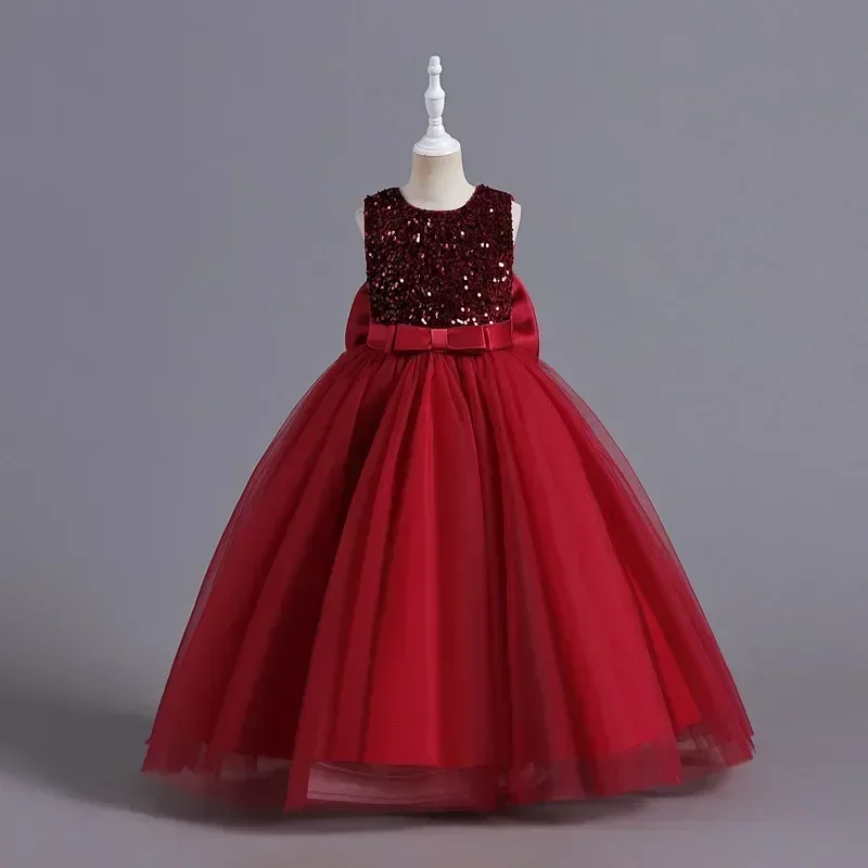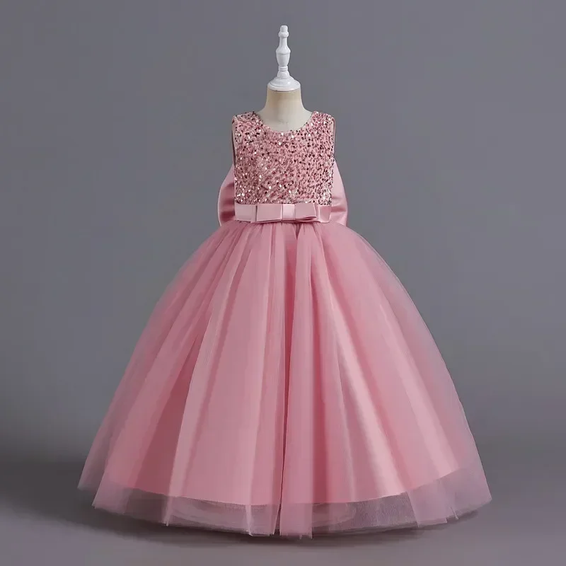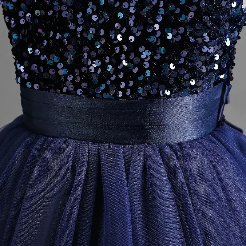 Elegant Party Dress for Girls Short Sleeve Princess Dress for Wedding Kids Sequi
