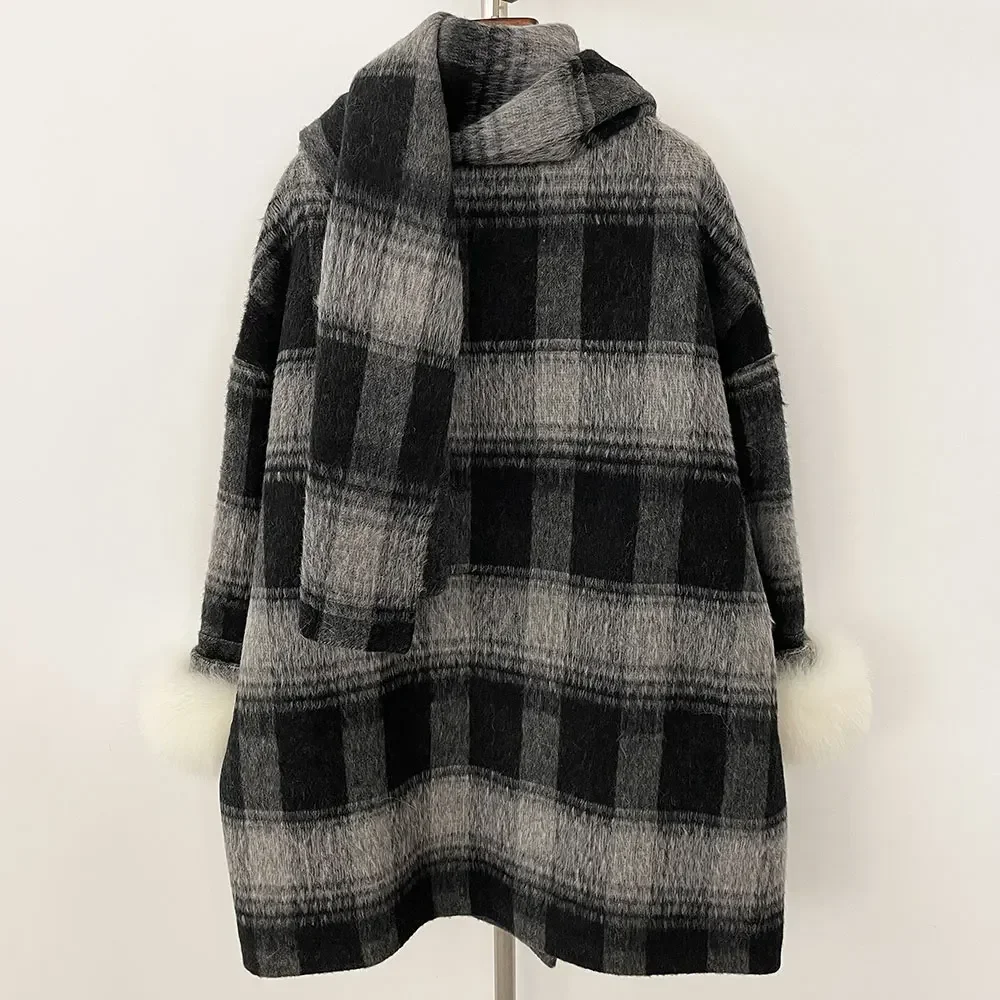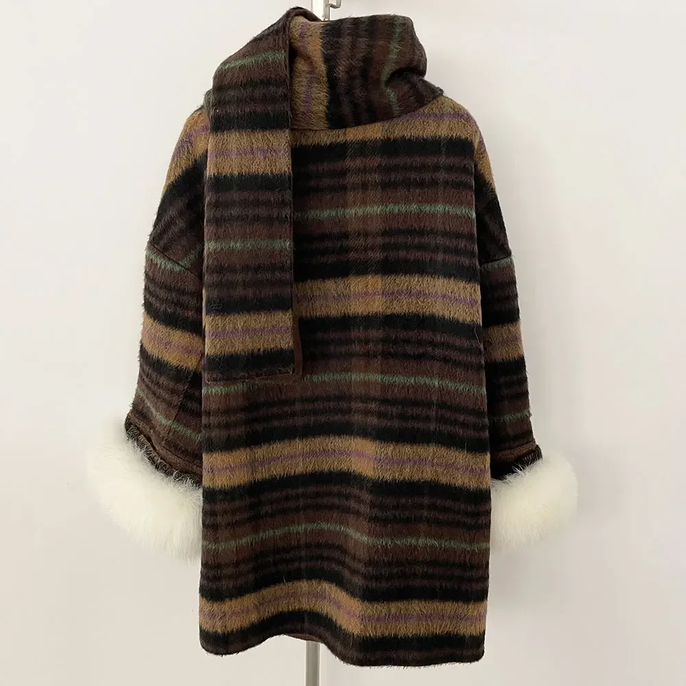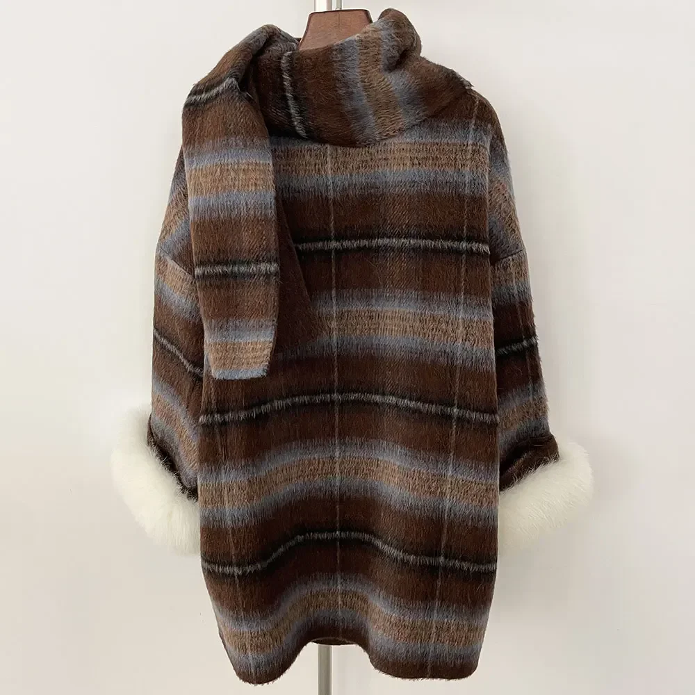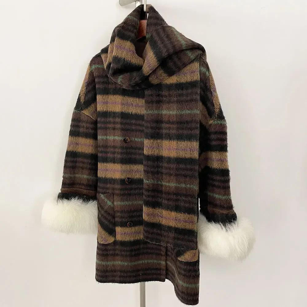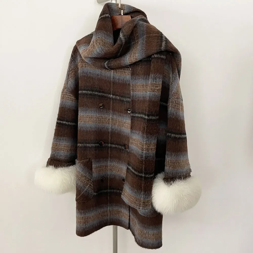 Fashion 2024 Winter Women Coat Real Natural Fox Fur Cuff Turn-down Double-faced