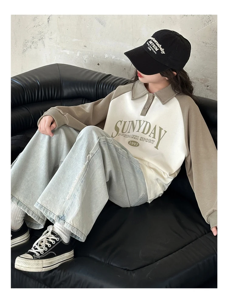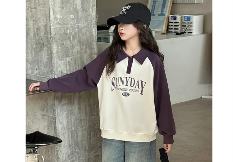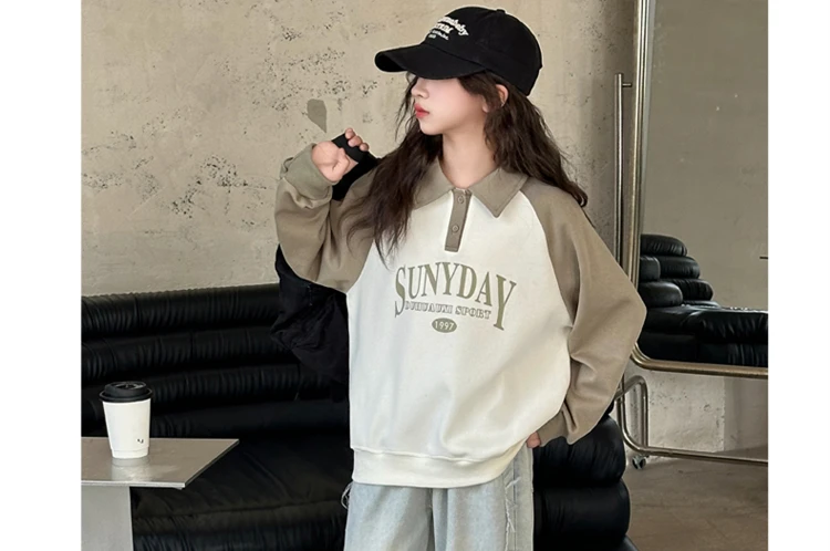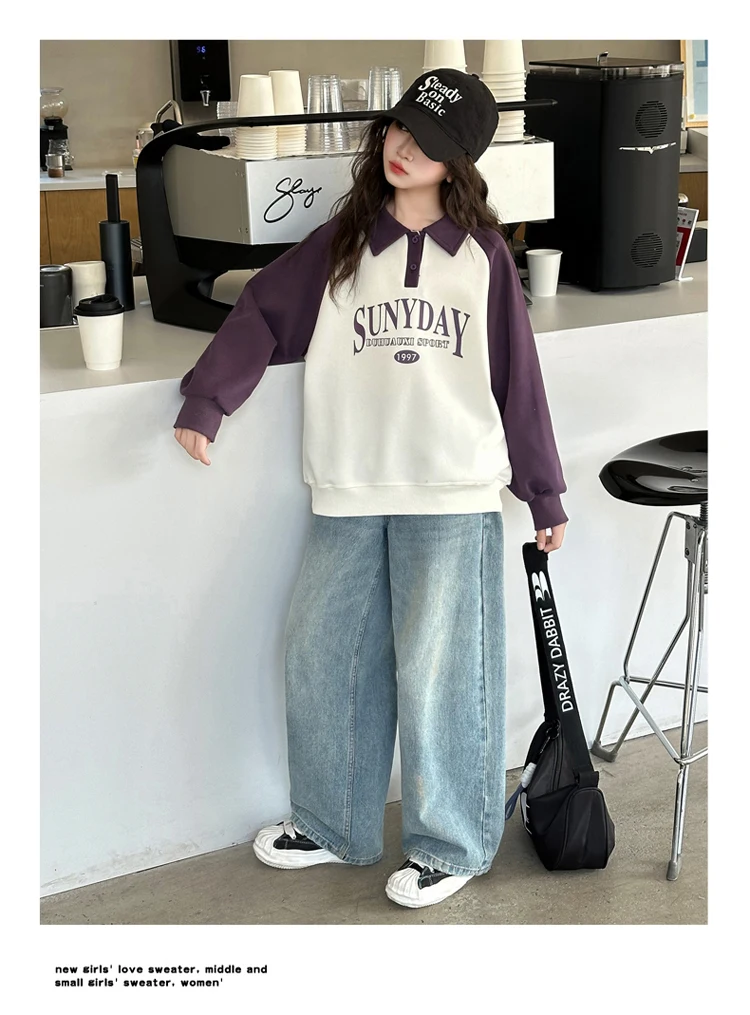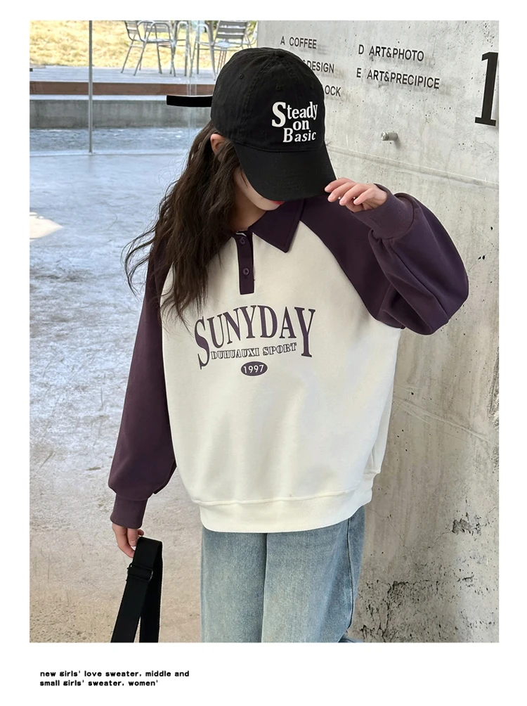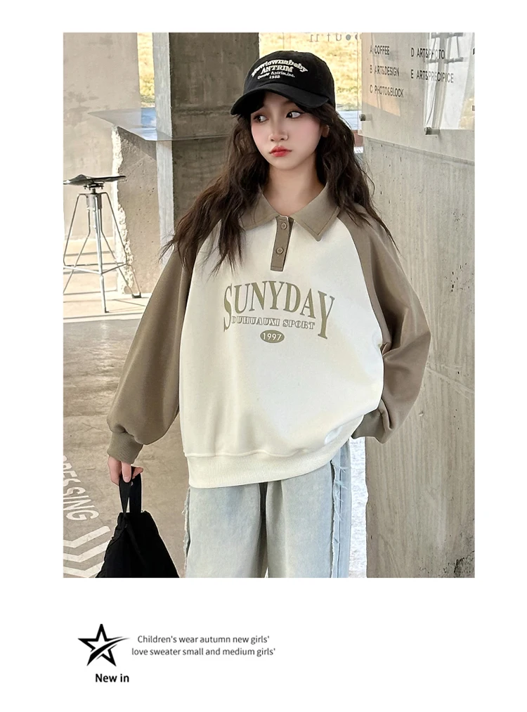 Girls Polo Sweatshirt: Girls Letter Sweatshirt