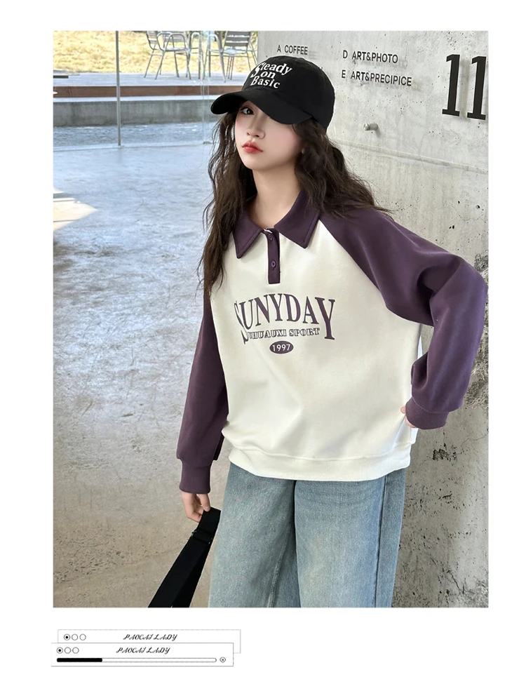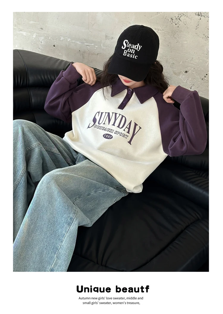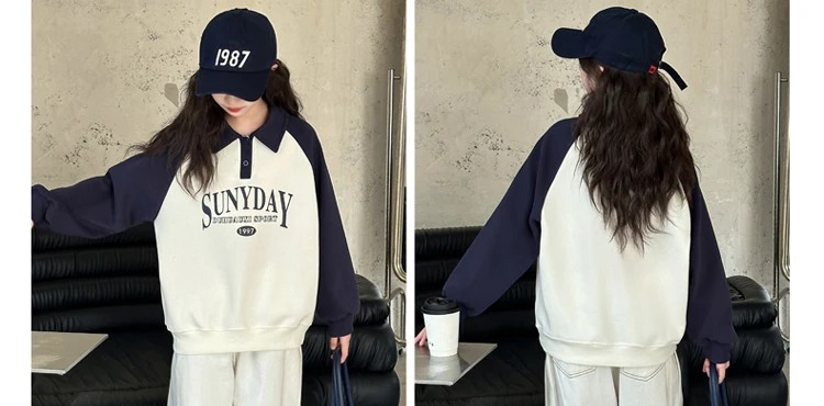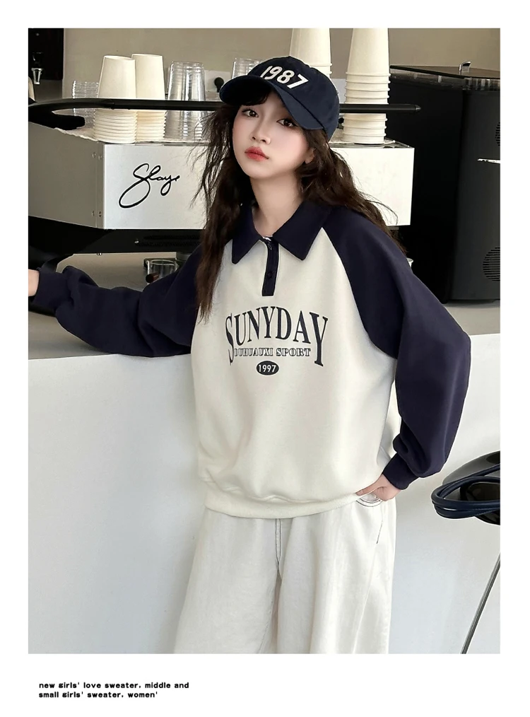 Girls Turn Down Collar Sweatshirt: Children Polo Sweatshirt