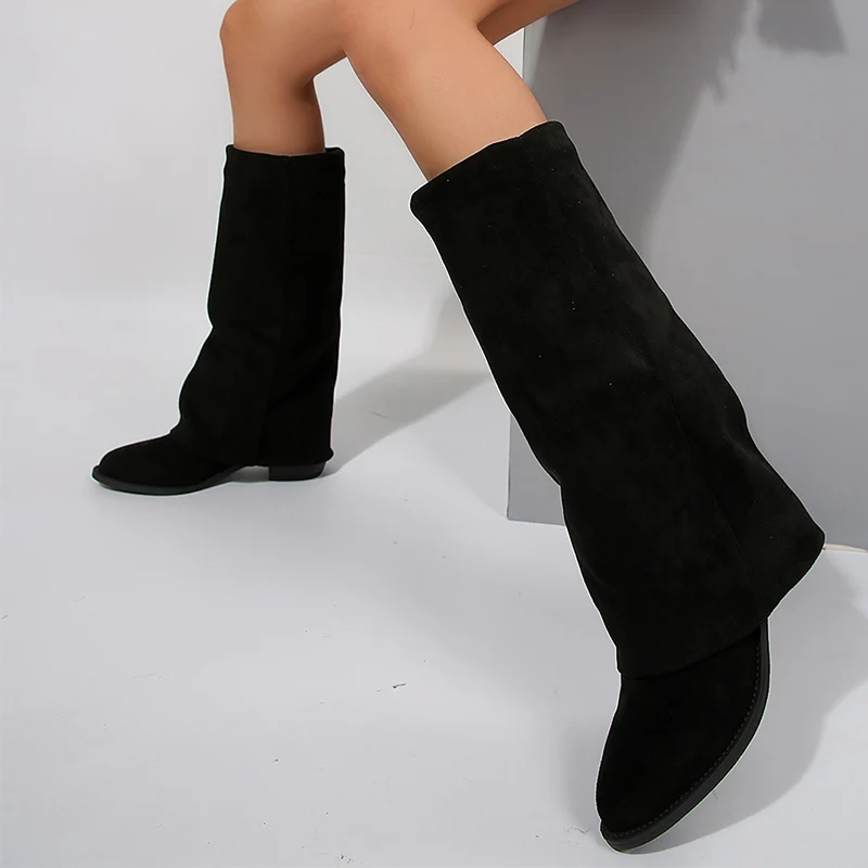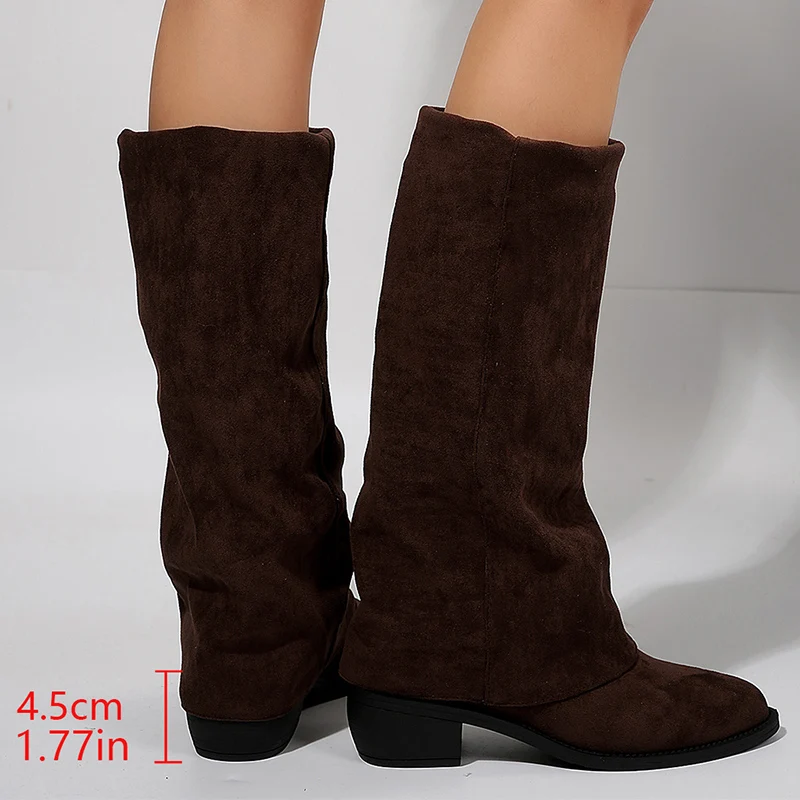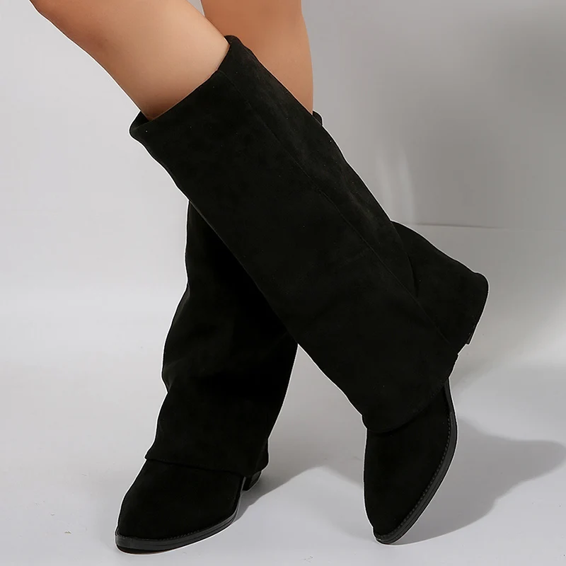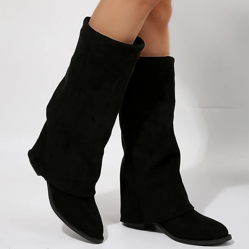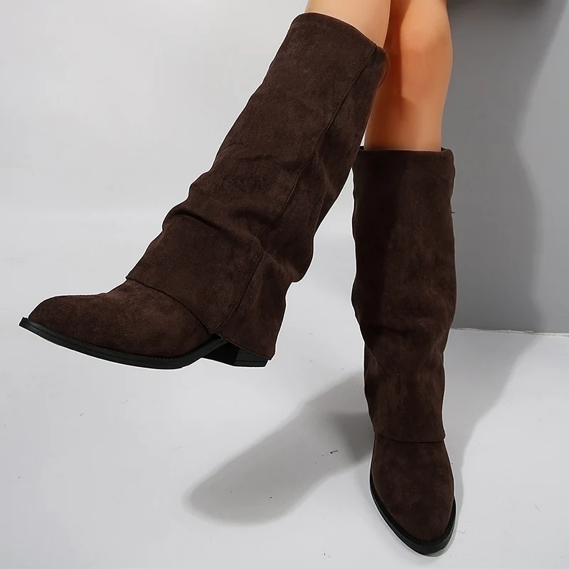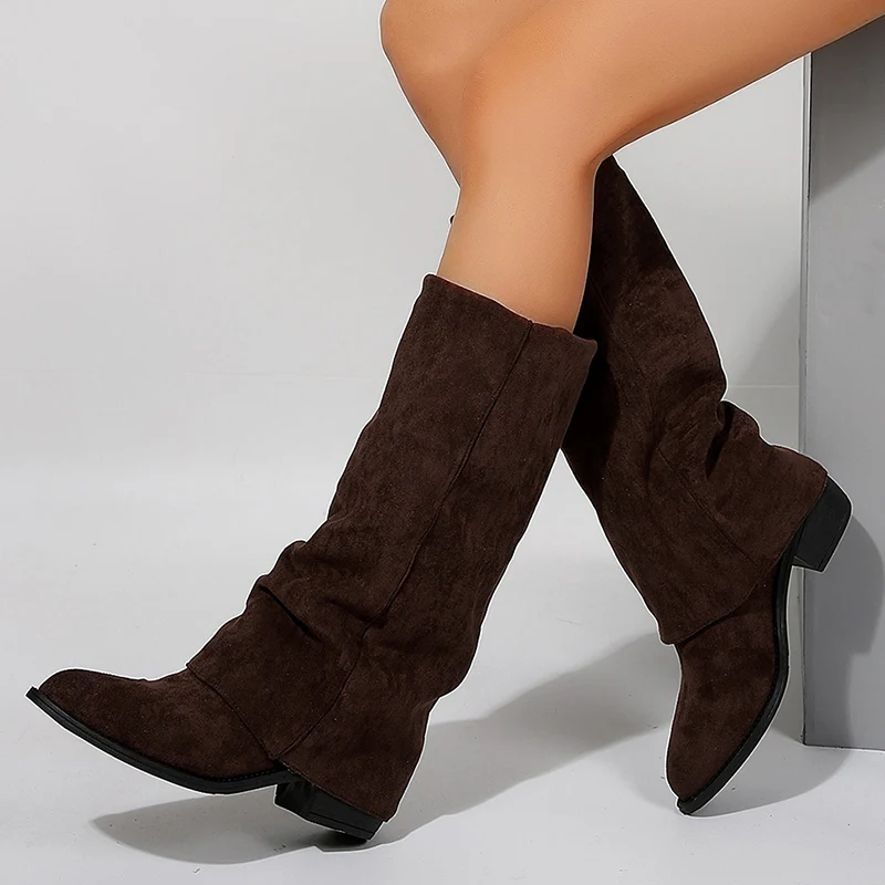 Fashion Knee High Heels Women's Boots Pointed Toe Thick Heel Mid-Calf Boots Wome