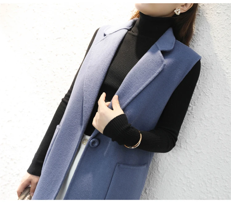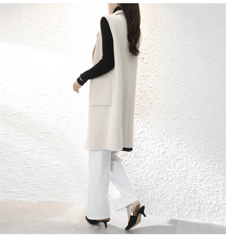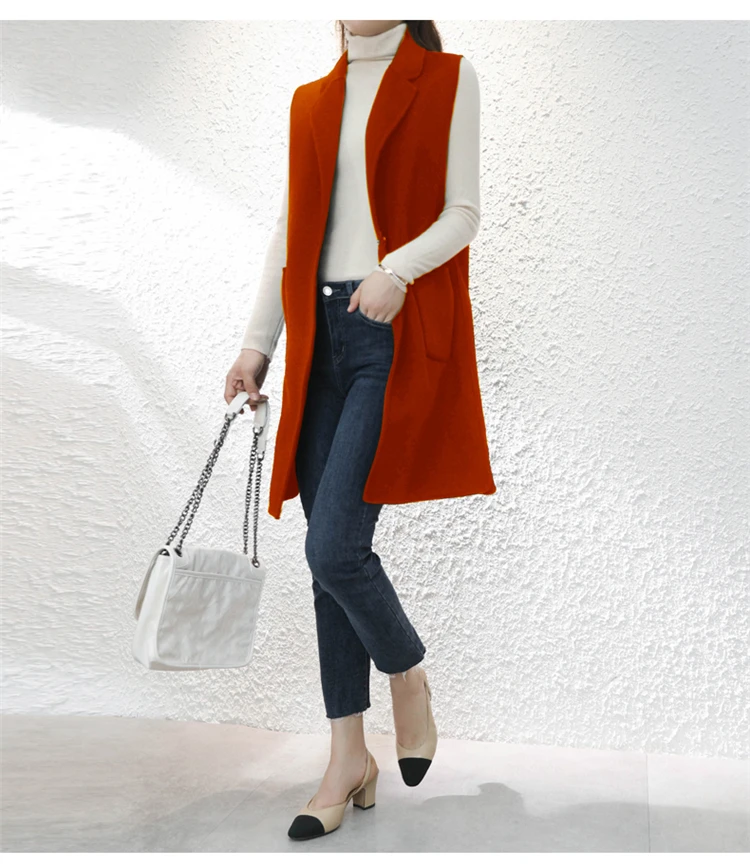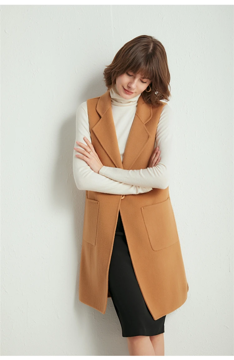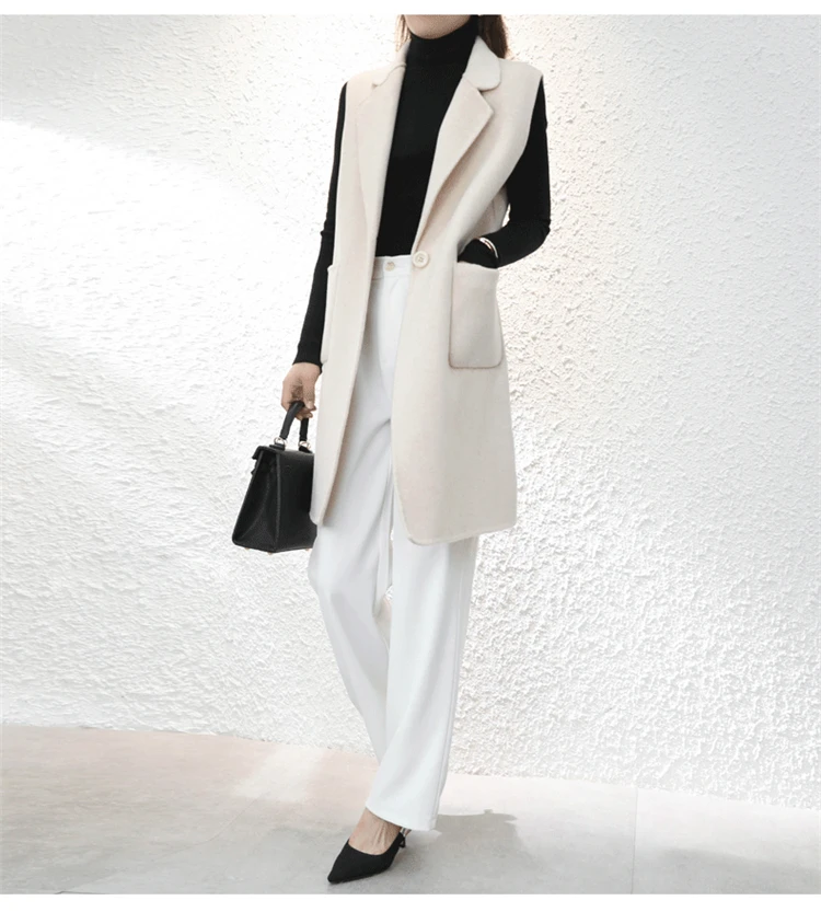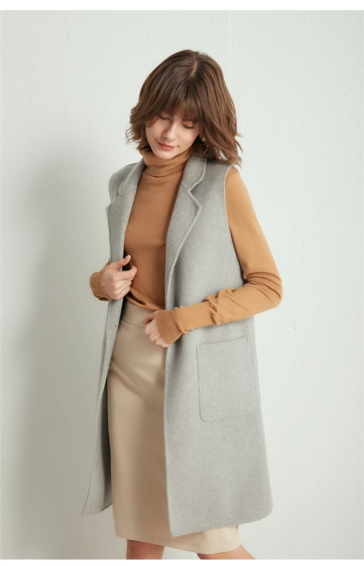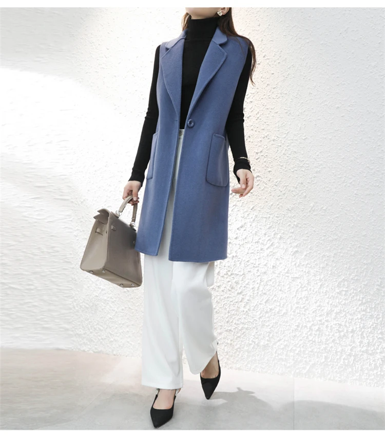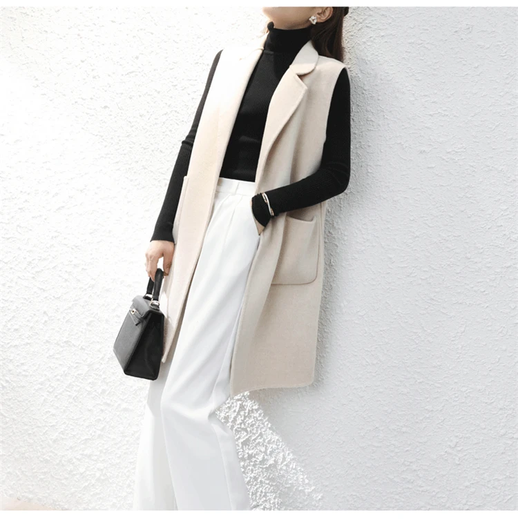 Fashion Trend Ladies' Vest Pure Wool Sleeveless Coat Solid Color Polo Collar Wom