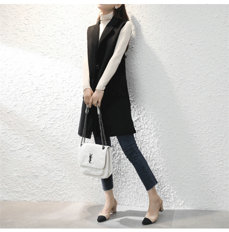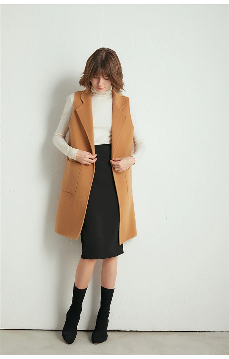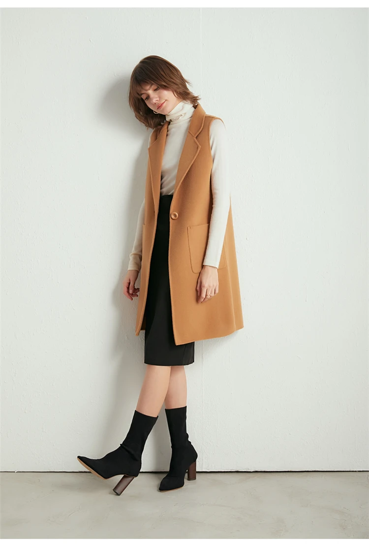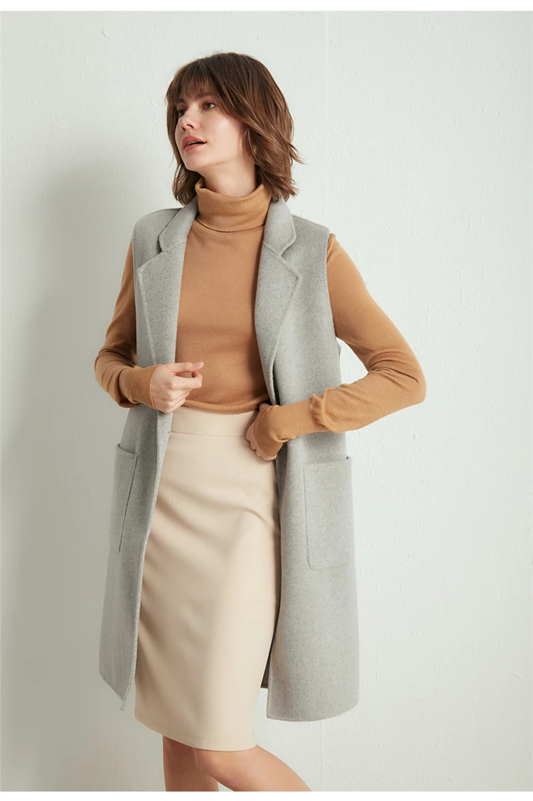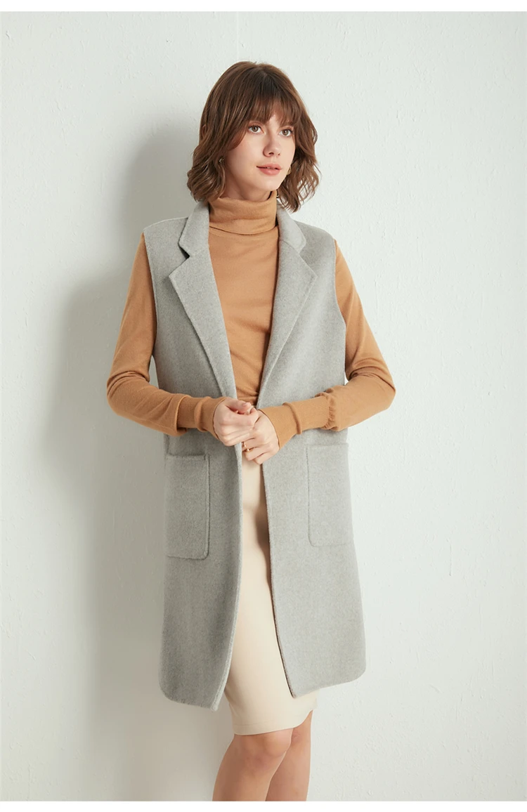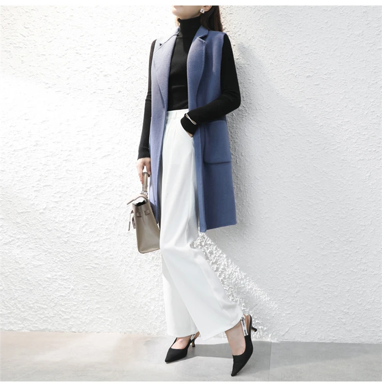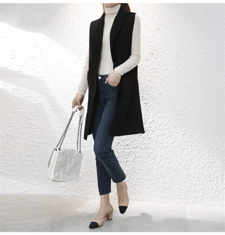 Fashion Trend Ladies' Vest Pure Wool Sleeveless Coat Solid Color Polo Collar Wom