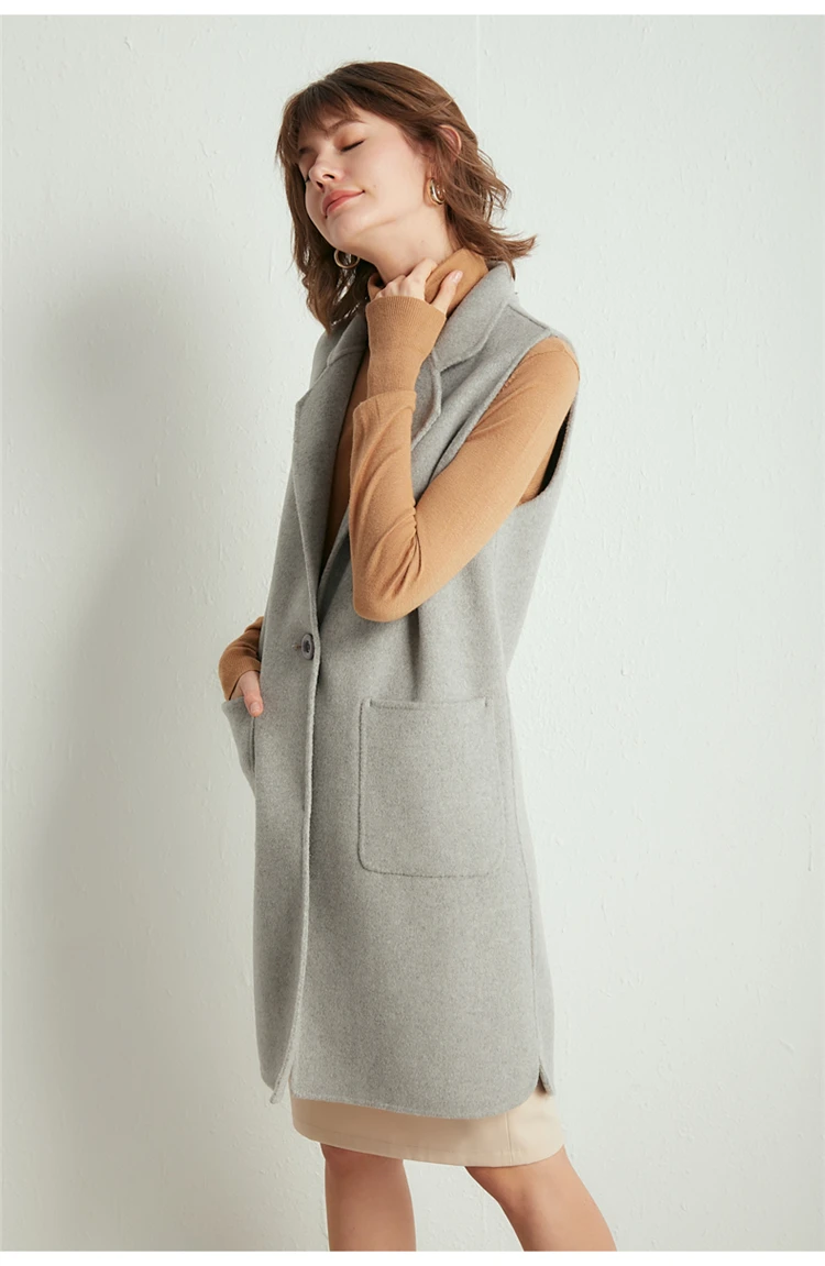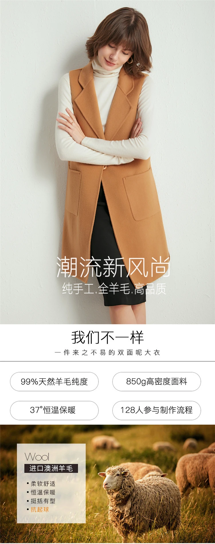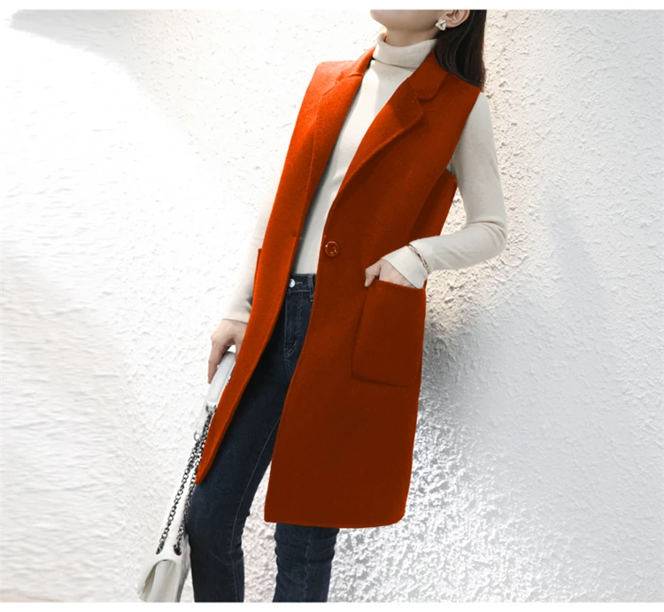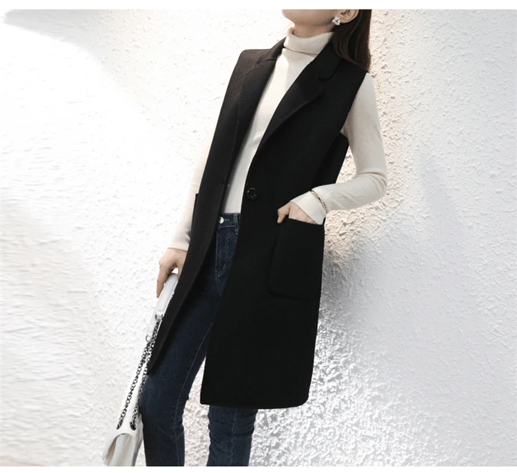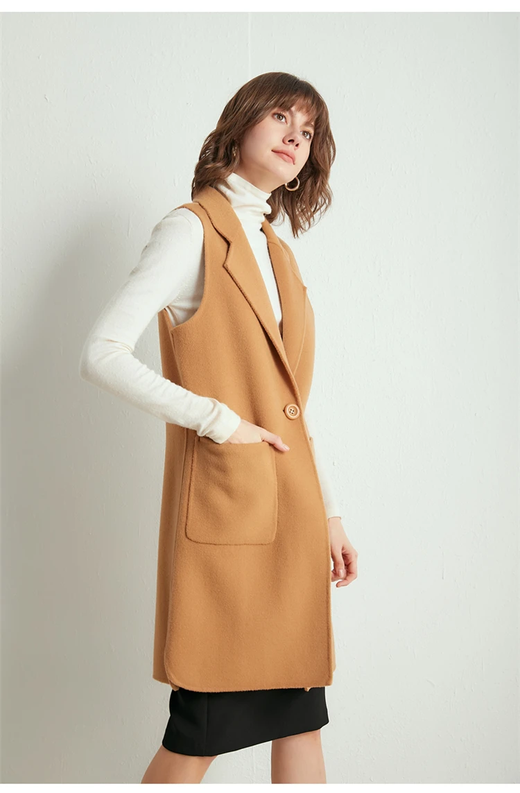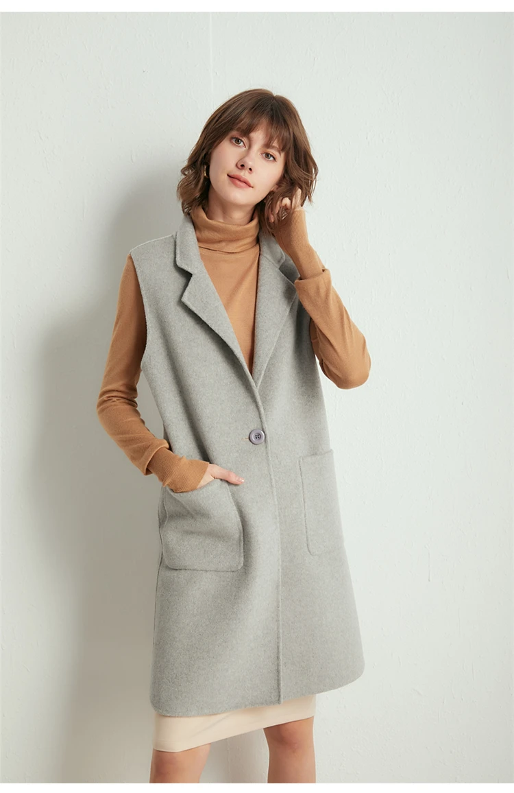 Fashion Trend Ladies' Vest Pure Wool Sleeveless Coat Solid Color Polo Collar Wom