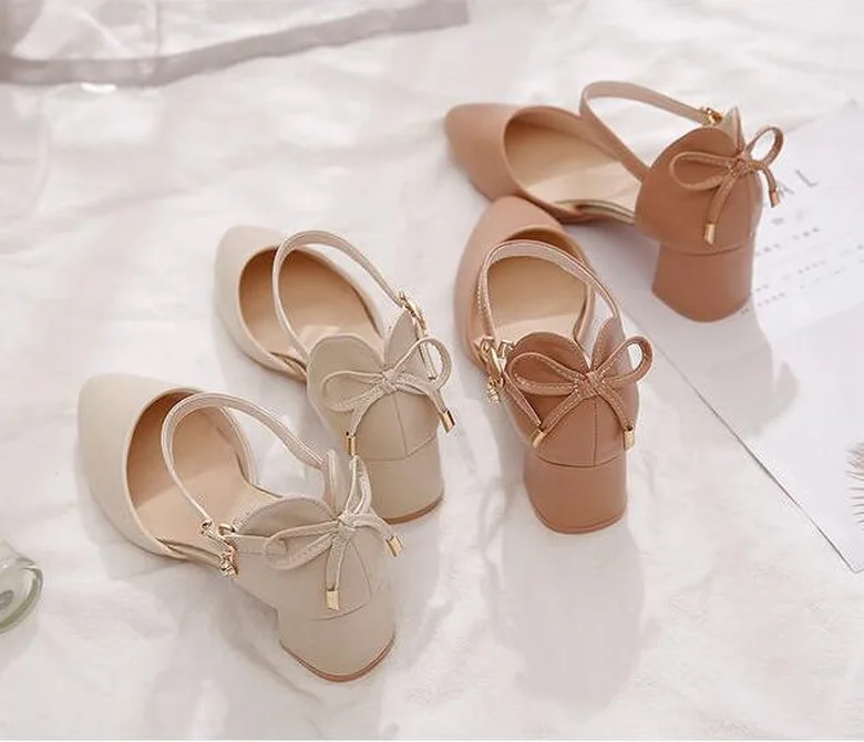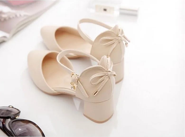 FHC Bowtie High Heels Women Pumps,Pointed toe Single Shoes Woman,Ankle Strap San