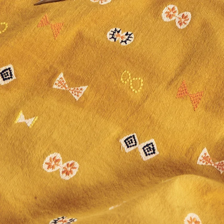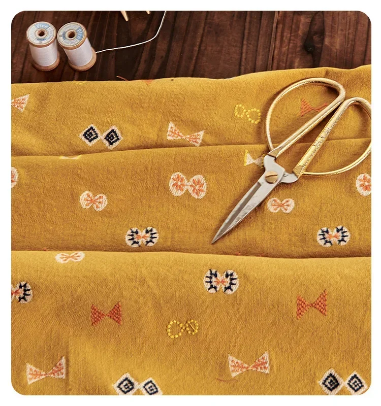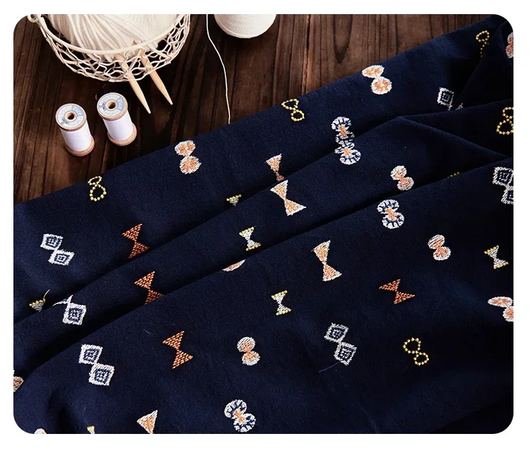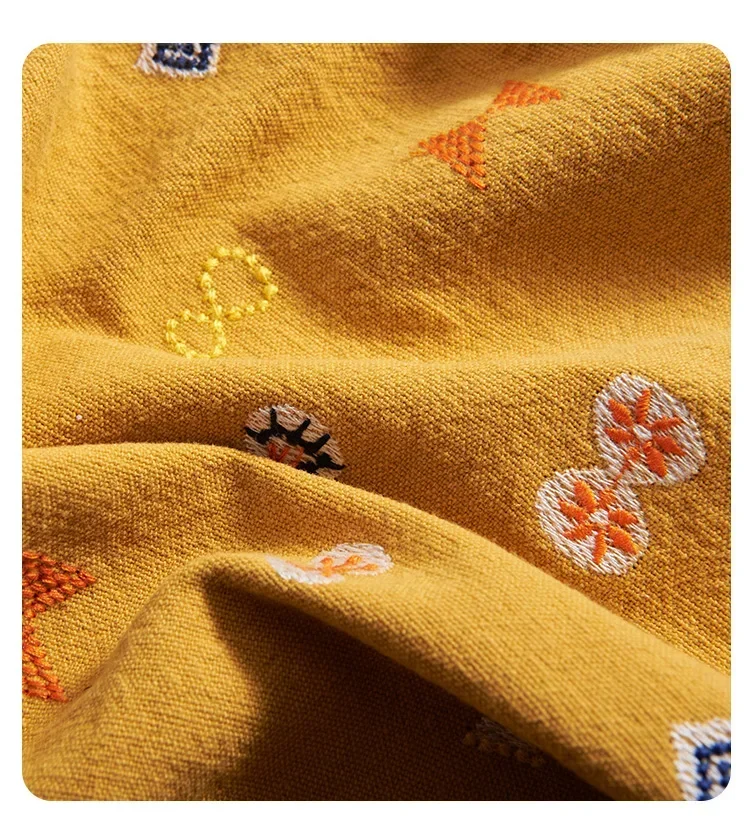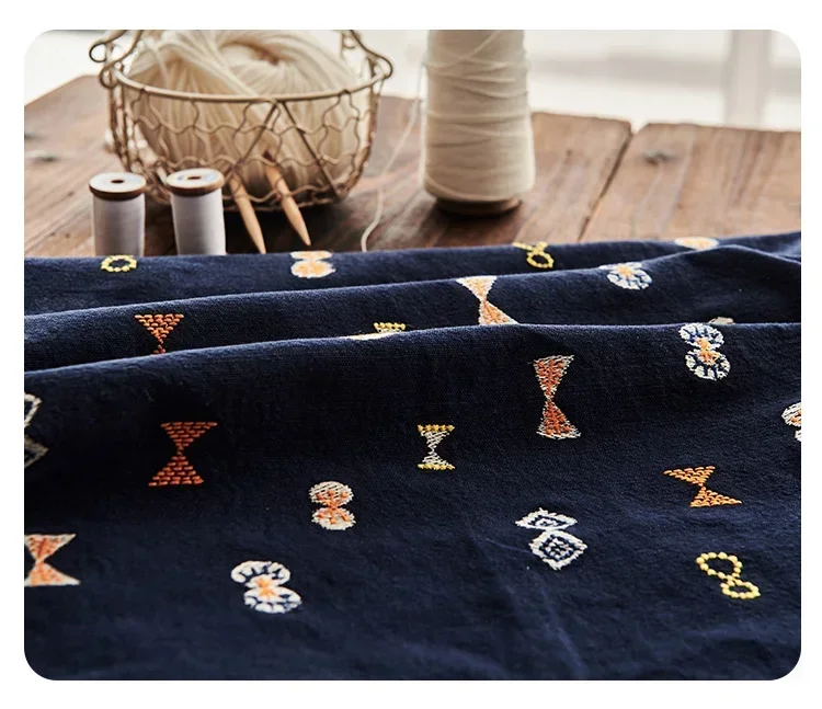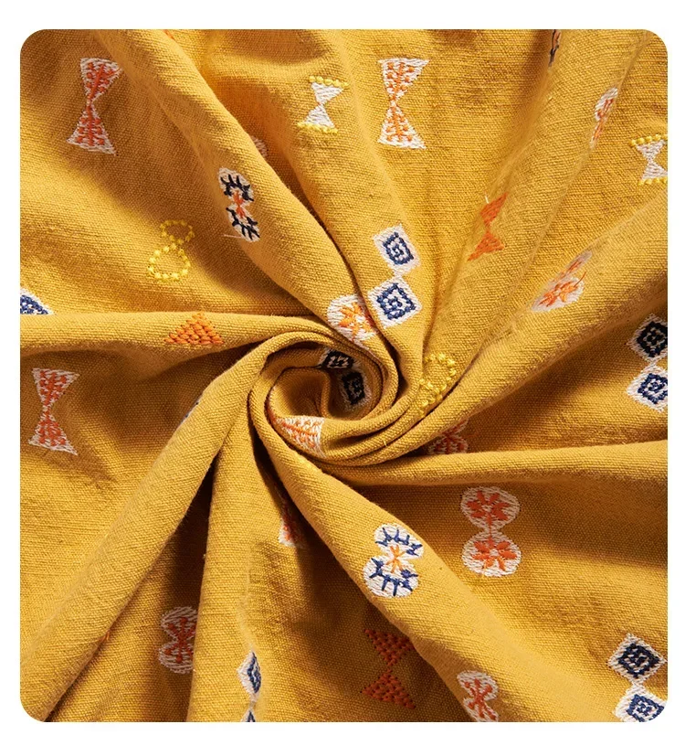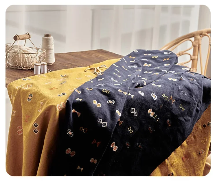 Flower Embroidery Cotton Linen Fabric for Clothing Table Cloth Apron Throwing P