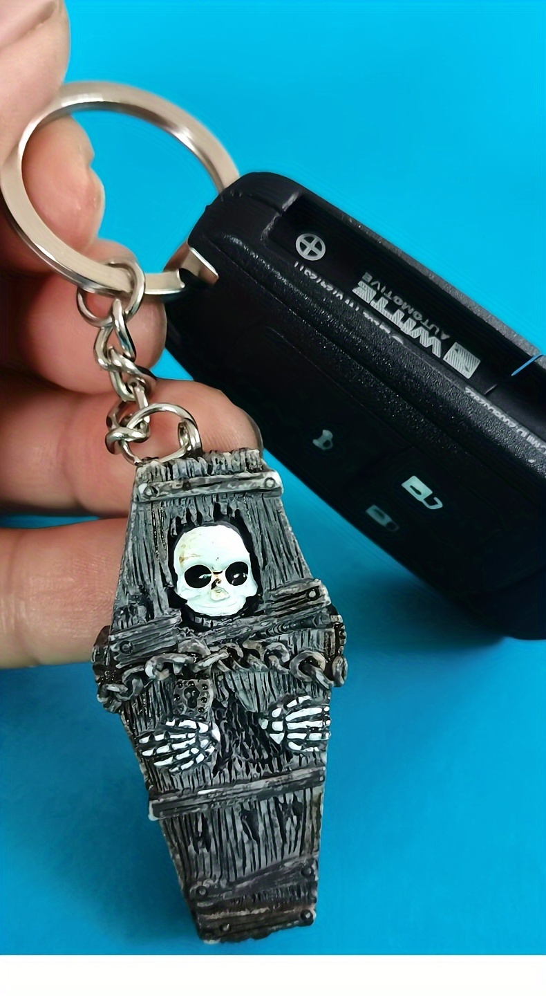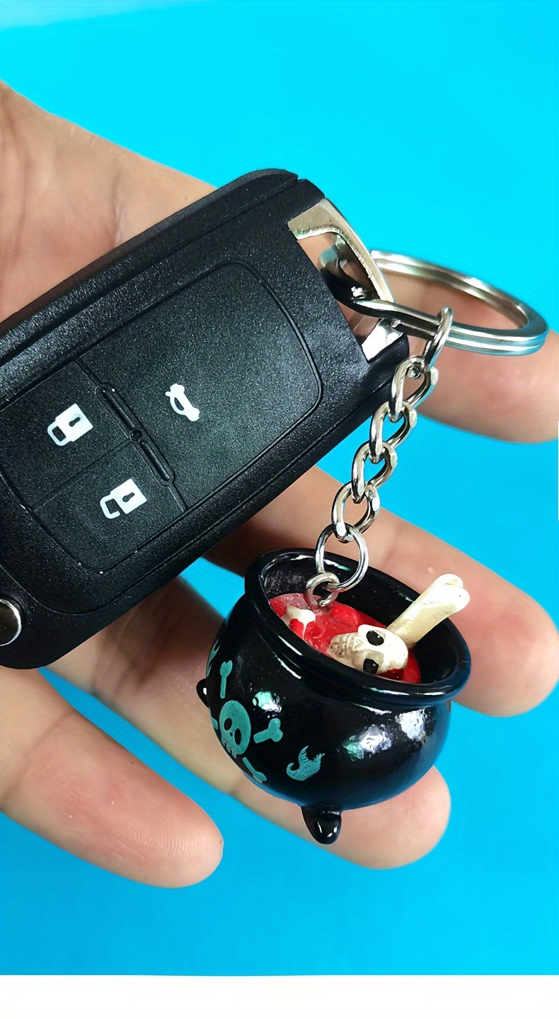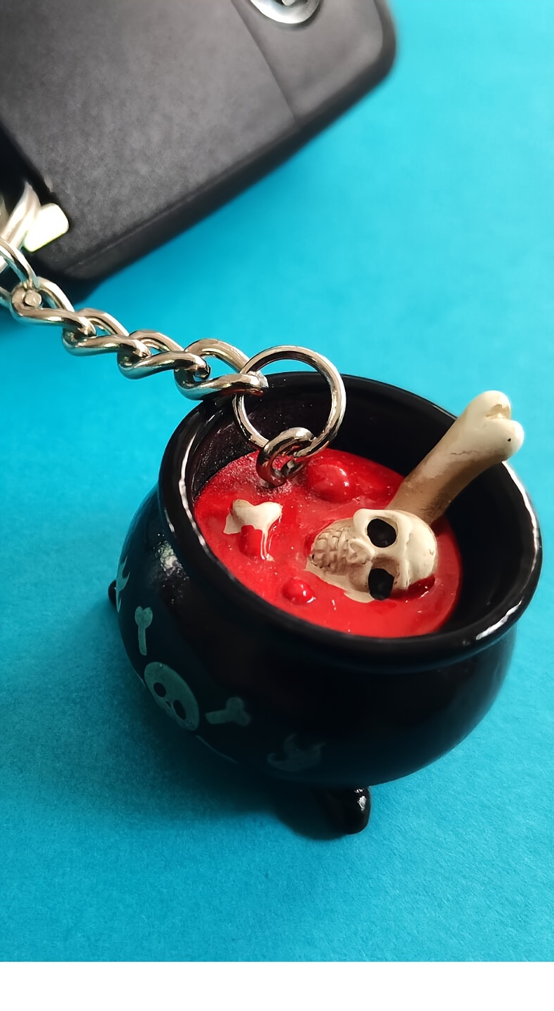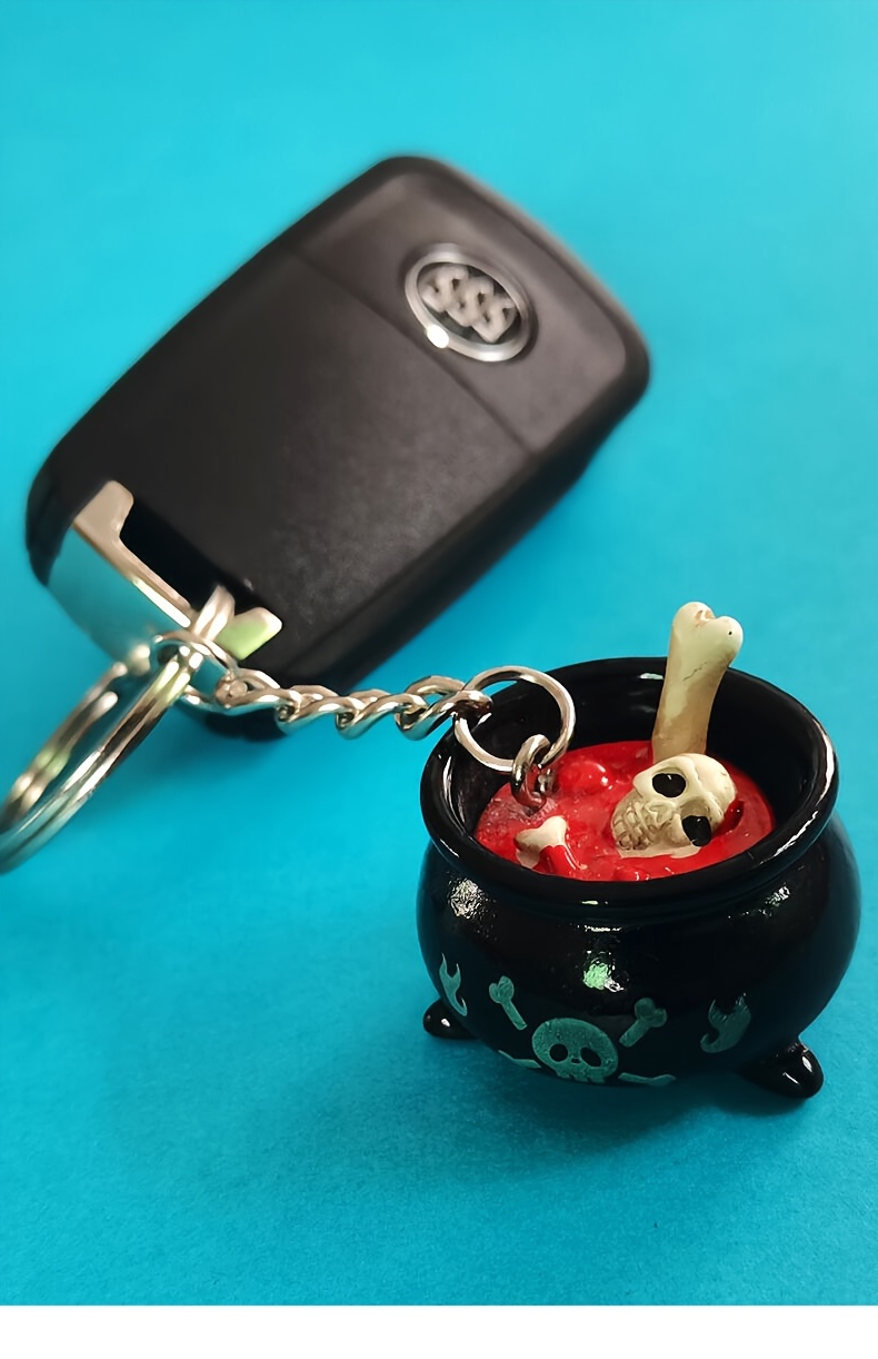 Funky Halloween Keychains: Spooky Coffin Skull and Bubbling Cauldron with Skelet