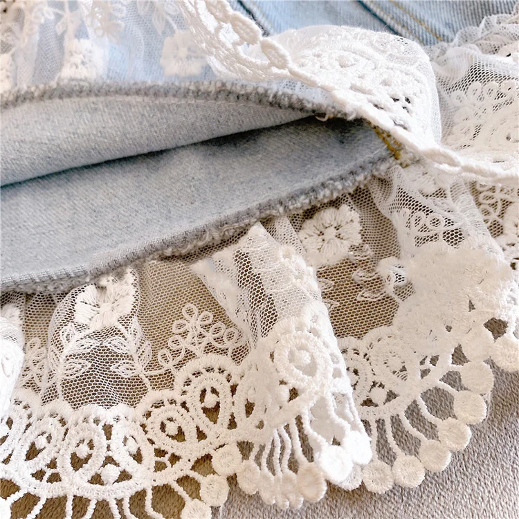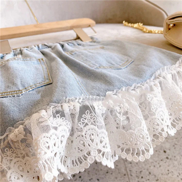 Girls' denim skirt 2024 new children's fashion lace patchwork denim skirt baby s