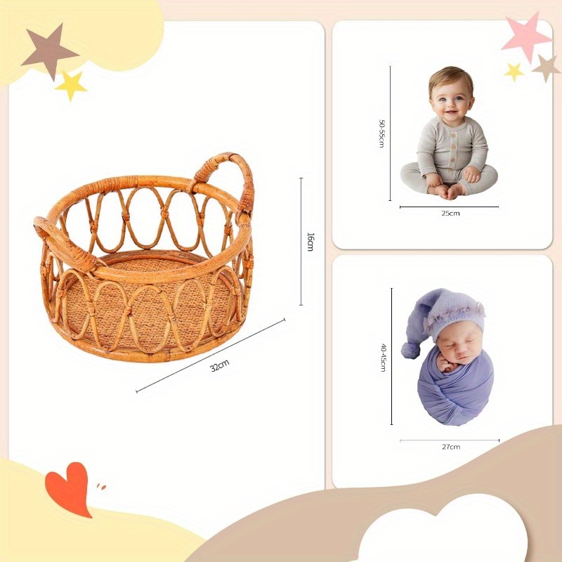 Kate's new attempt: The birth of every life is sacred, we provide you with a variety of newborn photogaphy props to help you commemorate this special time. Contains: Only one andcrafted rattan basket. Material: woven with rattan, our props are safe and gentle for your baby, giving you confidence during photoshoots. Perfect size: 39.37 in × 31.5 in × 19.69 in × 7.87 in. Our props are designed to fit babies of all sizes comfortably. Note: Due to long transportation and co