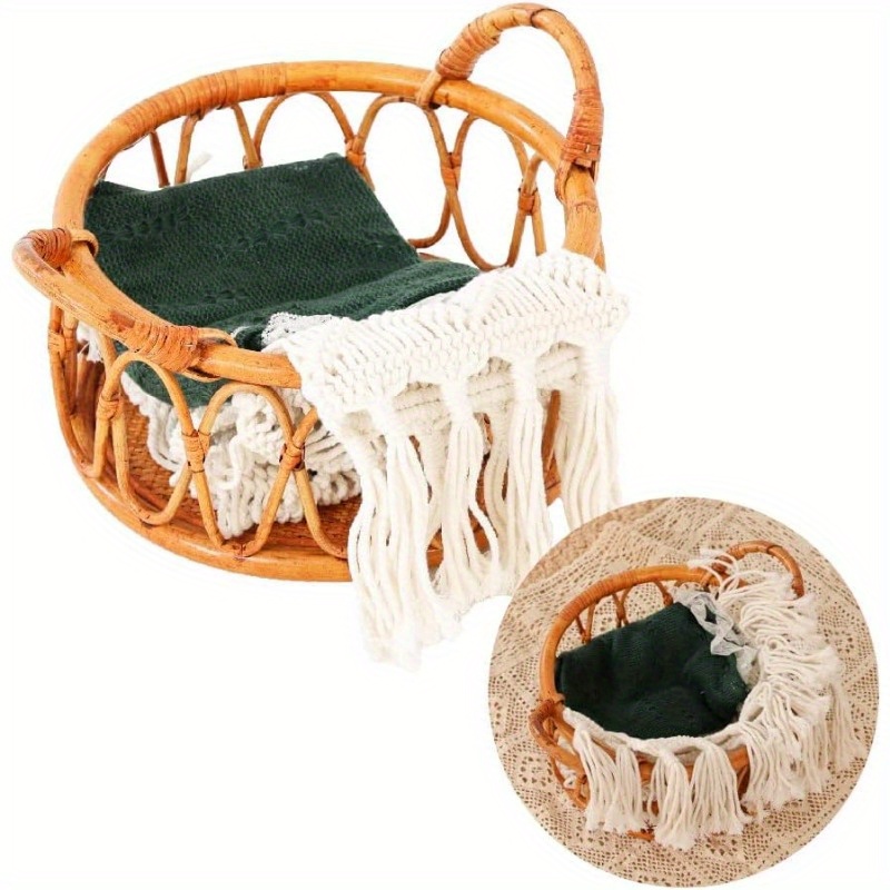 Handwoven Rattan Circular Basket - Kate Newborn Photography Prop, Mini Doll Bed