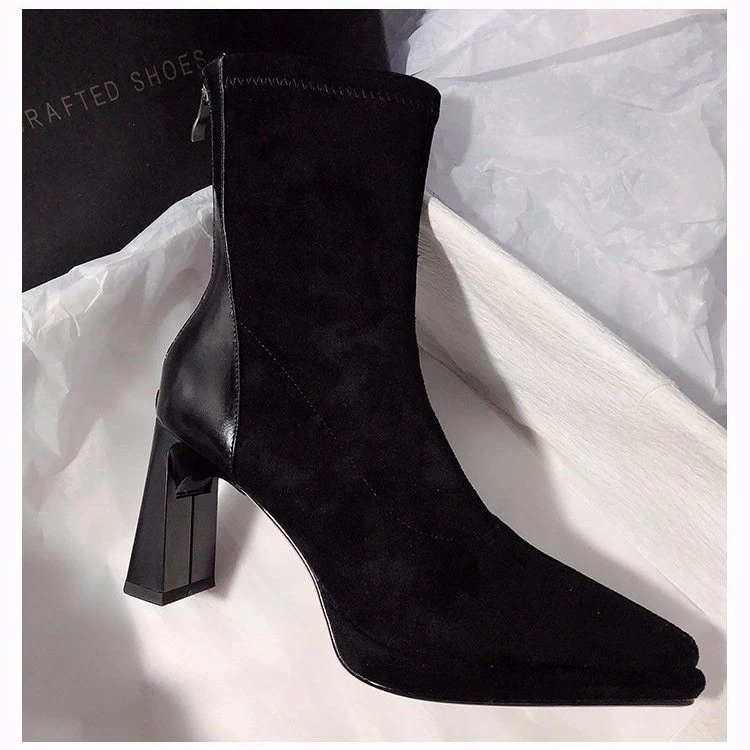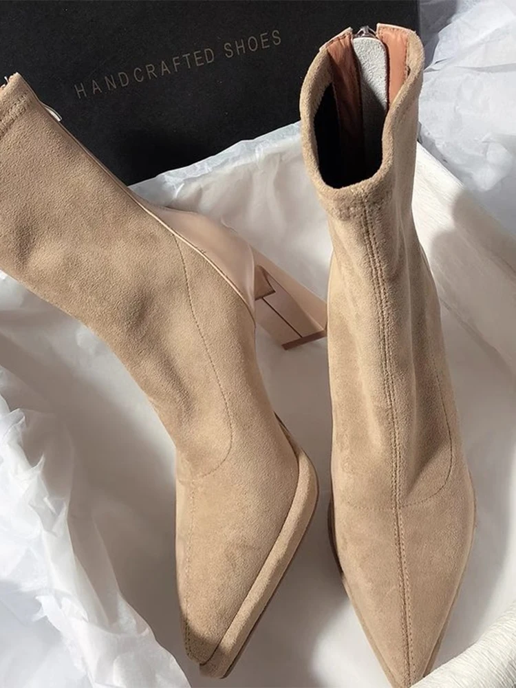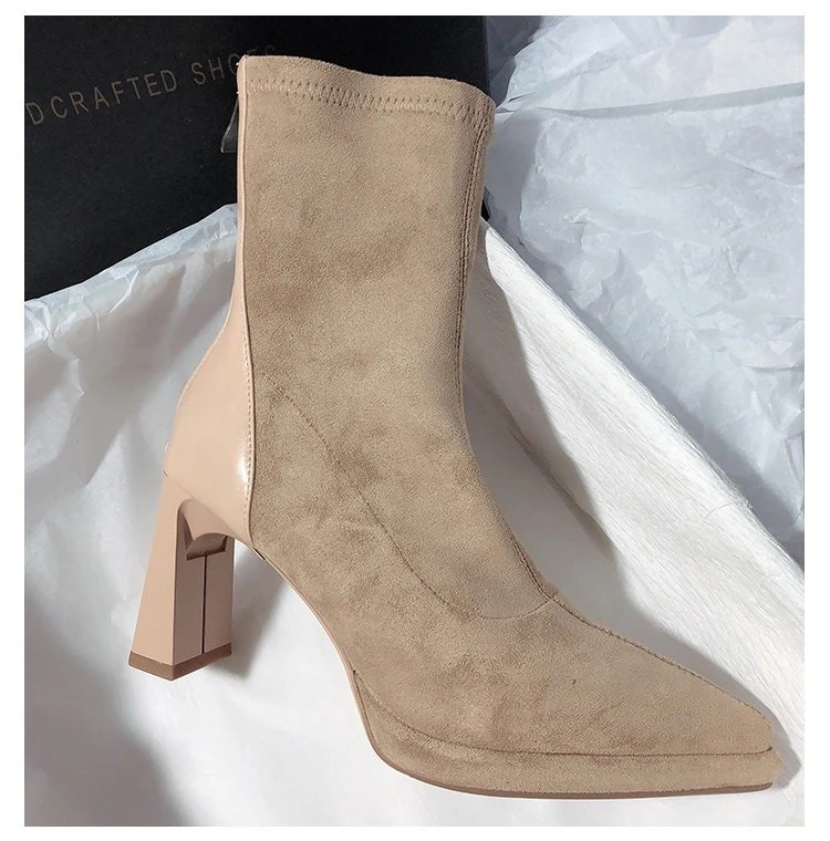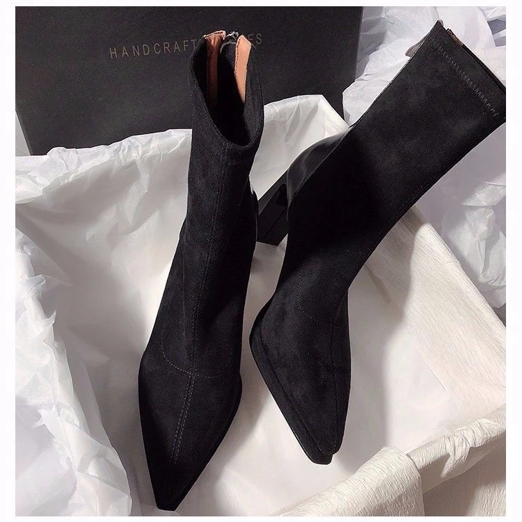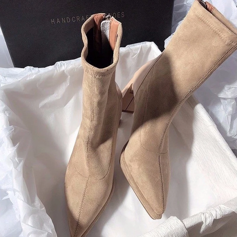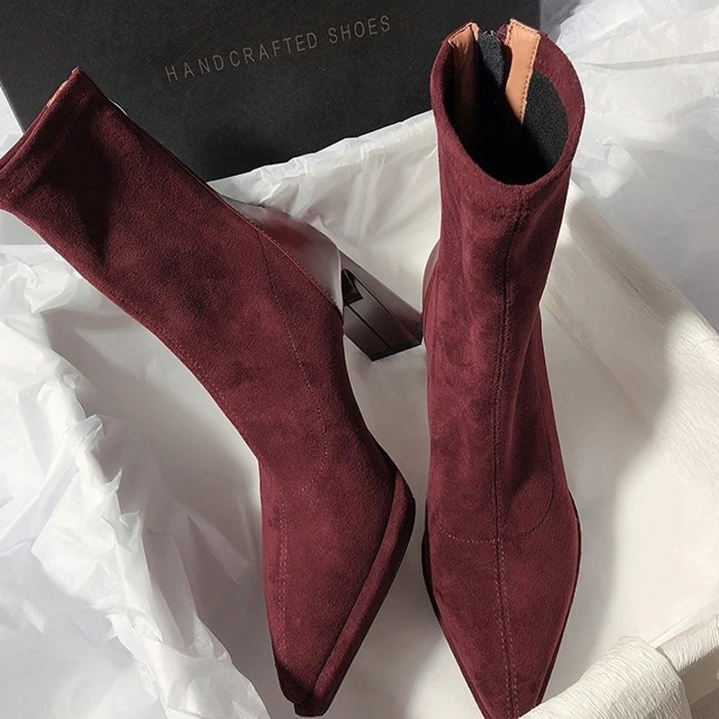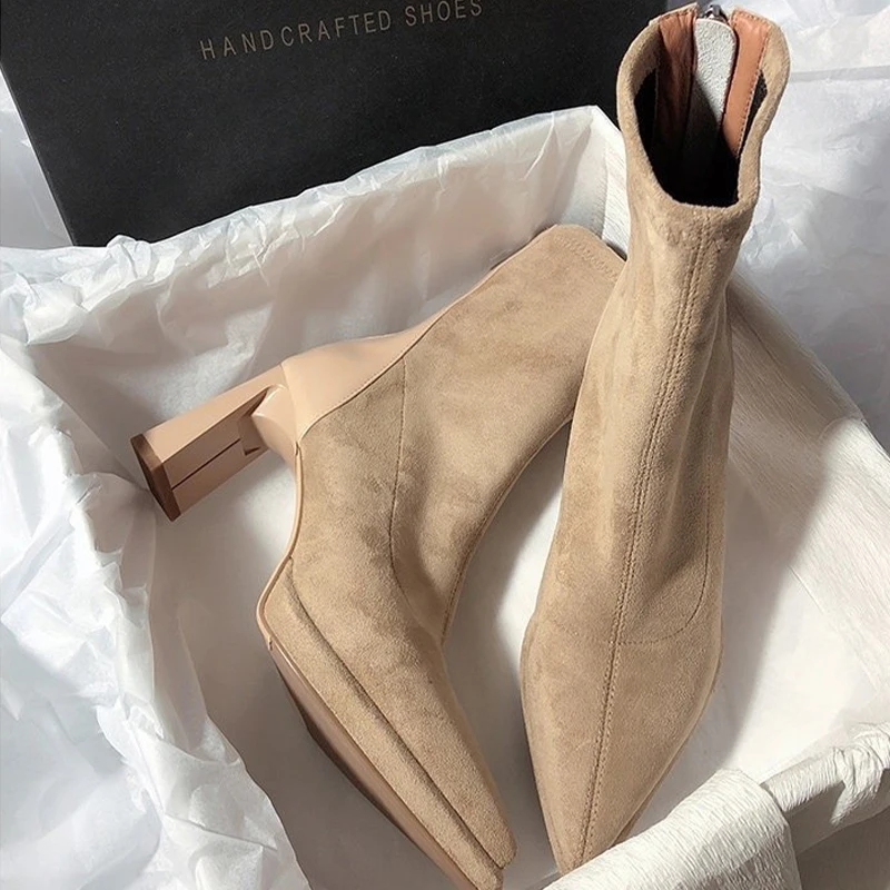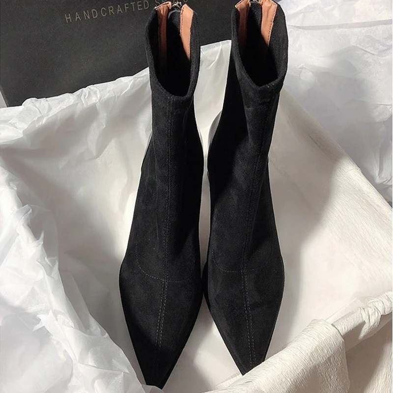 High Heels Women Ankle Boots Fashion Pointed Toe Shoes Suede Luxury Pumps Winter