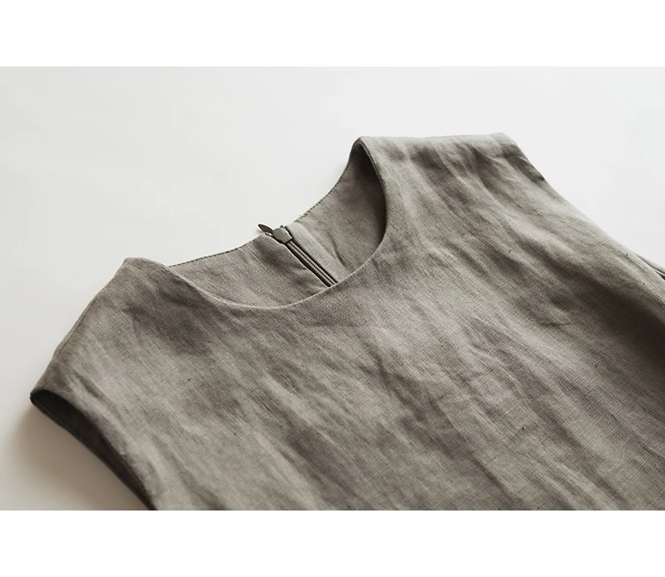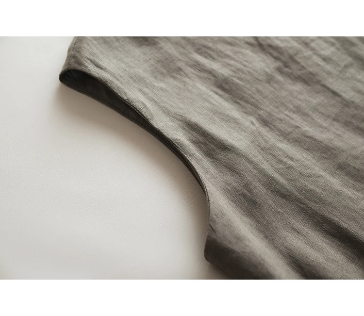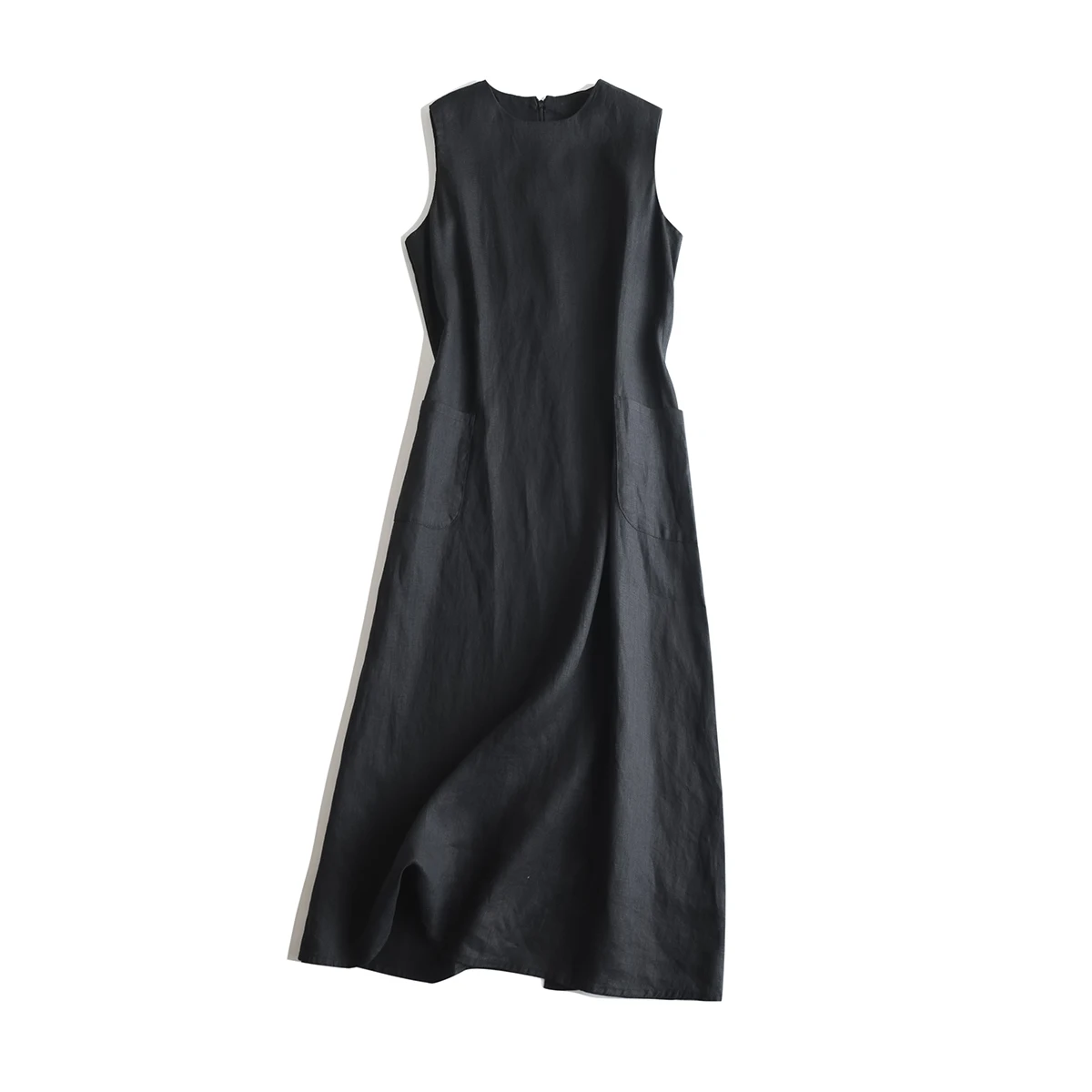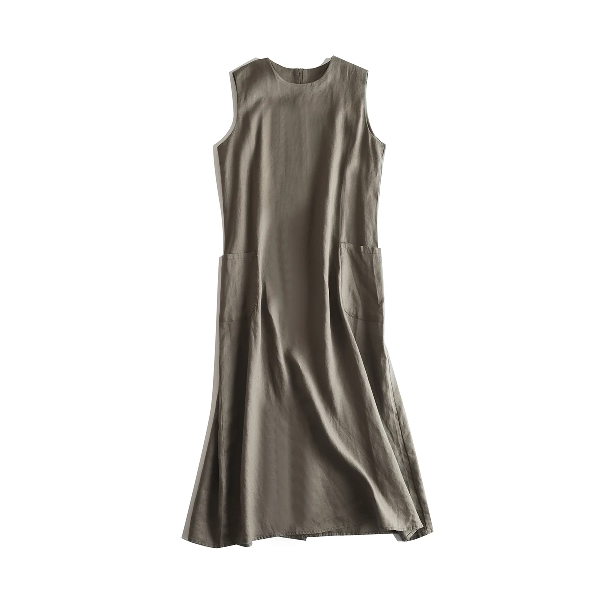 Linen Cotton Sleeveless Long Dress Vintage Slimming A Line Dress For Women Summer Solid O Neck Tank Robe Casual Clothes X1399