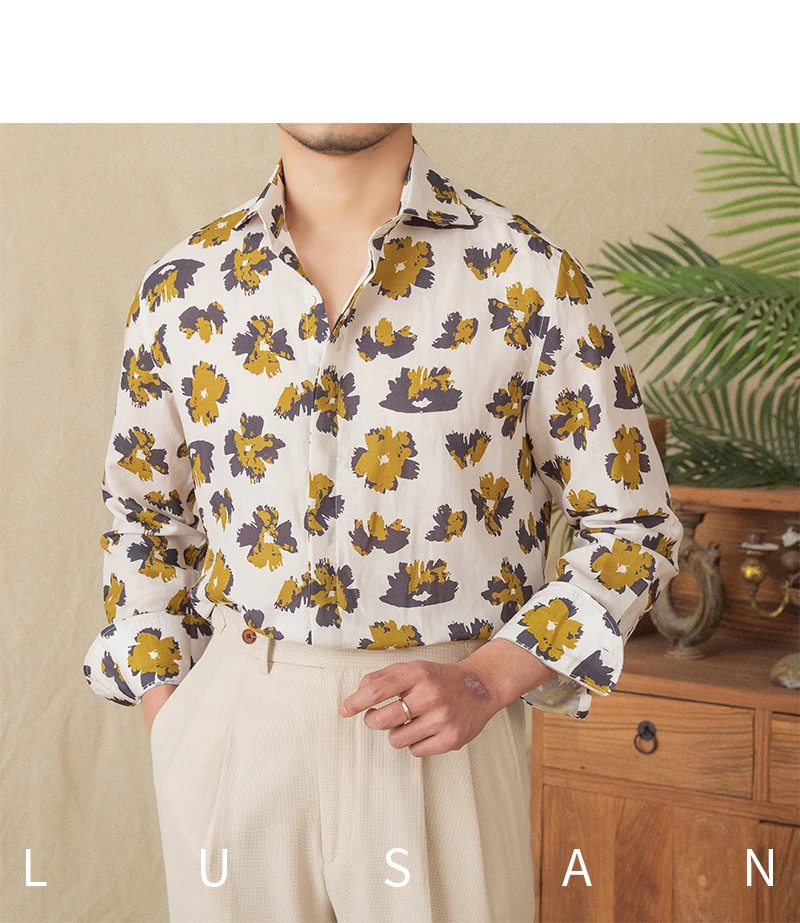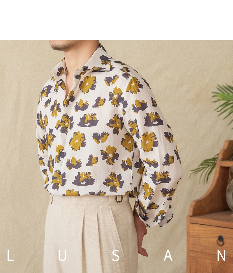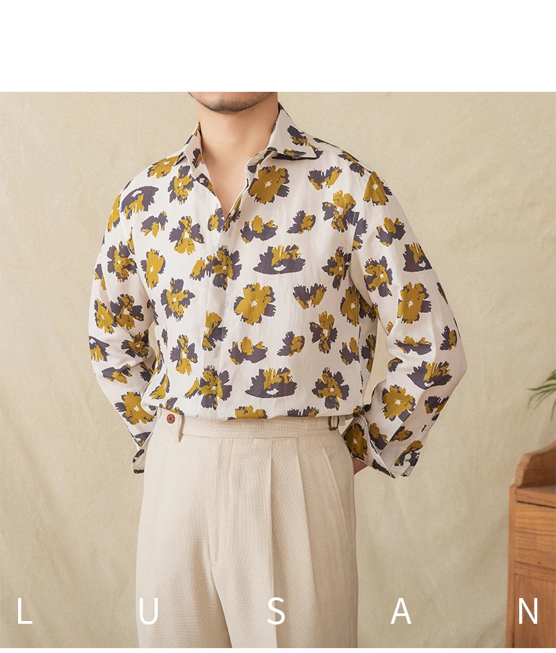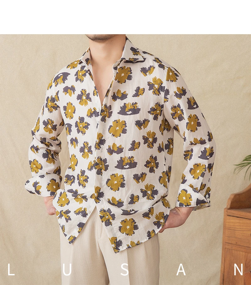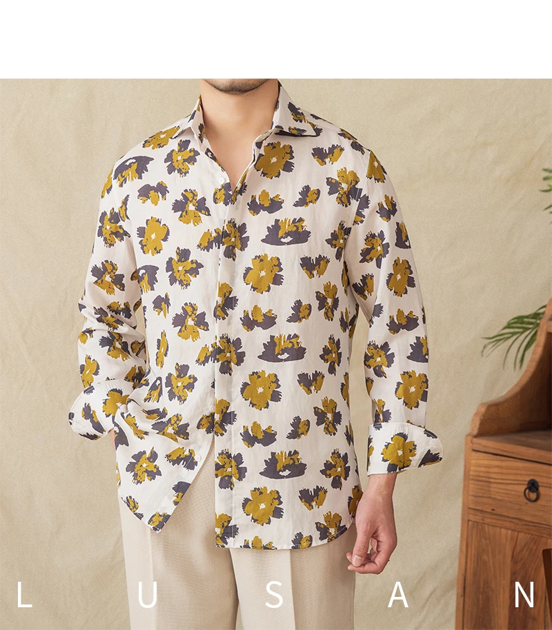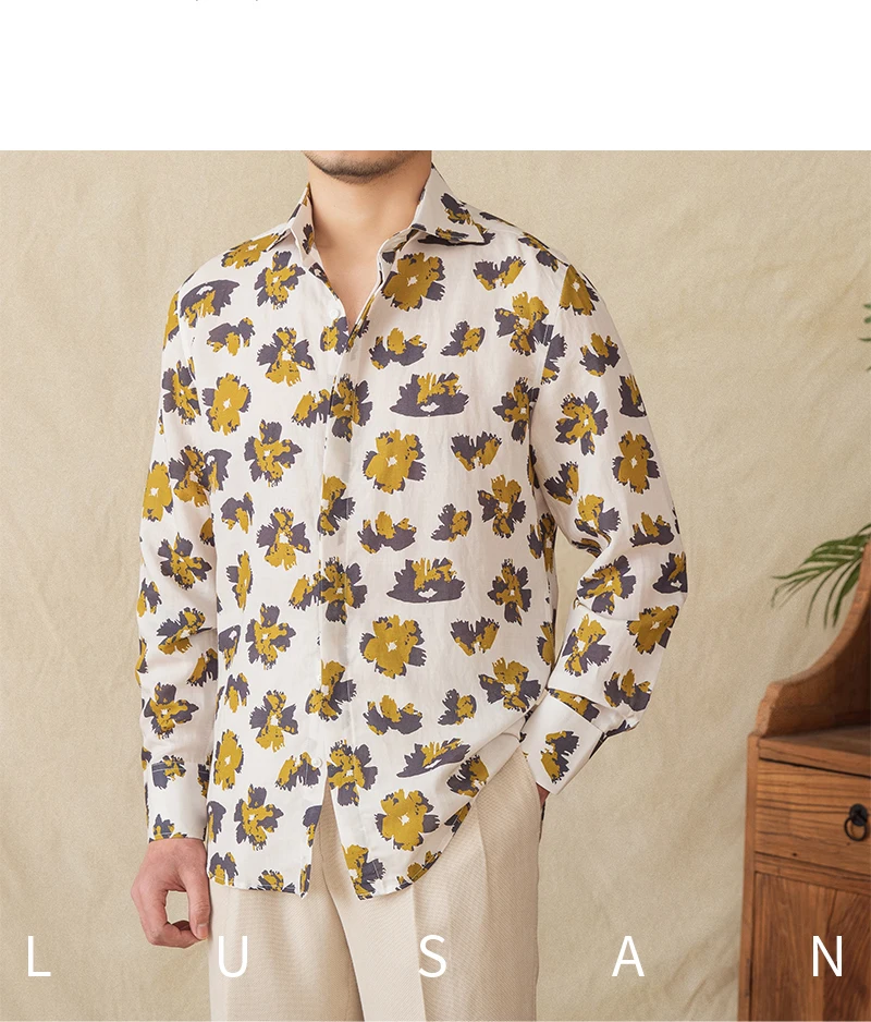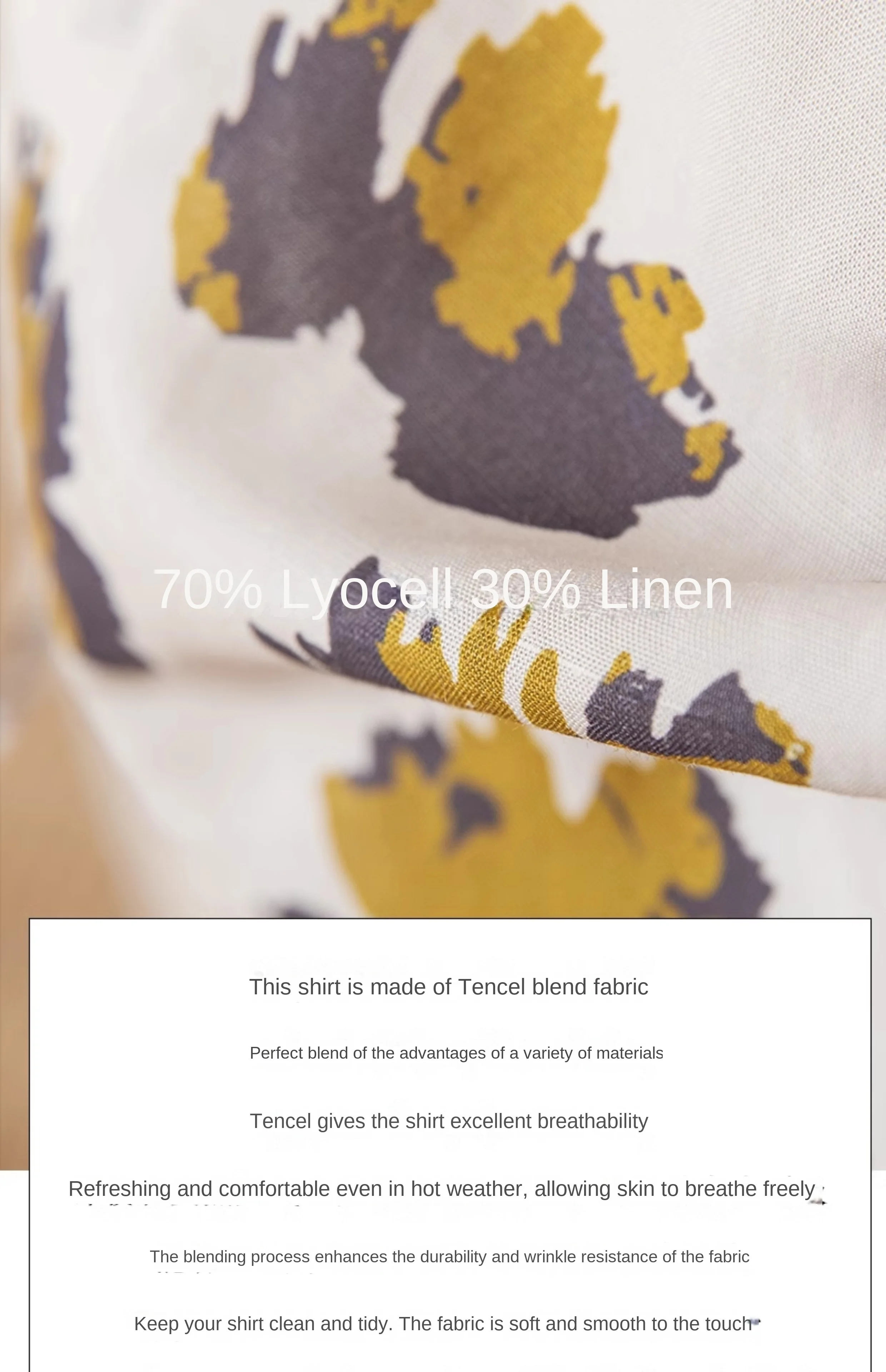 Linen Lyocell Casual Breathable Printed Long-Sleeved Shirt Beach Vacation Gentry