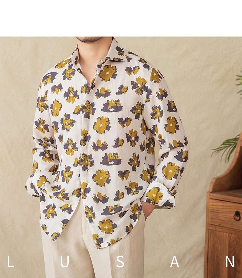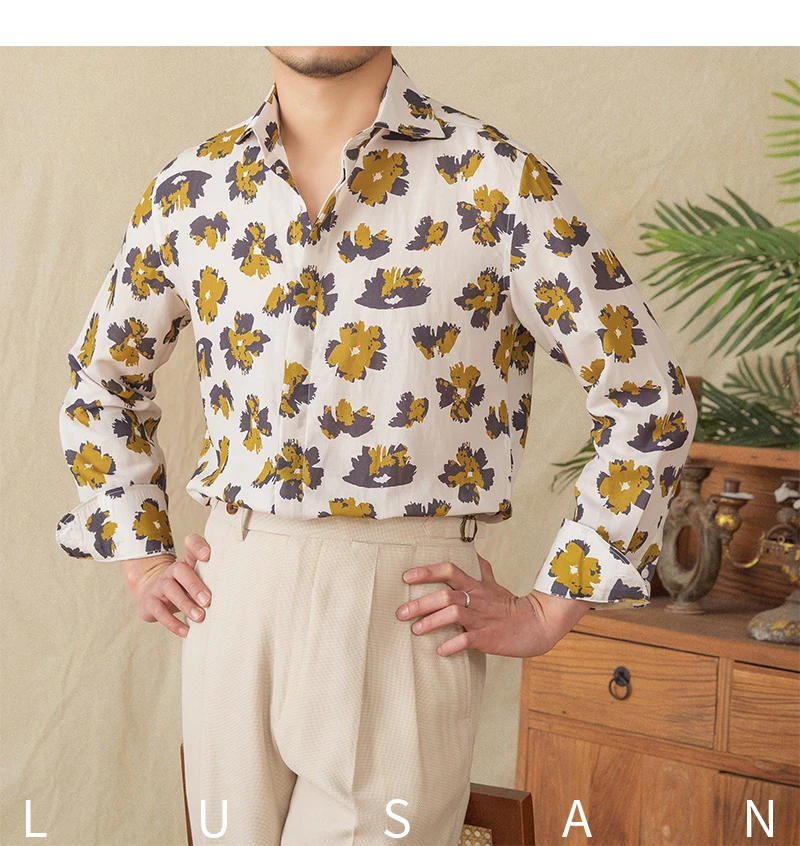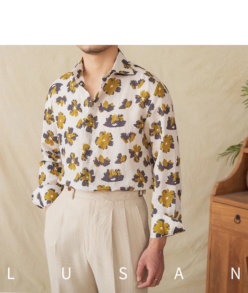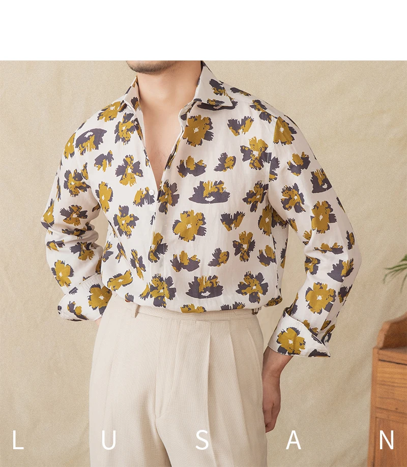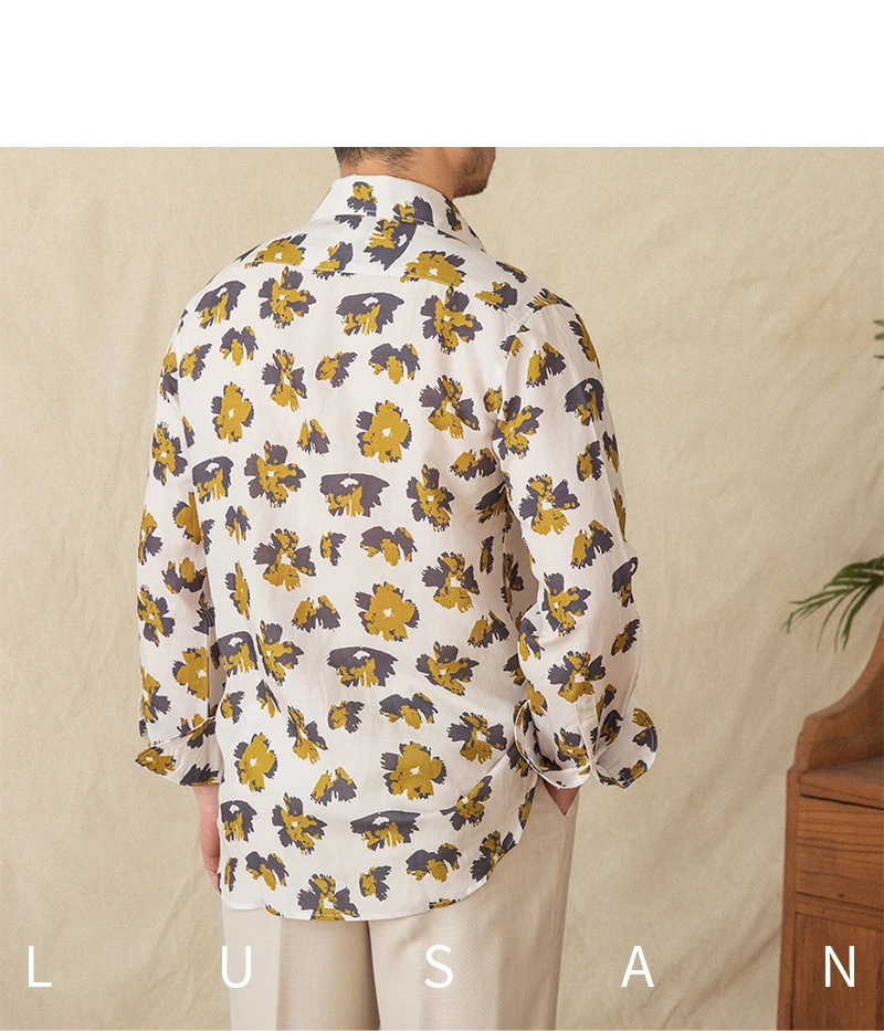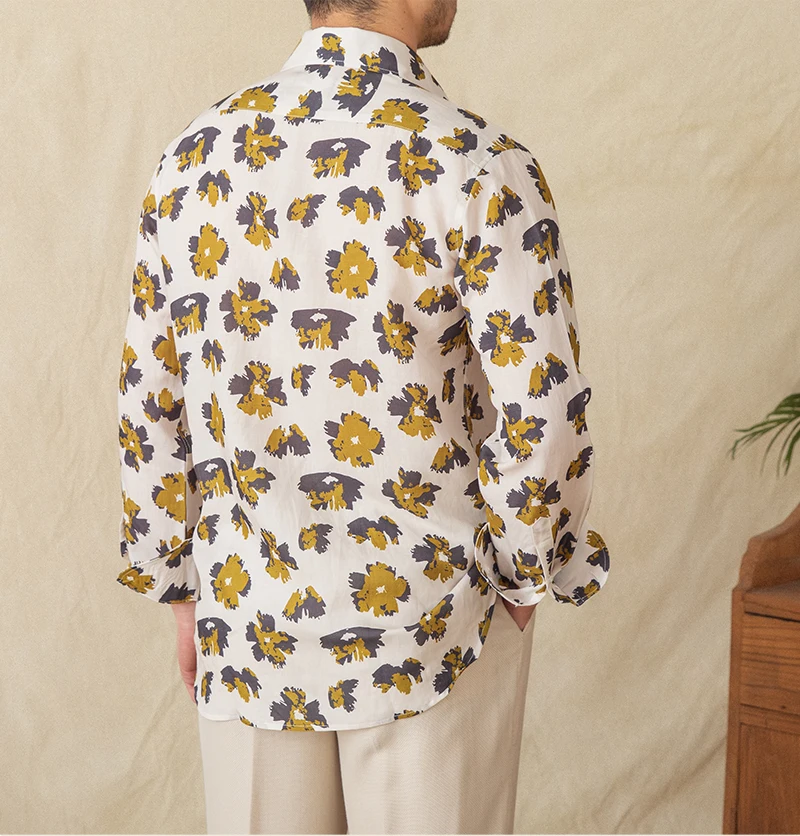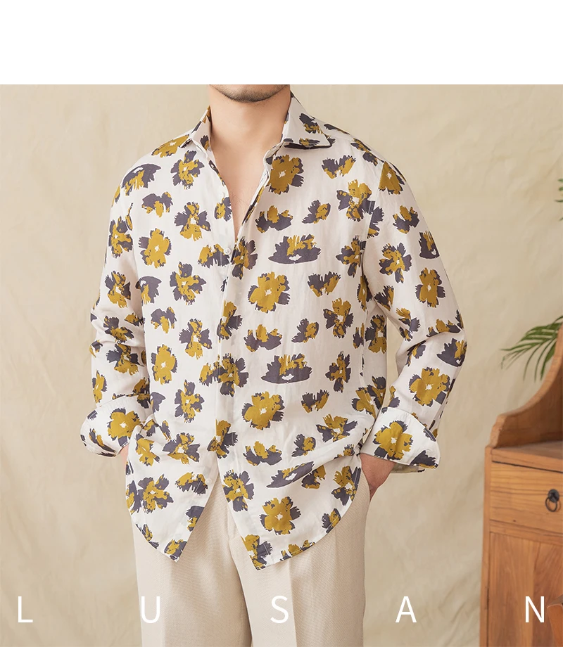 Linen Lyocell Casual Breathable Printed Long-Sleeved Shirt Beach Vacation Gentry