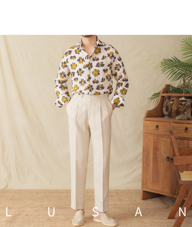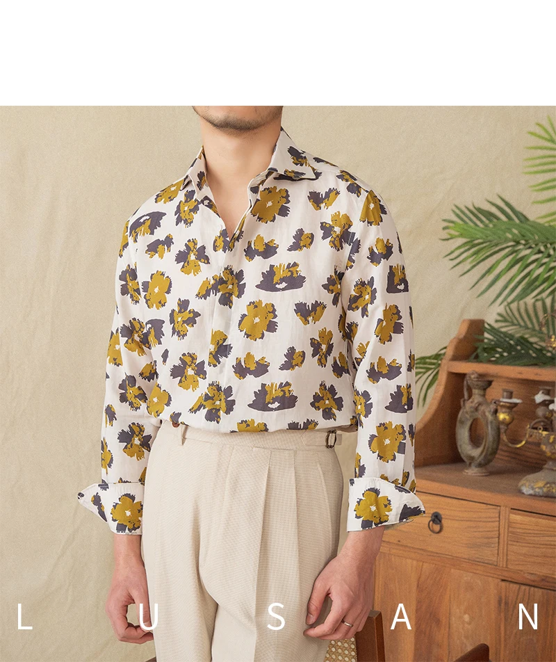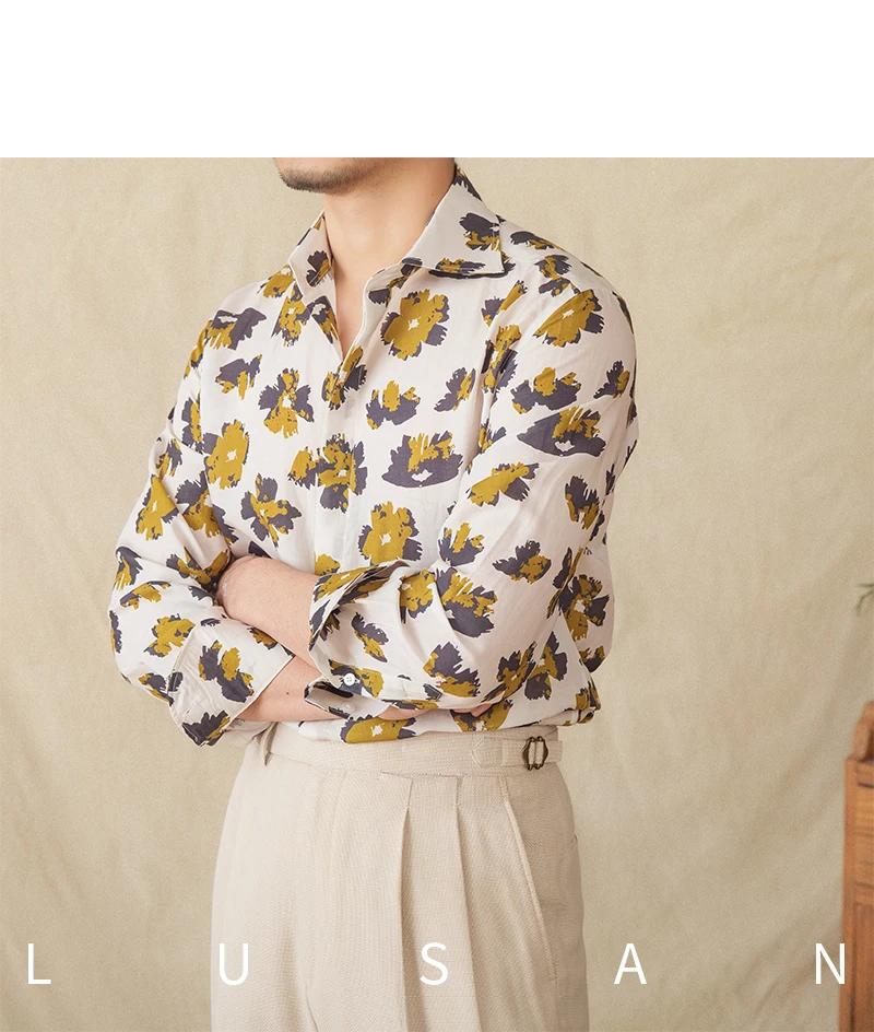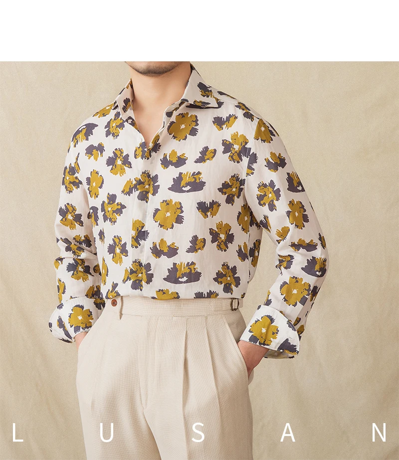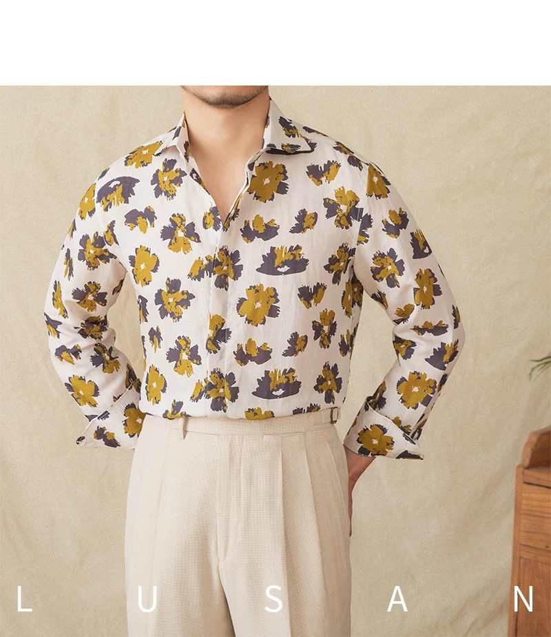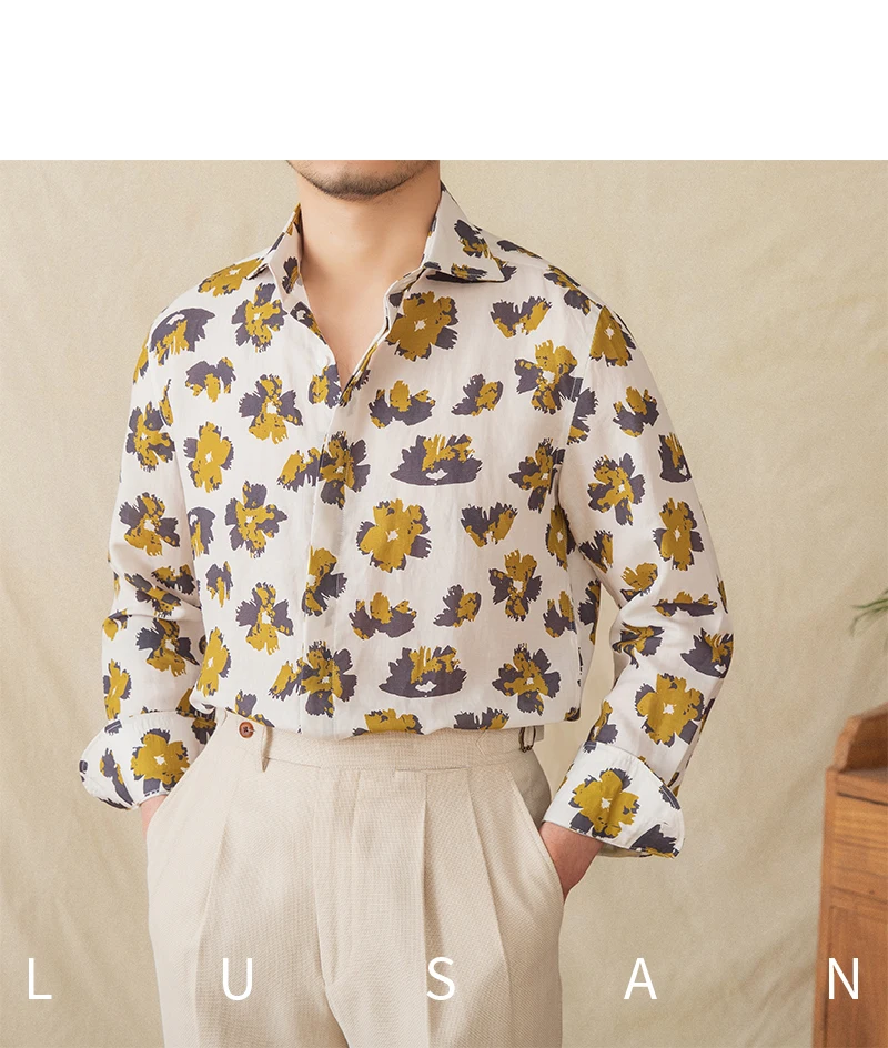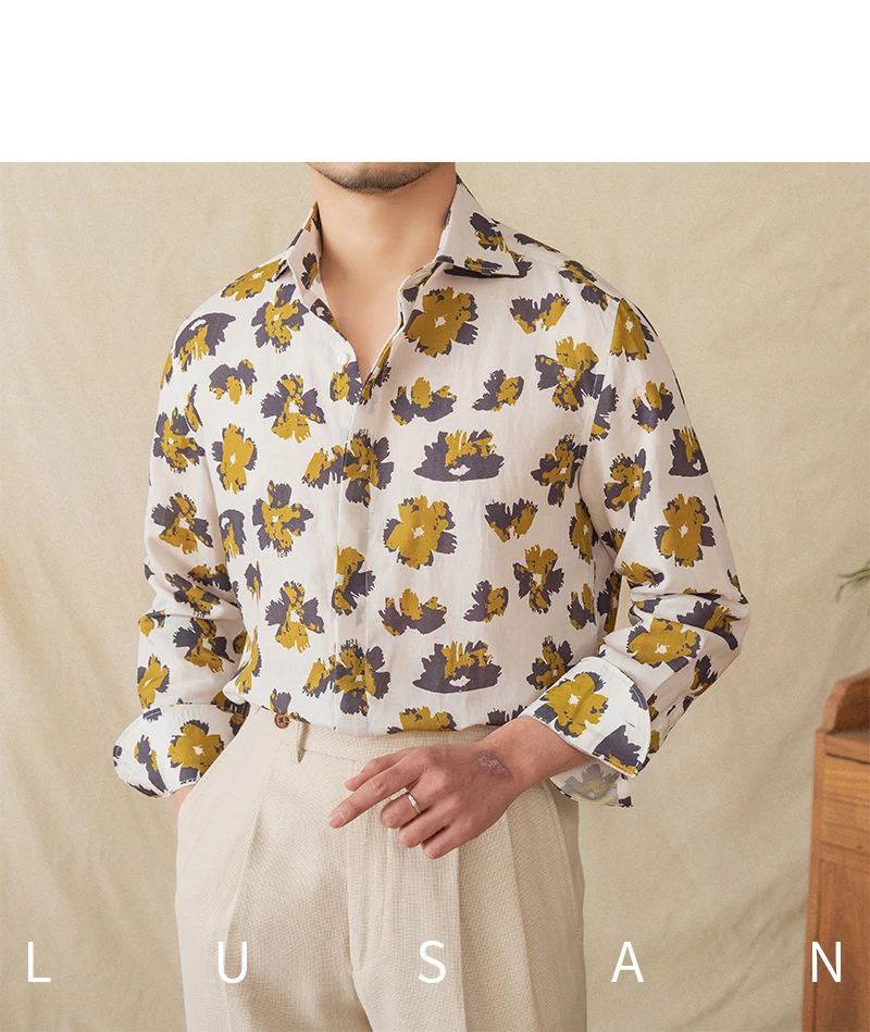 Linen Lyocell Casual Breathable Printed Long-Sleeved Shirt Beach Vacation Gentry