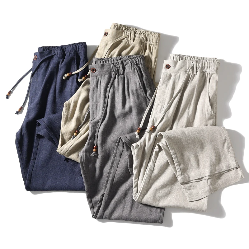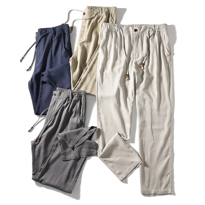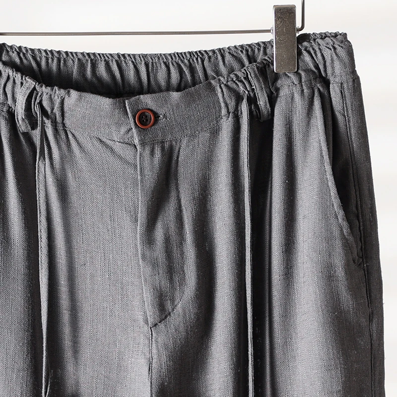 70 Viscose fiber for hemp fiber blended fabric from the natural comfort of its moisture absorption, breathability, sweat and other characteristics, so the summer wear hemp material is more suitable, hemp fabric when the linen fiber woven fabric drink skin, light and breathable, sag is also very good, simple style, small straight pant type, slightly loose, the upper body without bondage, the double humanized design of elastic waist and rope, Do not need to say much about work, pants trip, car line, see the quality of the see, fresh and refined, summer afraid of hot friends do not miss! This hemp pants is not only comfortable to wear, but also a more basic style, the upper body looks good! Daily leisure is in place!