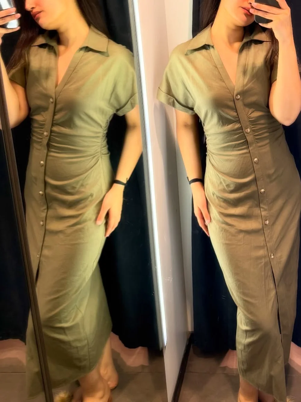 Linen pleated slim long skirt women's clothing new solid color mid-length skirt