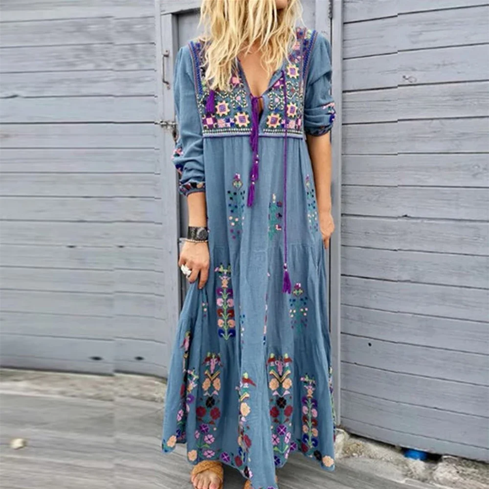 Long Dress for Women 2023 Autumn Beach Bohemian Dresses Casual Vestido Robe Fema