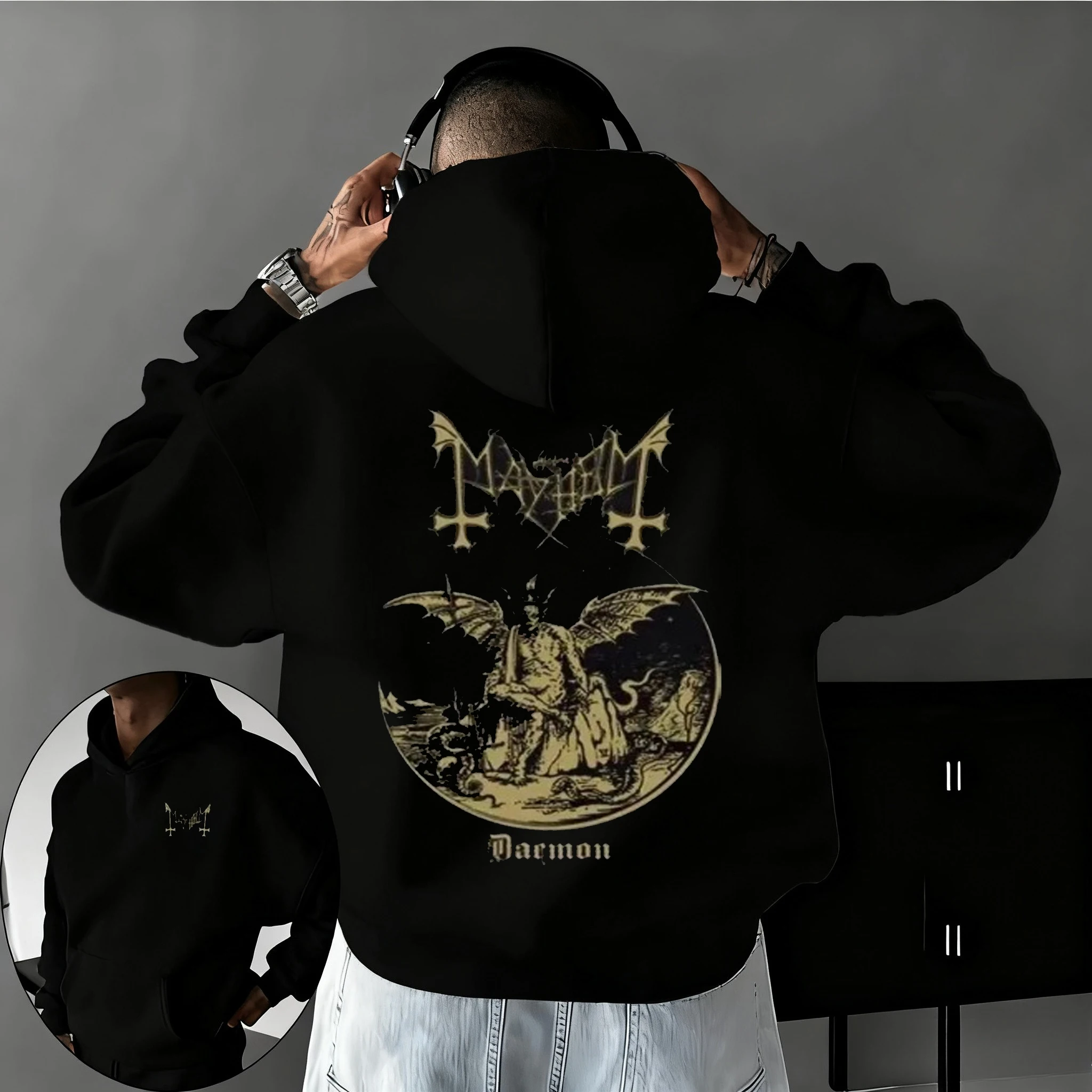 Men Clothing Pullover Hoodies Mayhem Black Metal Graphic New Fabric Street Fashi