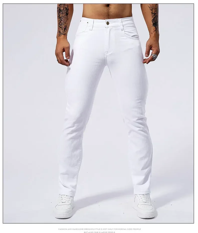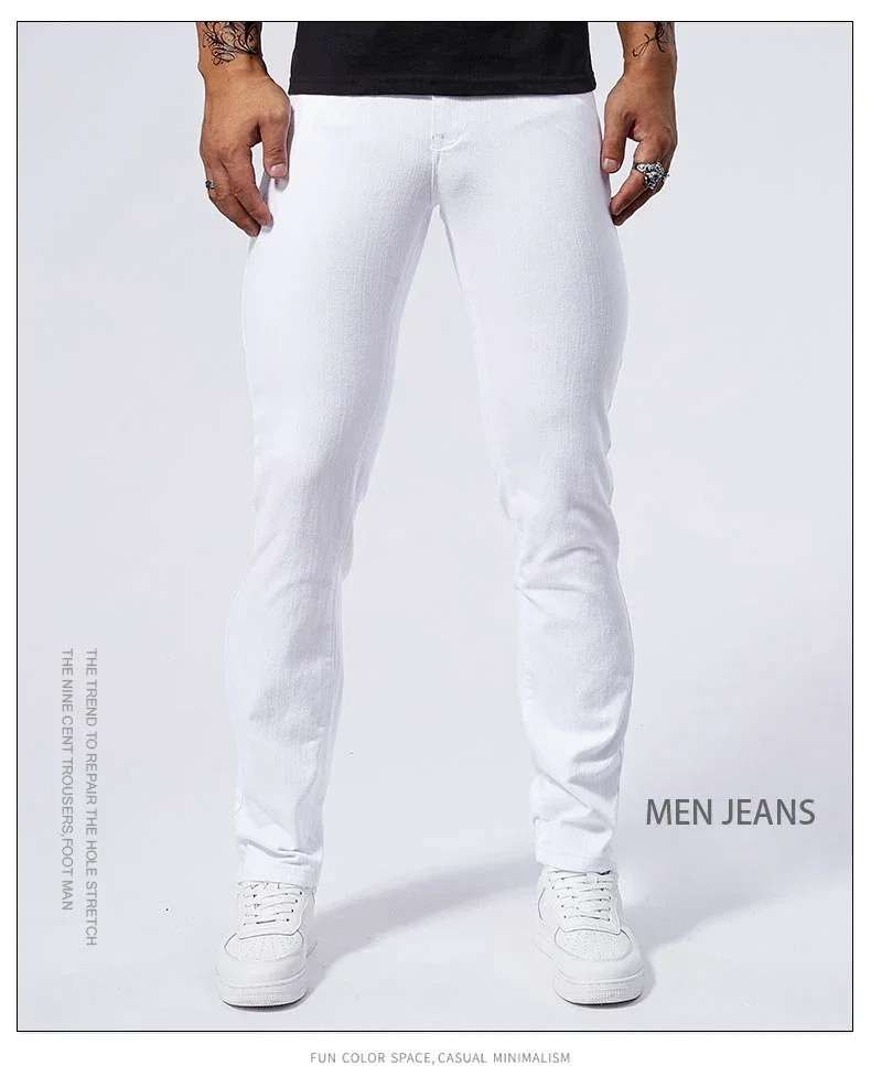 Men's Casual Jeans New Denim Pants Fashion Solid Color Stretch Comfortable Slim