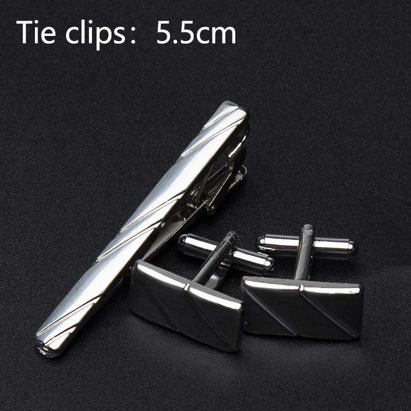 Men's Classic Tie Clips Cufflinks Set Luxury Tie Pin Accessories Shirts Cuff Tie Clips Fashion Cufflink for Men Gifts Jewelry