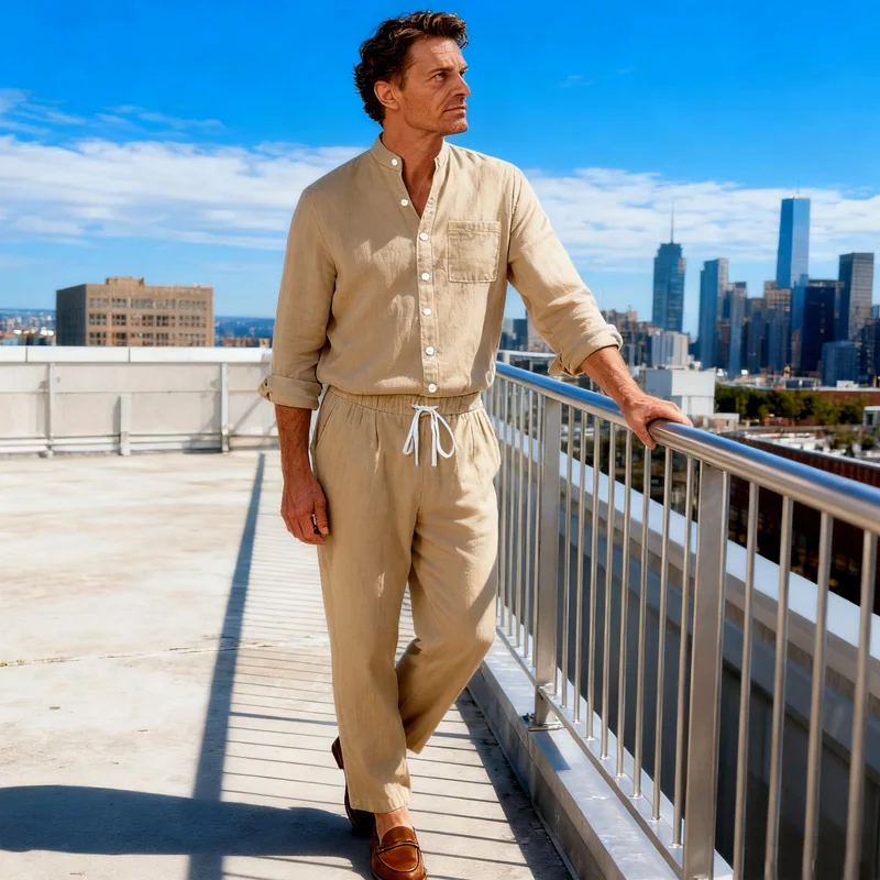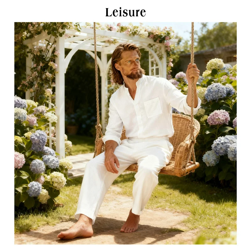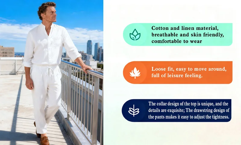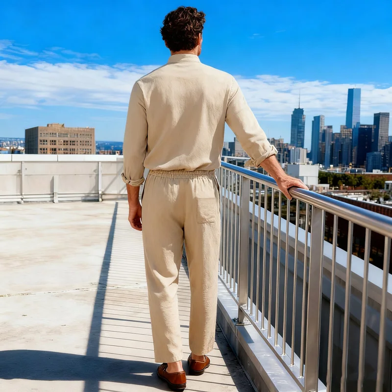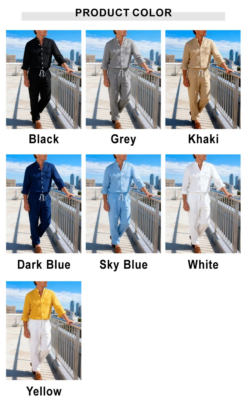 Men's Cotton and Hemp 2-piece Set - Breathable and Lightweight, Suitable for Dai