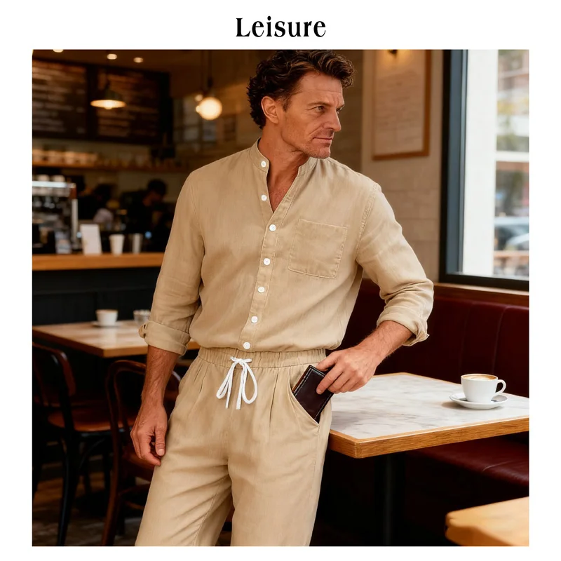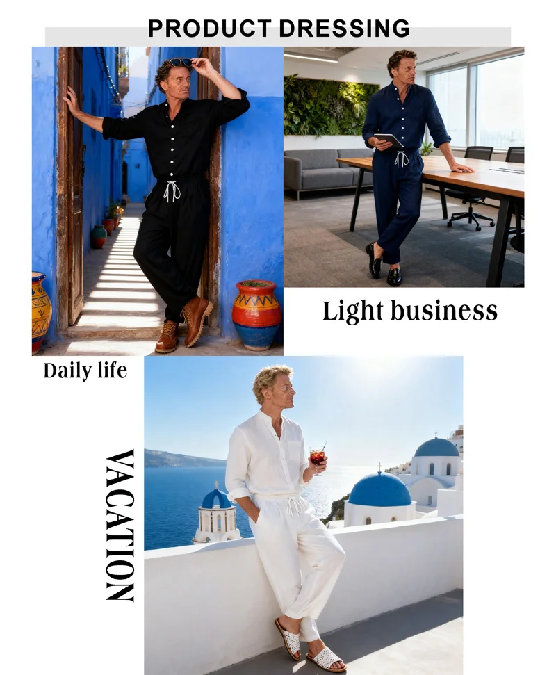 <Cotton and linen blend set, comfortable and wrinkle resistant, suitable for daily business use