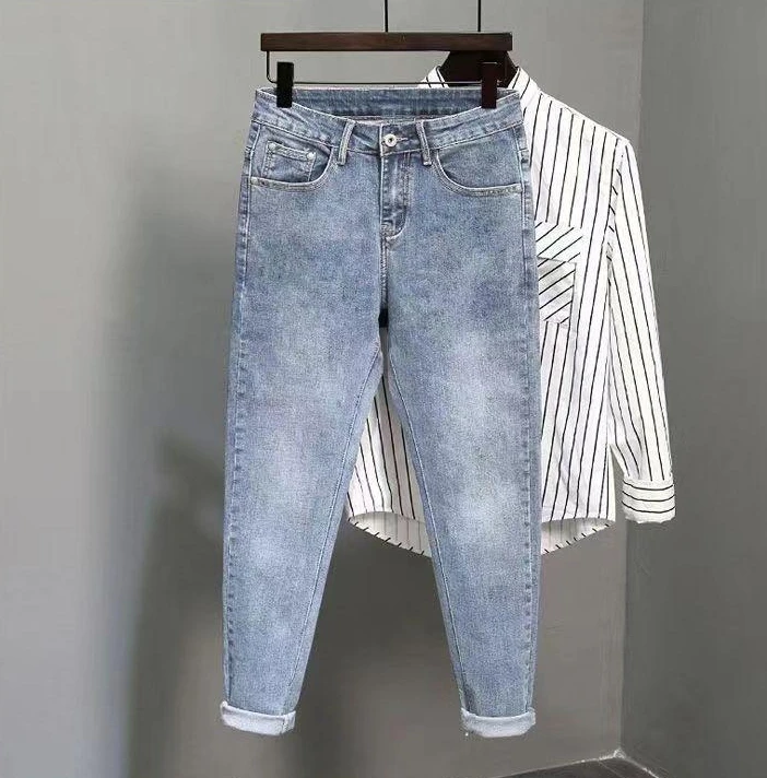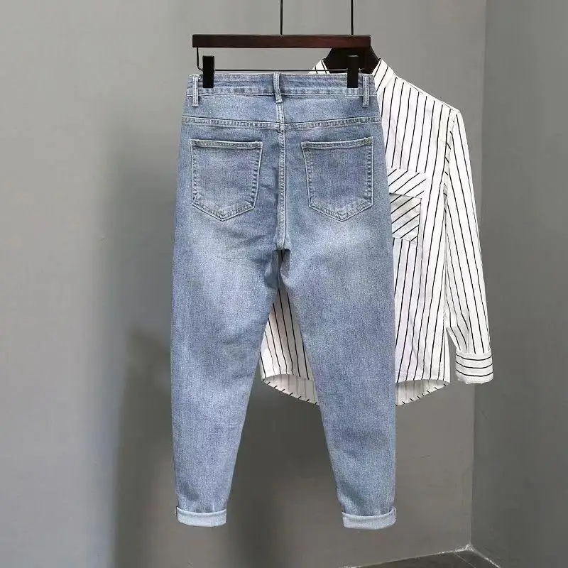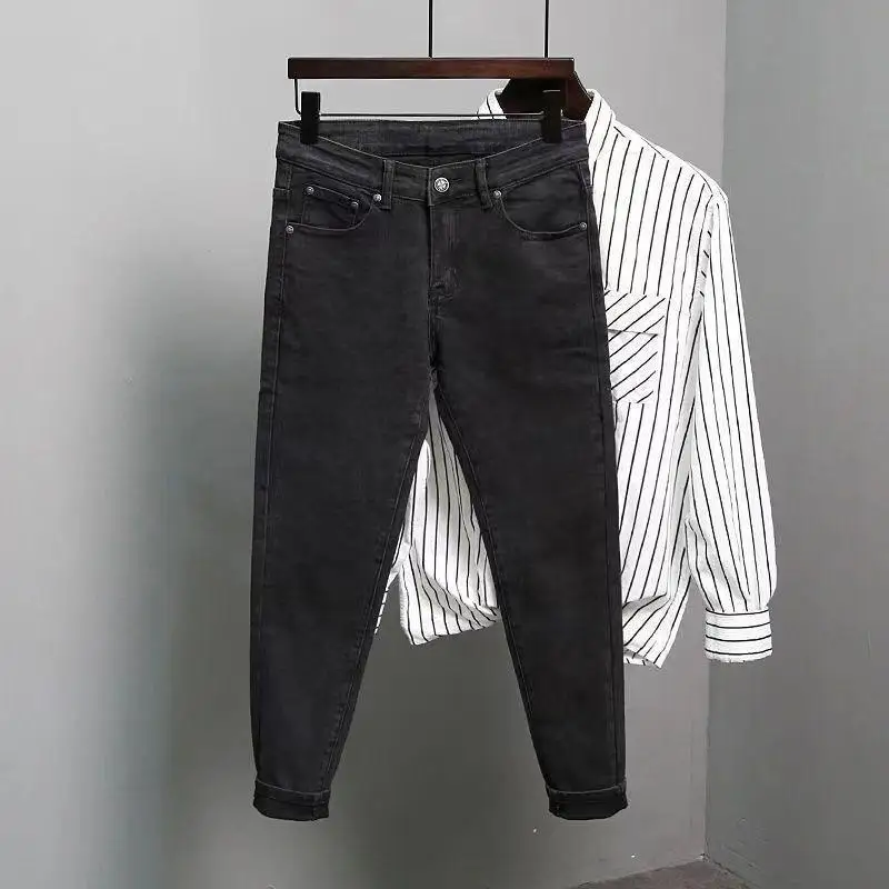 Men's Jeans Work Wear Stretch Elastic Retro Casual Male Cowboy Pants Tapered Bla
