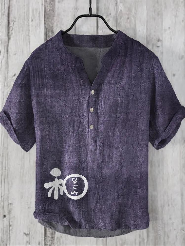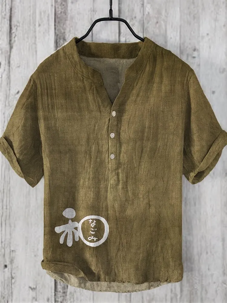 Men's Linen Blend Comfortable Breathable Shirt Loose Casual V-neck Tops Multiple