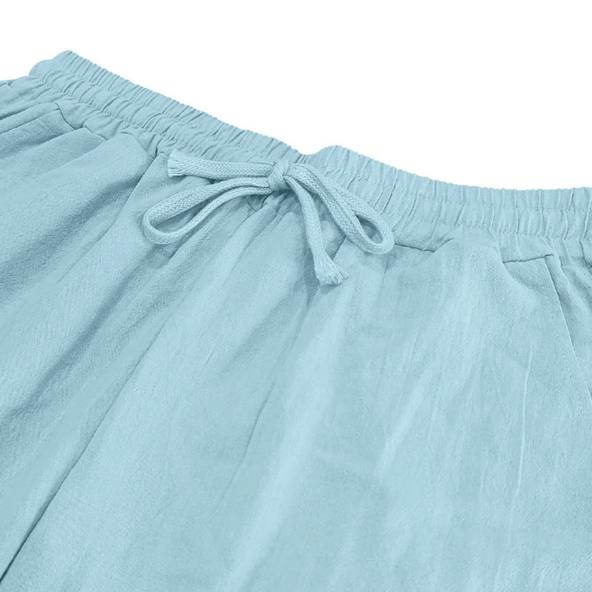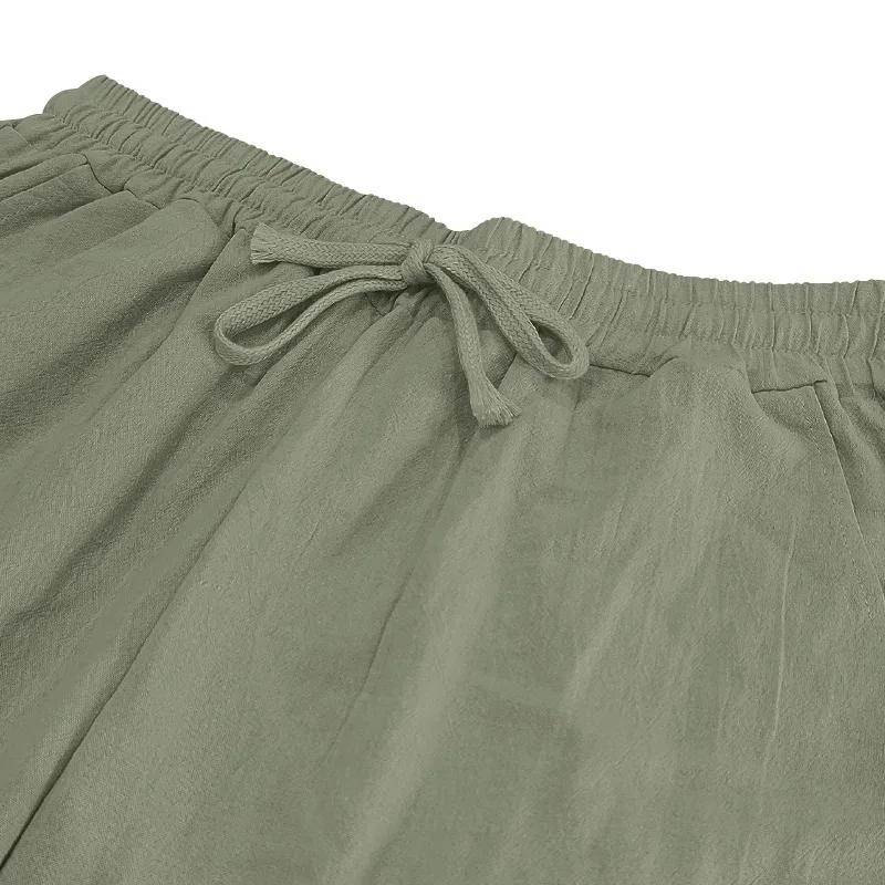 1. Selected cotton and linen material, breathable and absorbent. Loose straight plate type, free and easy. Drawstring design, suitable for a variety of waistlines, spring and summer outdoor beach wear choice.