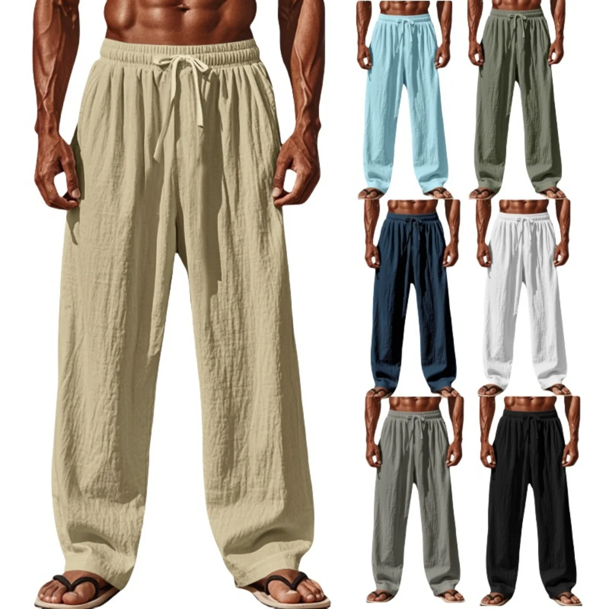 Men's New Cotton Hemp Casual Pants, Spring And Summer Solid Color Comfortable Lo