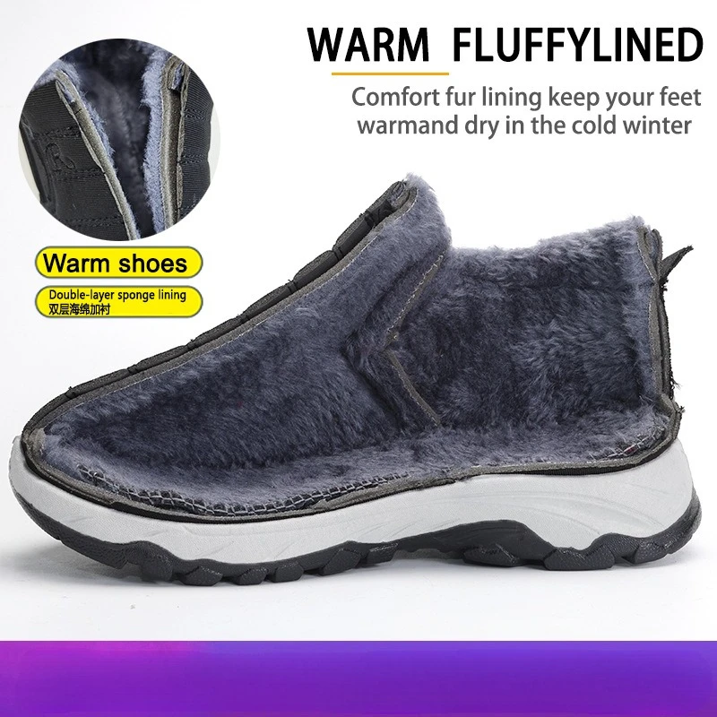 Men's Winter Snow Boots Outdoor Suede Anti-Slip Shoes Warm Fur Lined Casual Comf