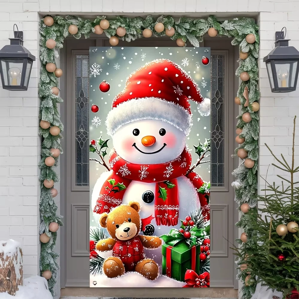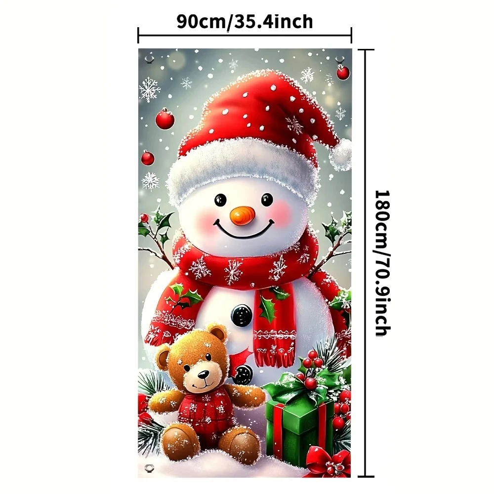Merry Christmas Decorations Door Cover Banner Cute Snowman Bear Gift Backdrop Xmas Party Indoor Outdoor Background Deco Supplies