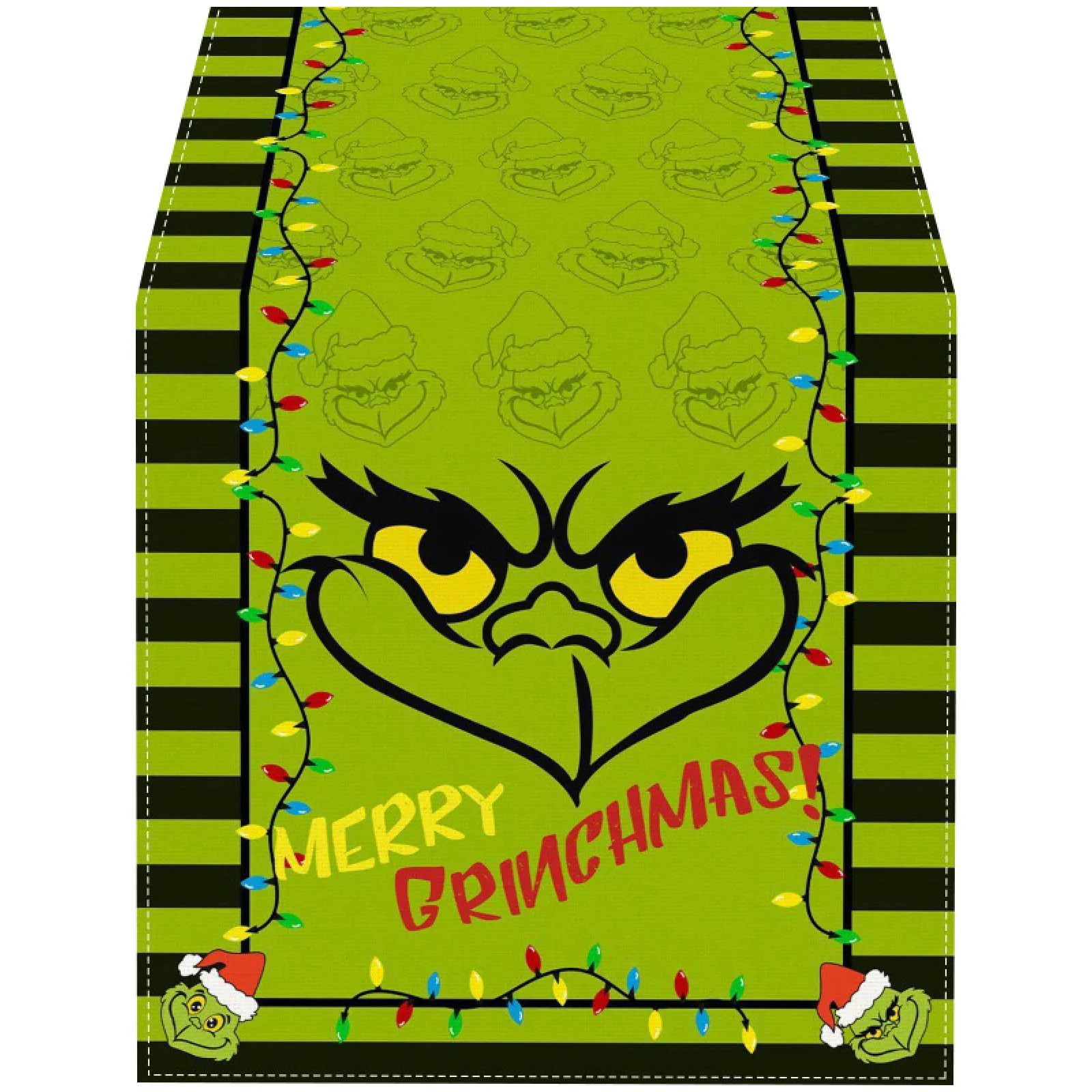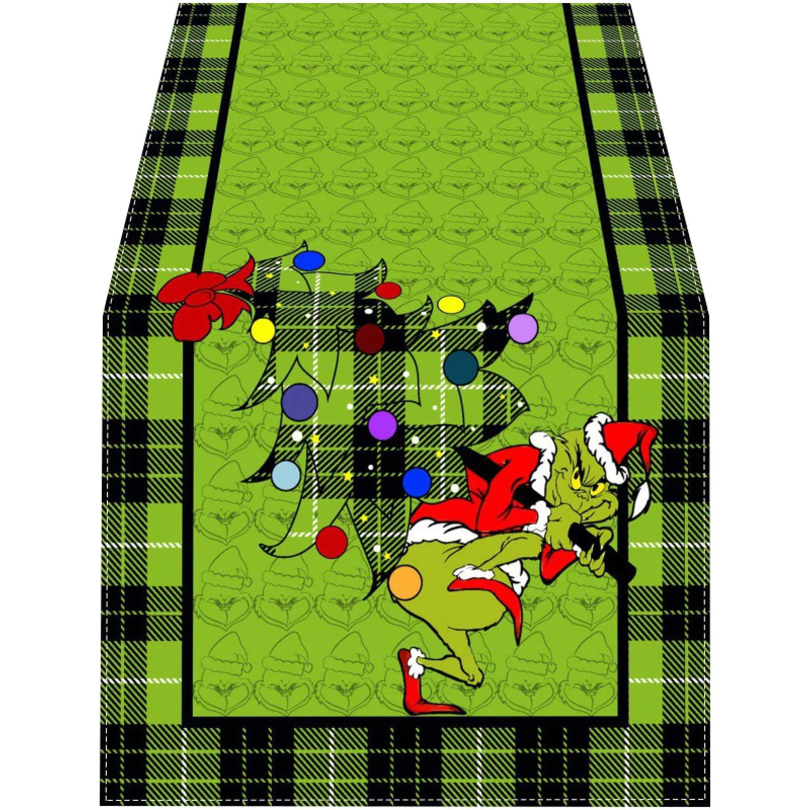 Linen Green Christmas Table Runner Merry Tablecloth Christmas Xmas Holiday Table Decorations