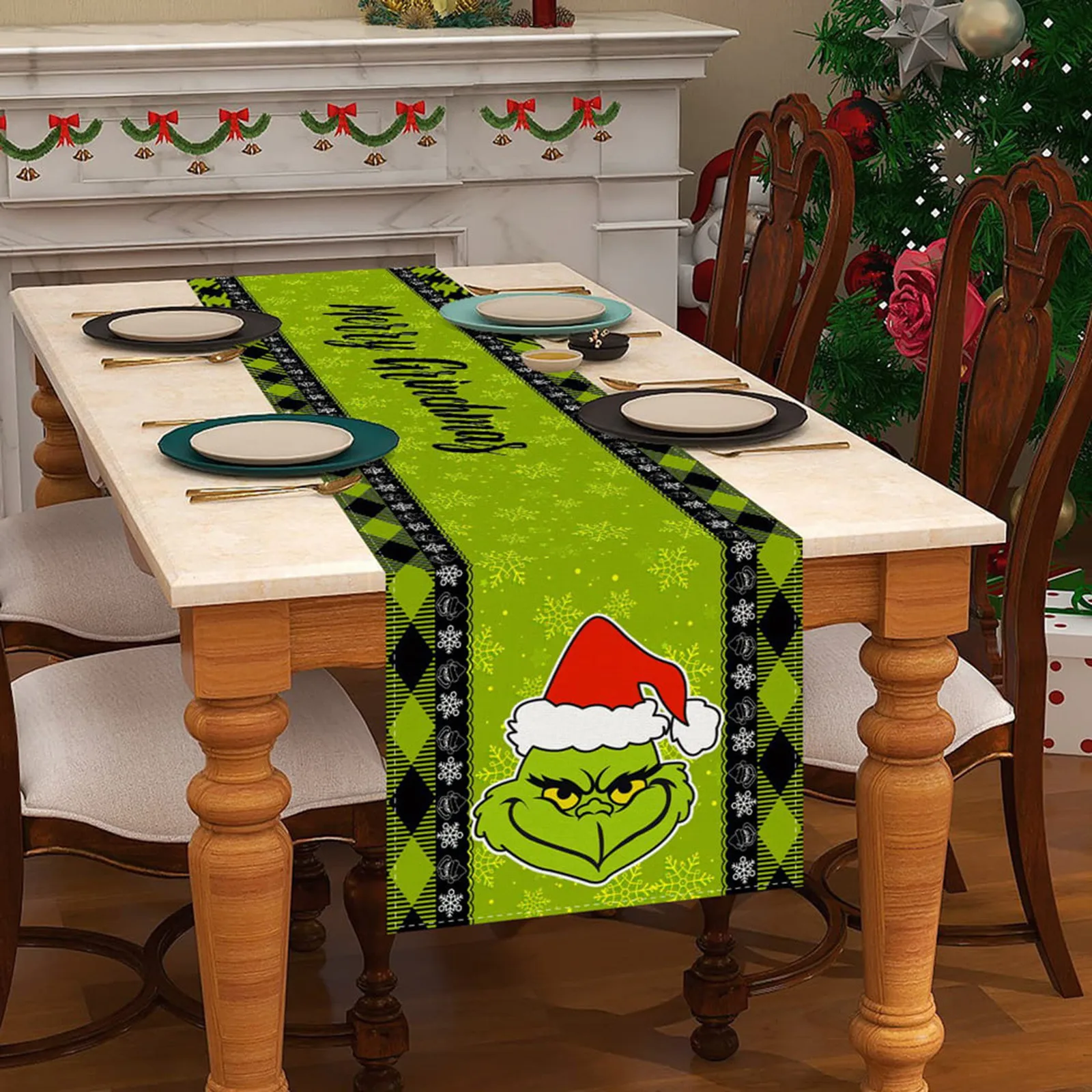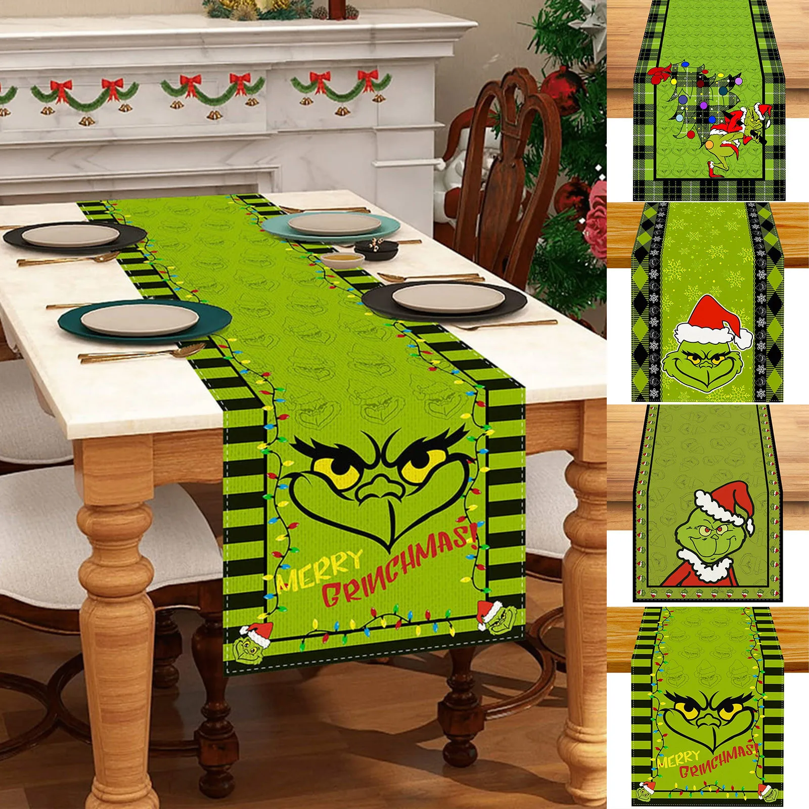 Navidad Decoraciones Para El Hogar Linen Green Christmas Table Runner Merry Tabl