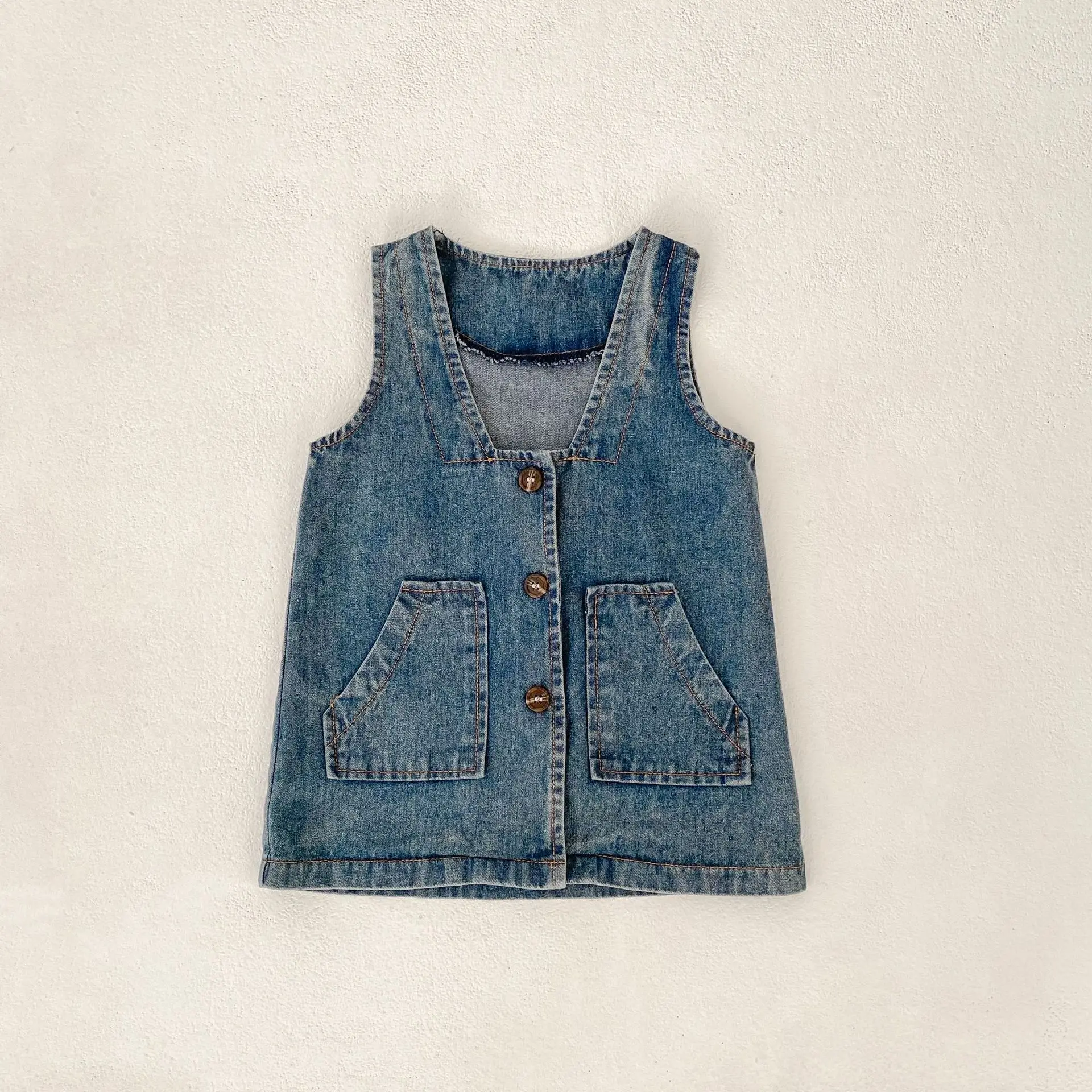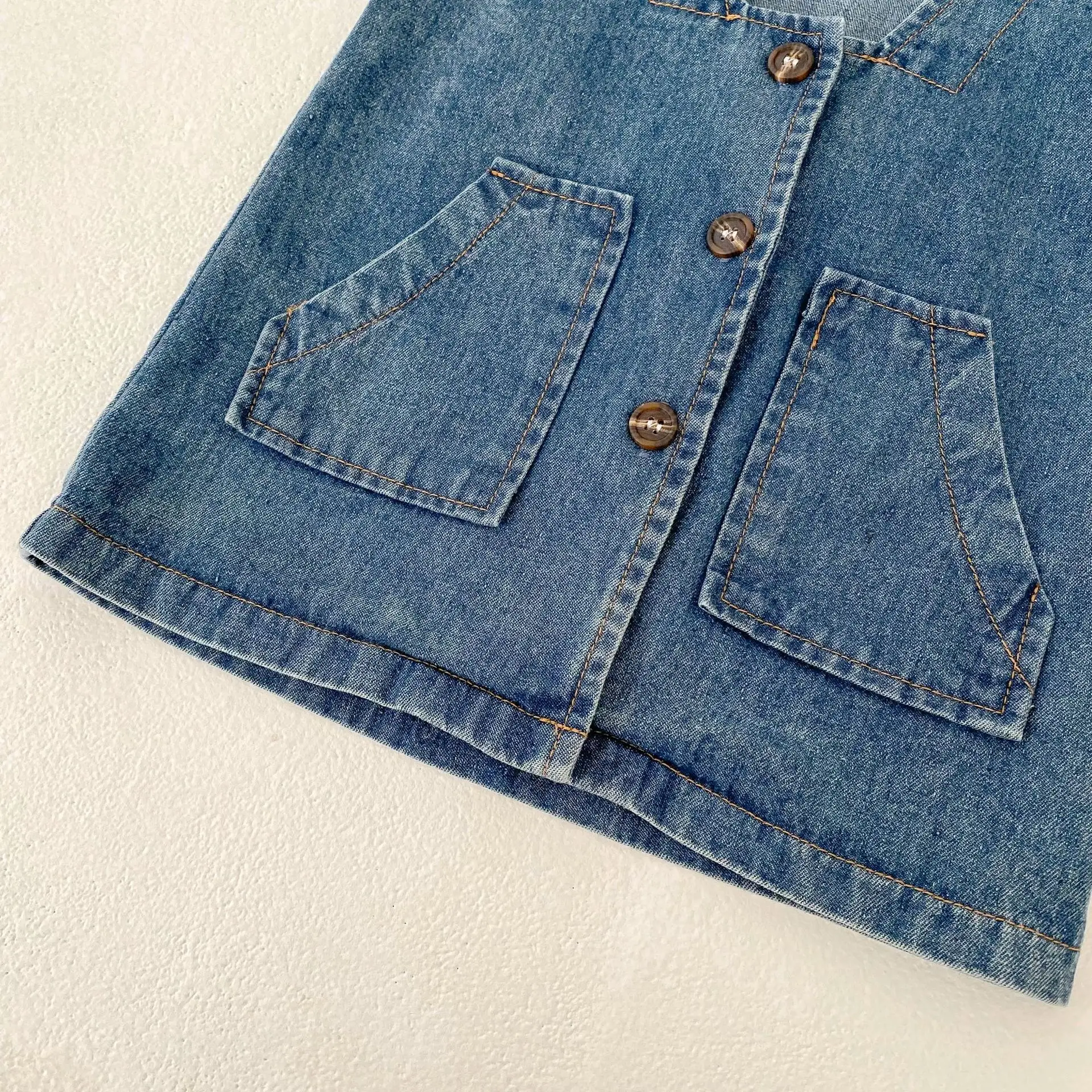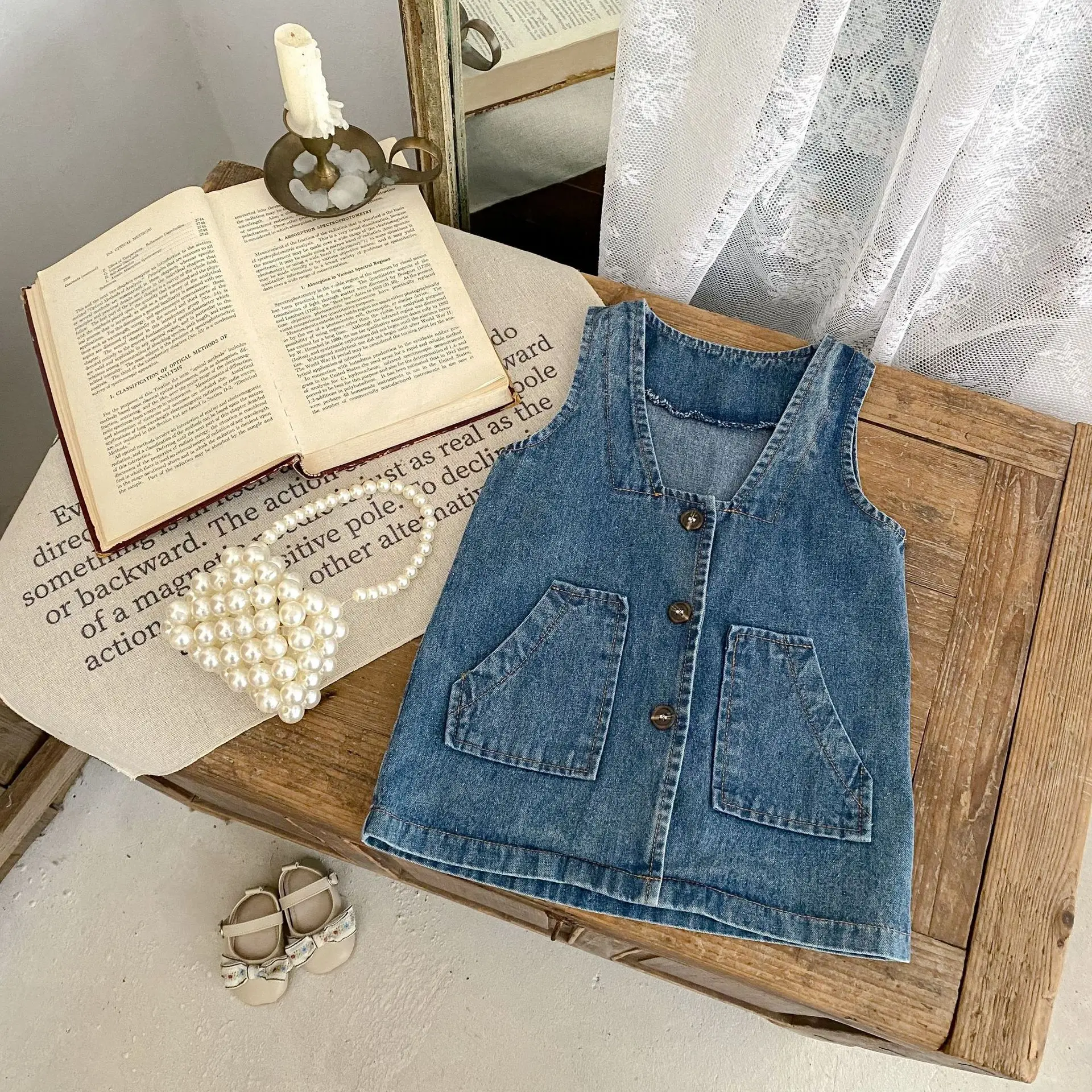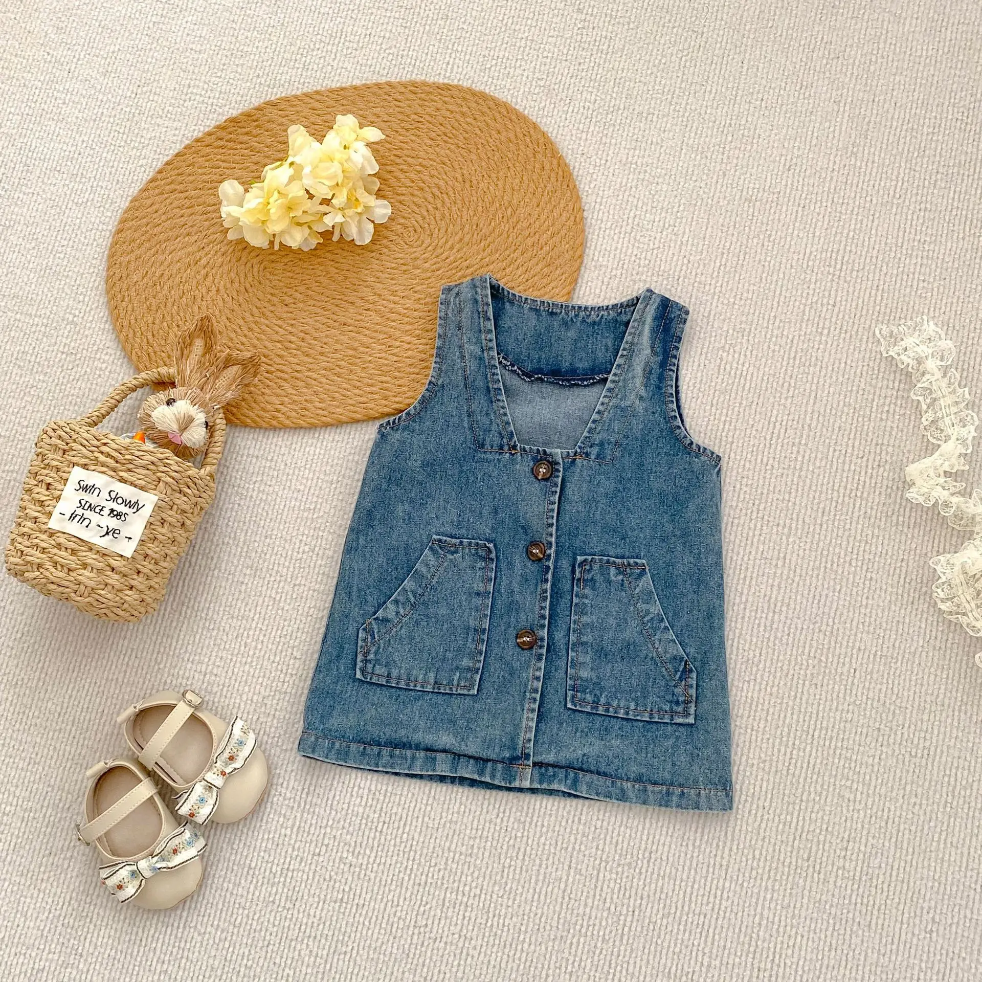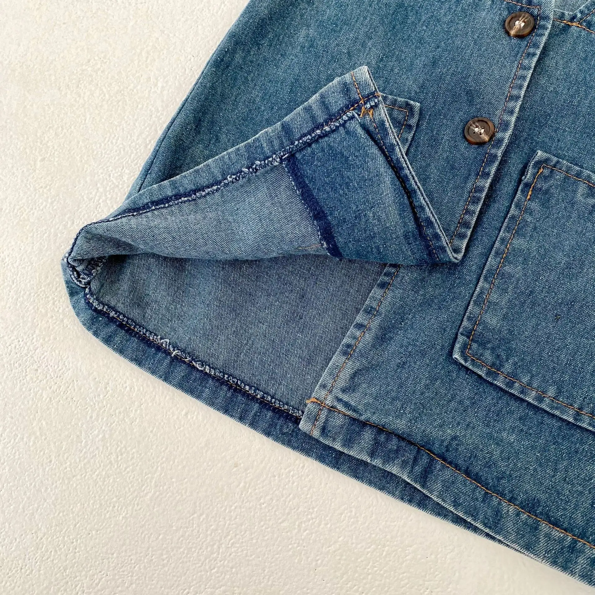New Denim Vest Dress for Baby Girls, 2025 Versatile Dress for Girls, Double Pock