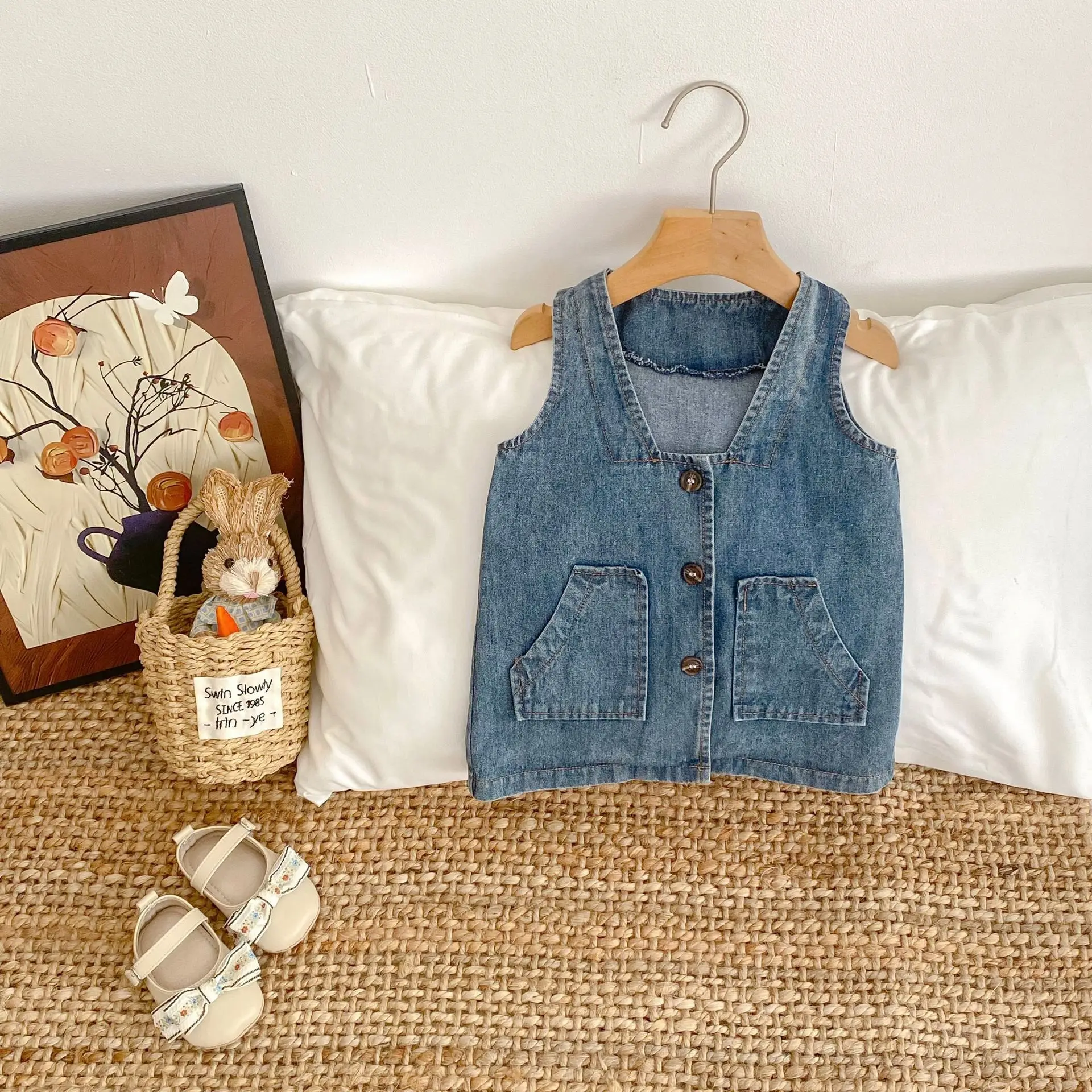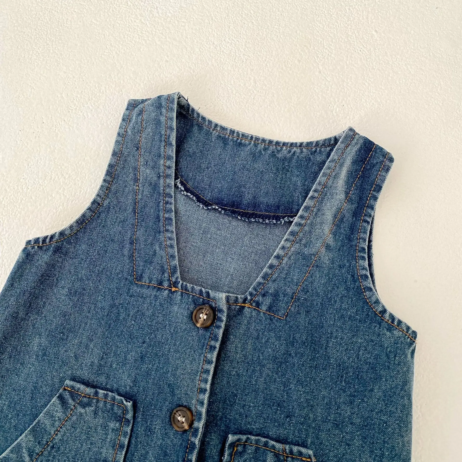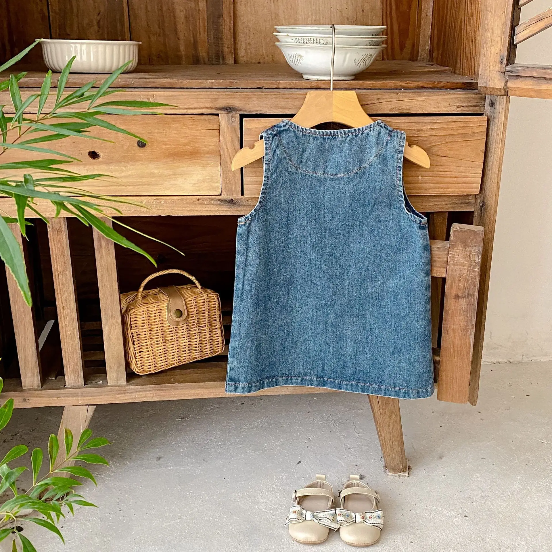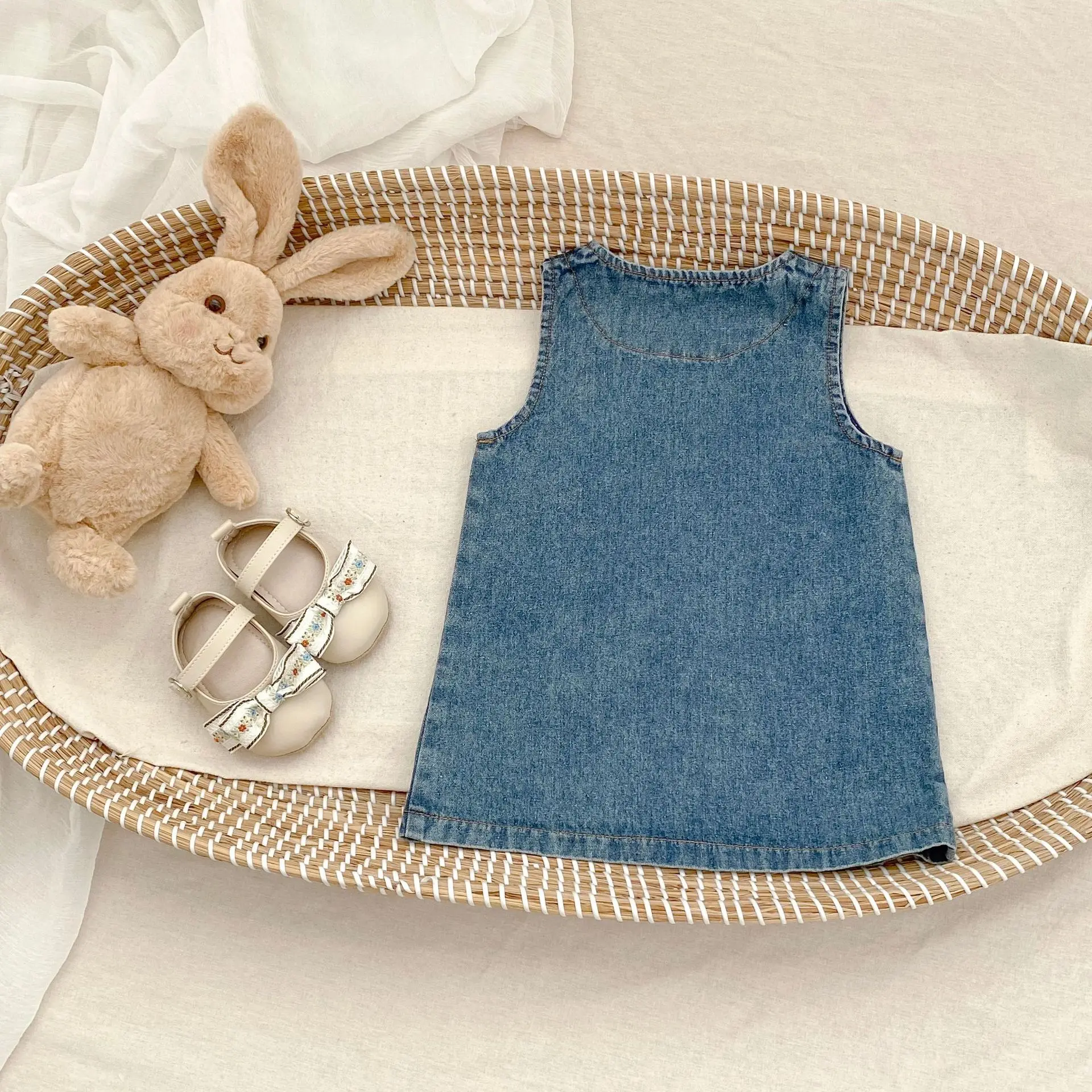 New Denim Vest Dress for Baby Girls, 2025 Versatile Dress for Girls, Double Pock
