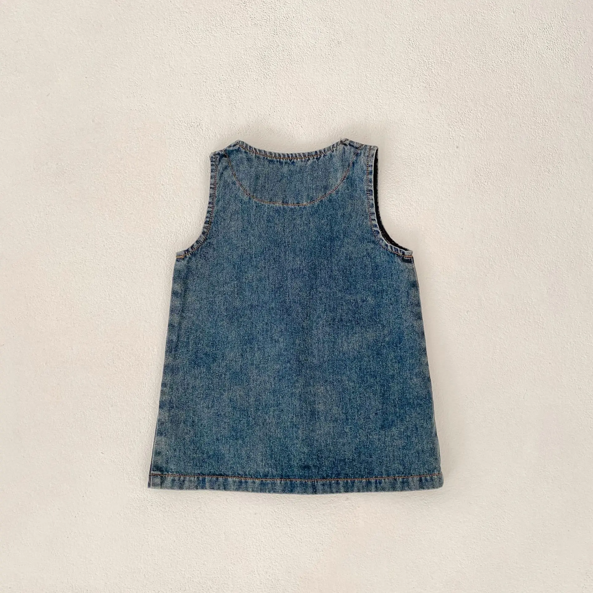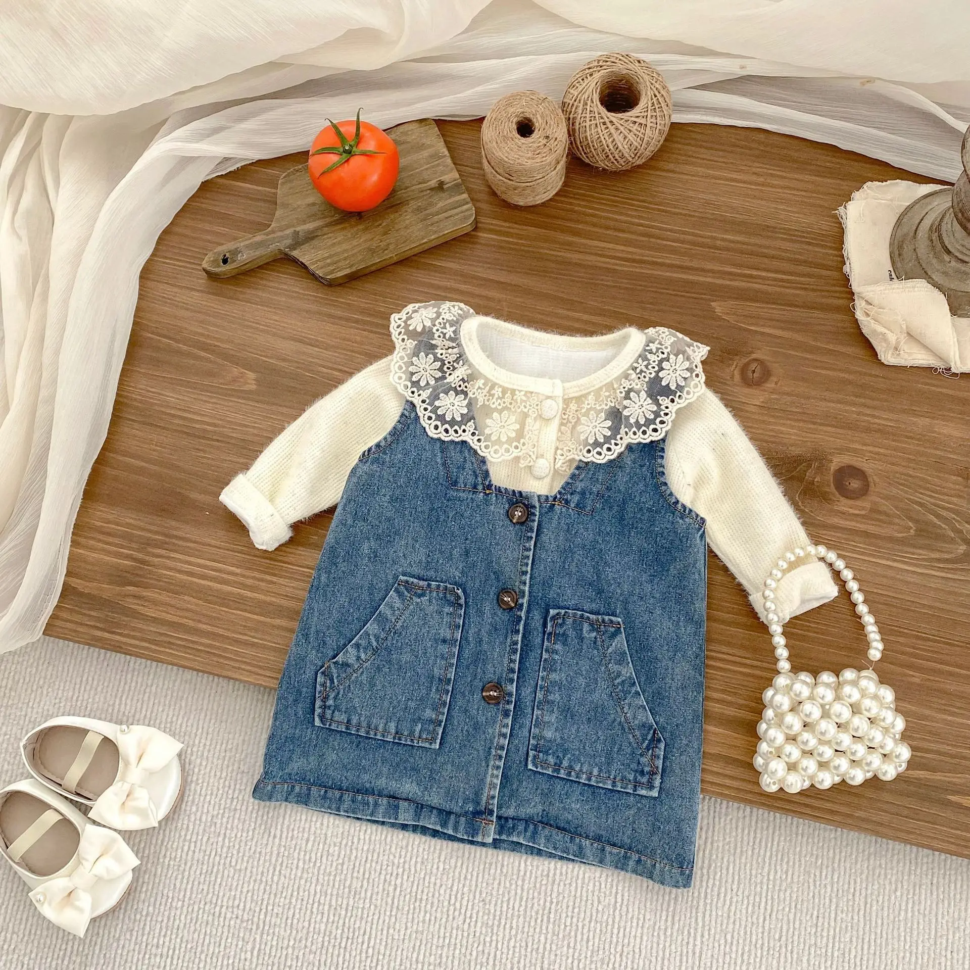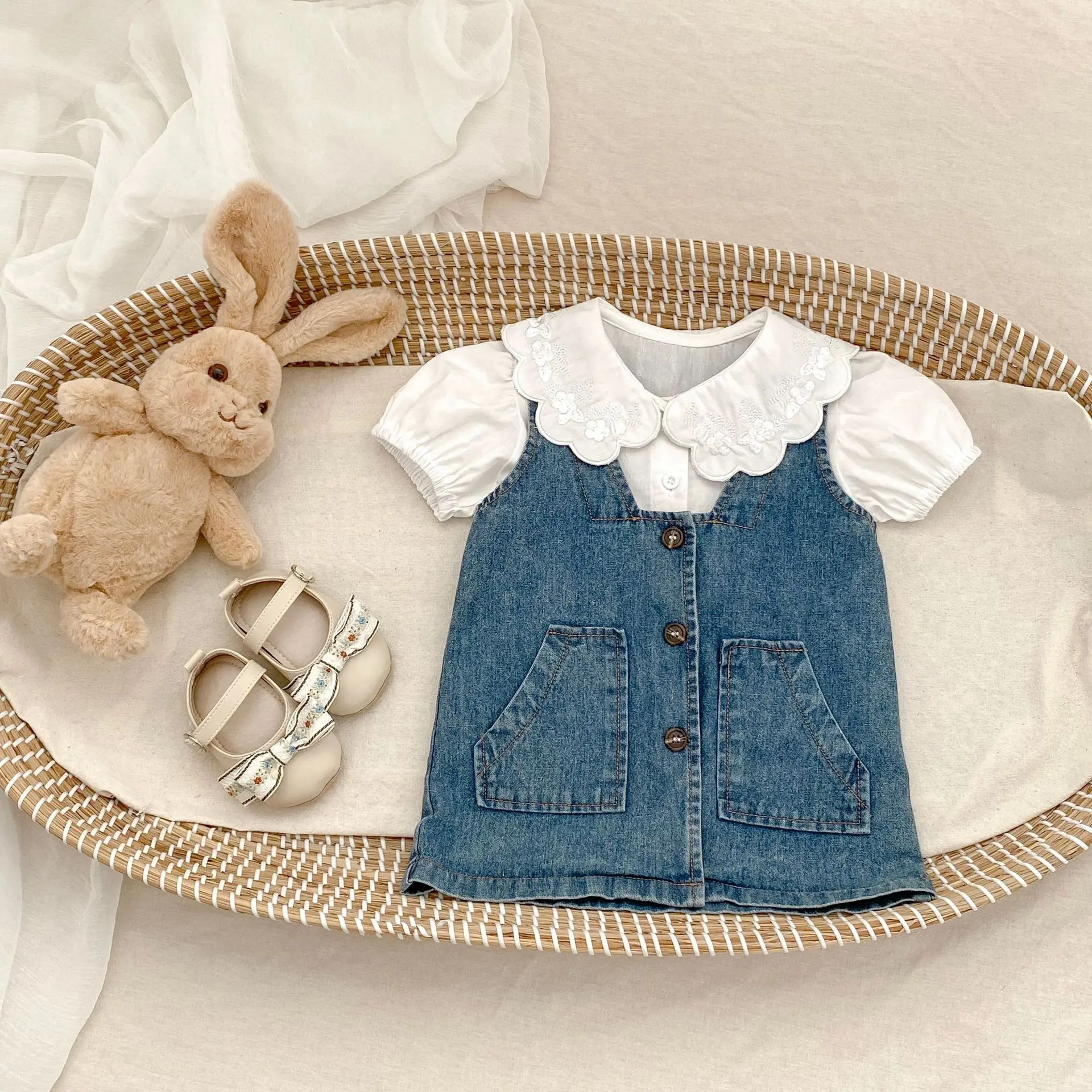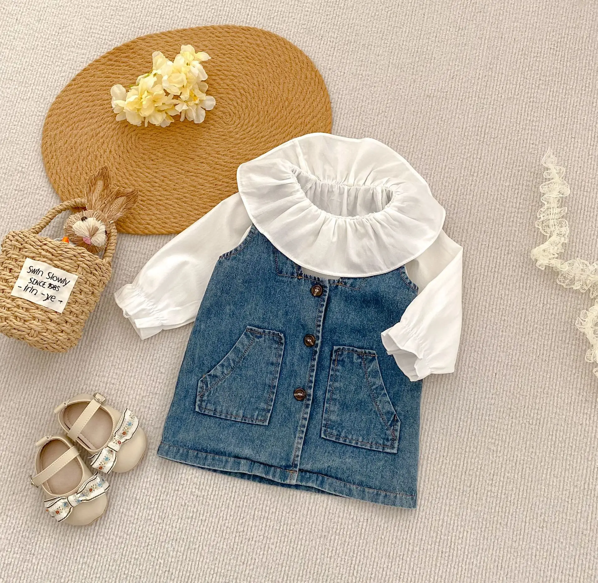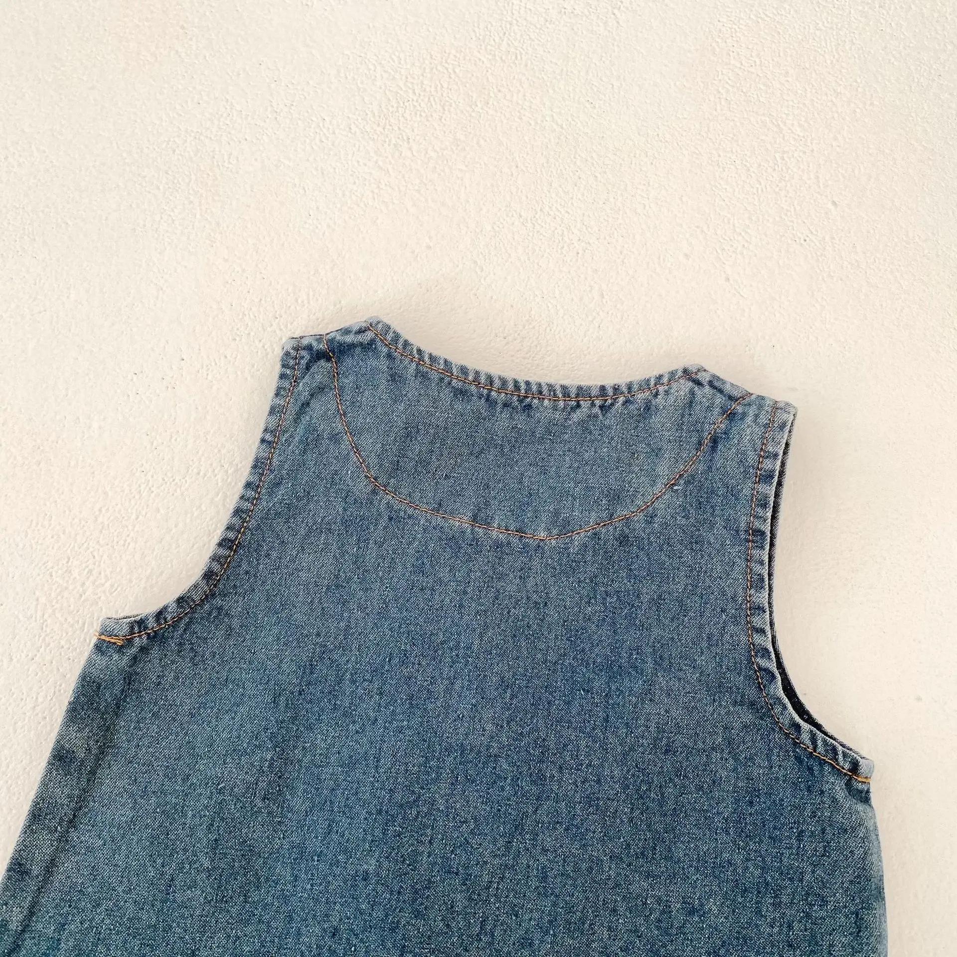 New Denim Vest Dress for Baby Girls, 2025 Versatile Dress for Girls, Double Pock