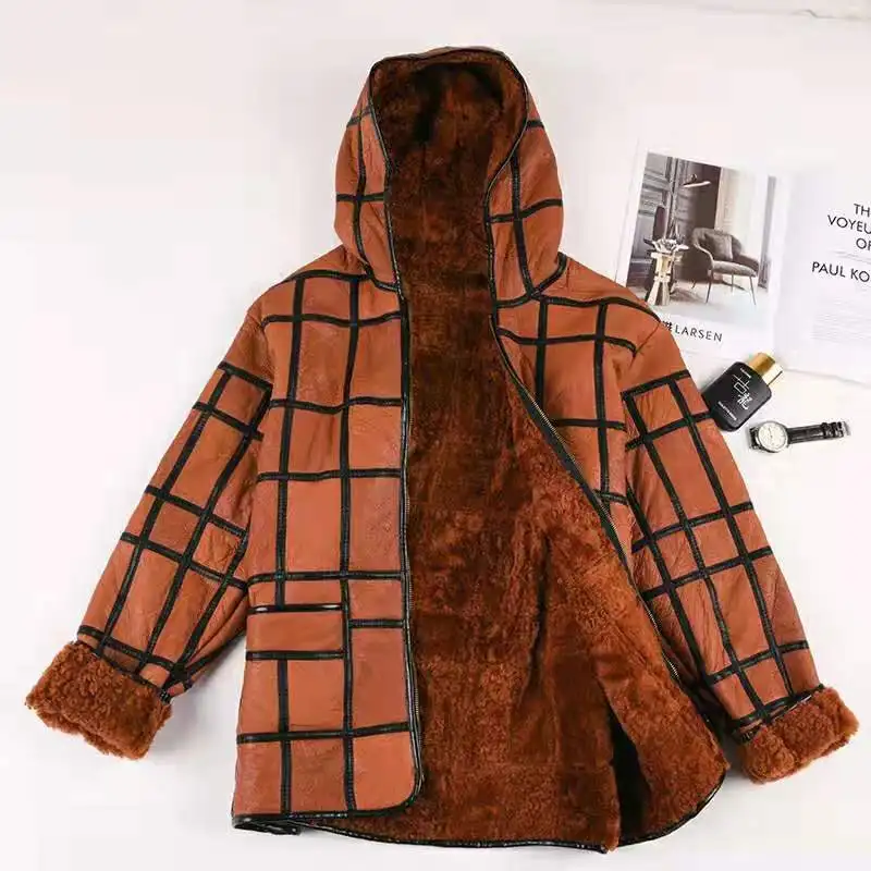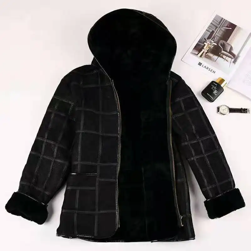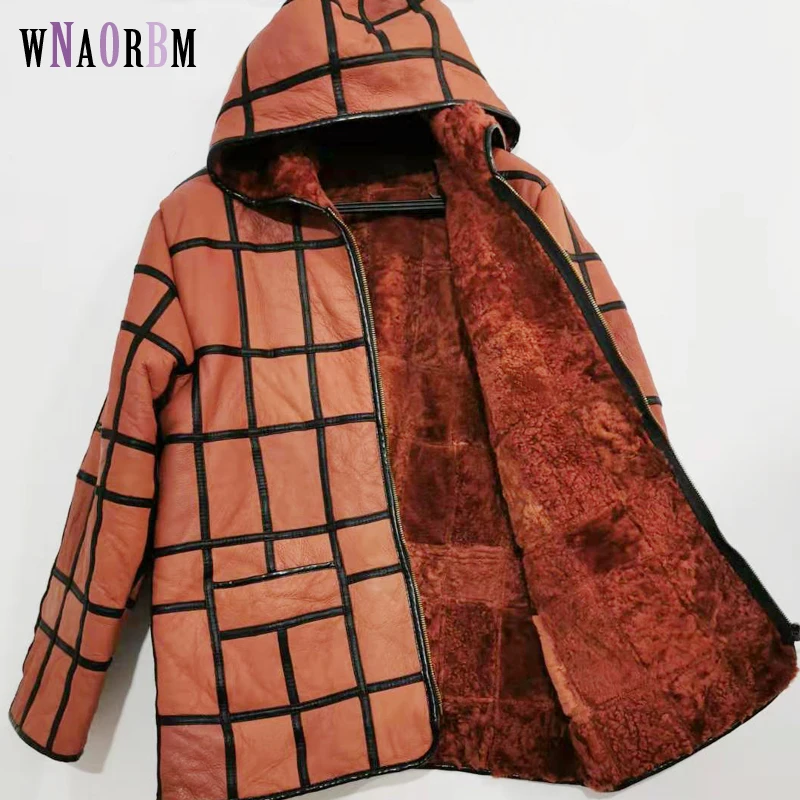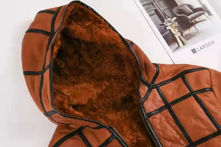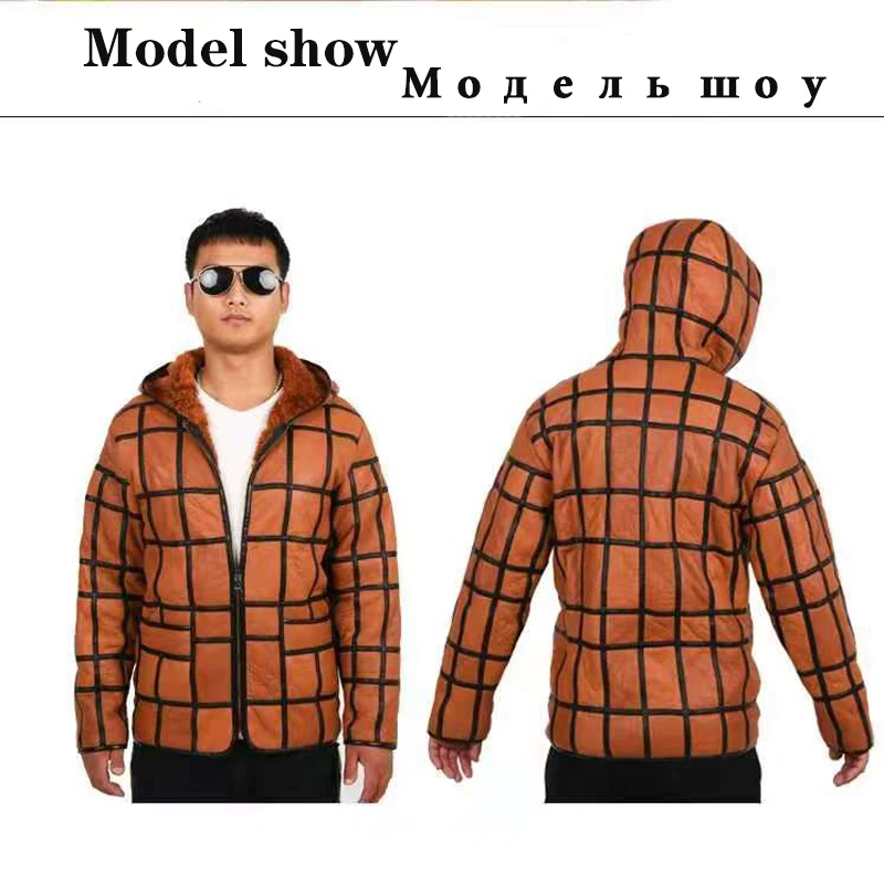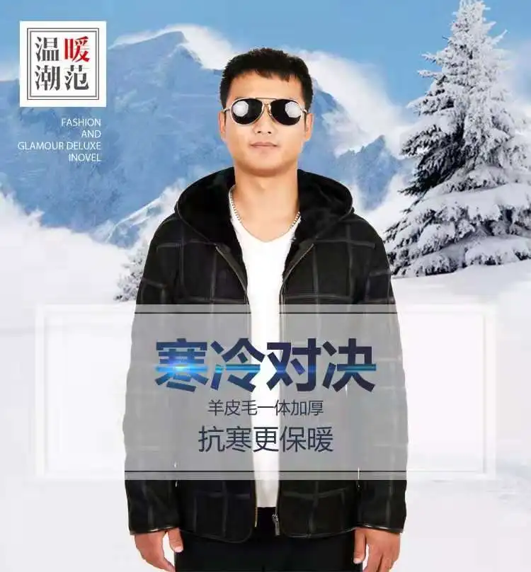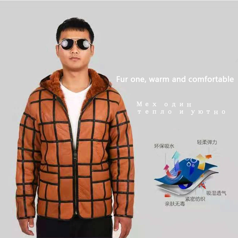 New warm men's fur coat plus hat men's 100% real sheepskin coat, men's suit, lea