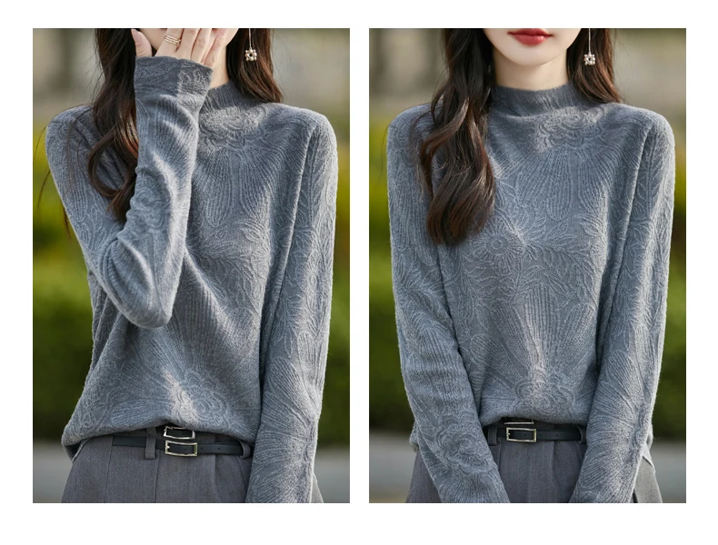 New Women Merino Wool Sweater Half-high Collar Jacquard Pullover Autumn Winte