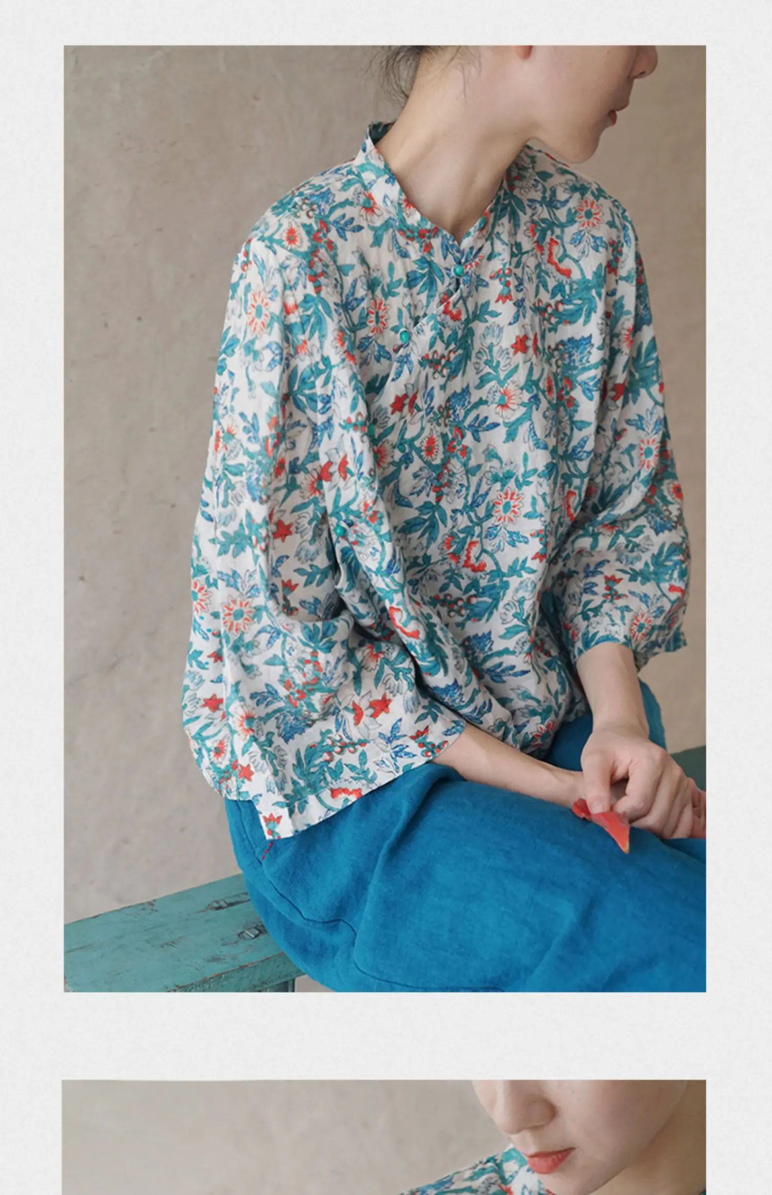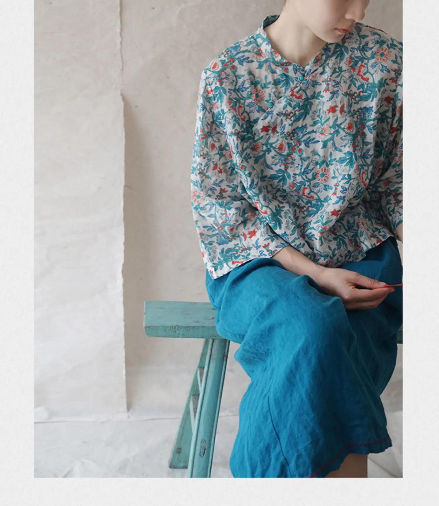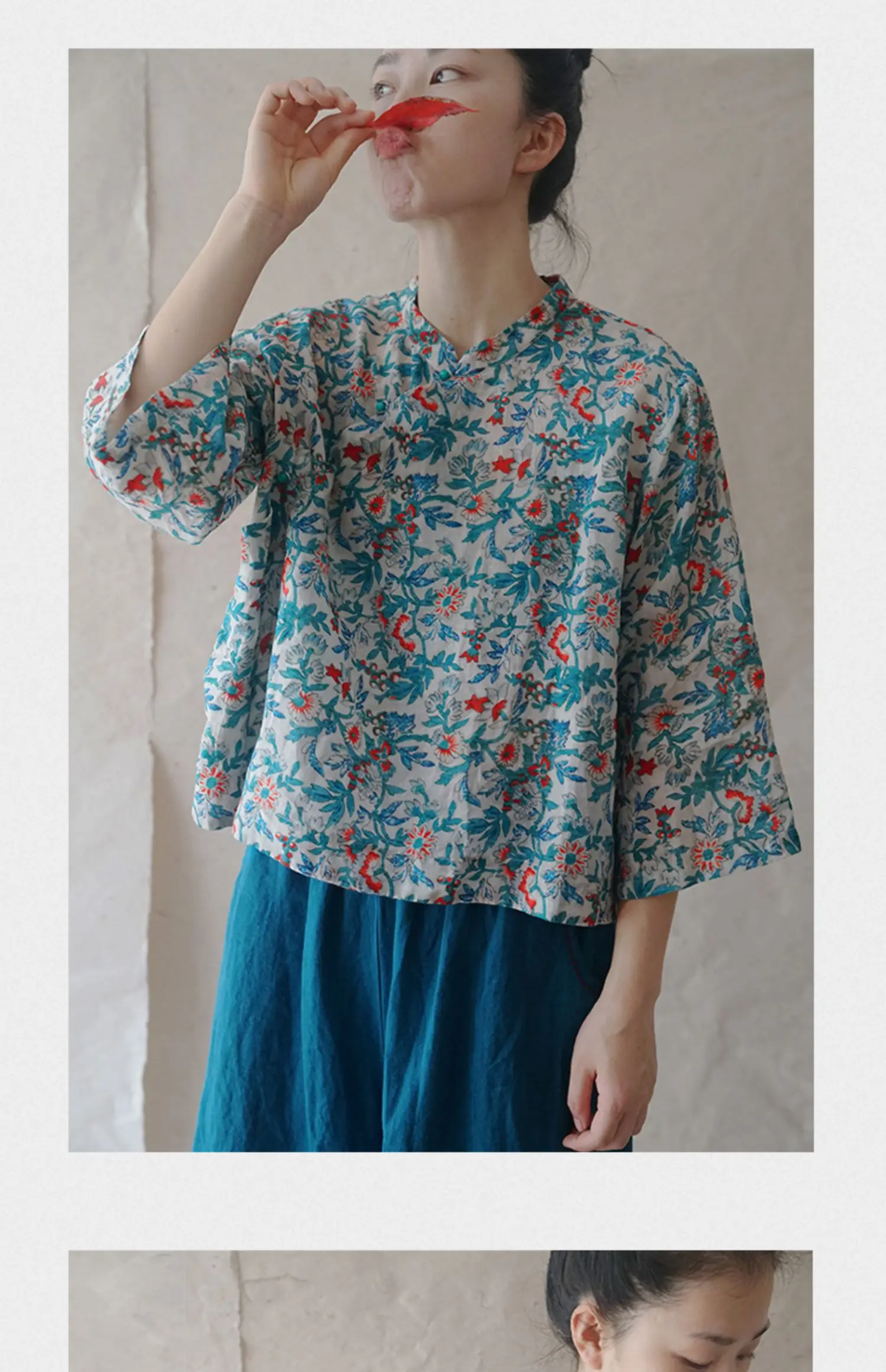 Original Cotton Hemp Shirt Female Leisure Chinese National Style Blouse Retro Ar