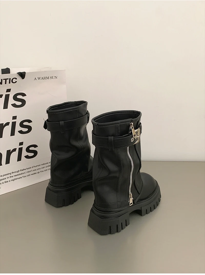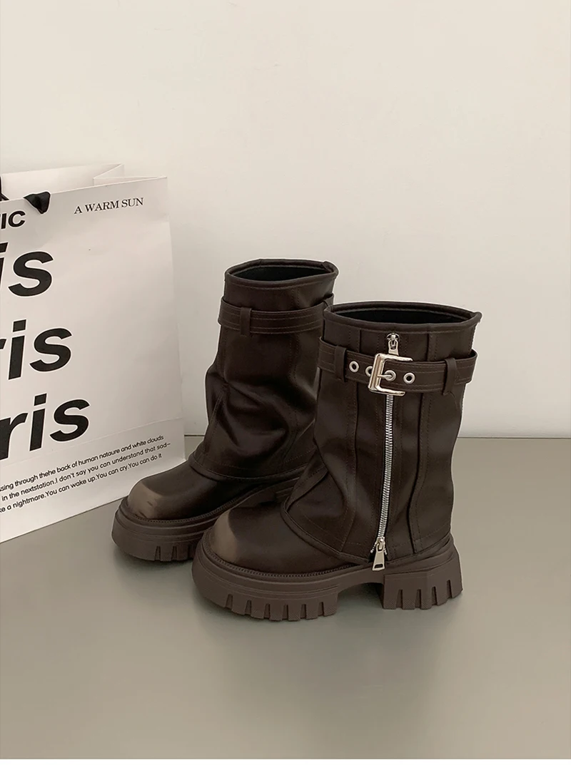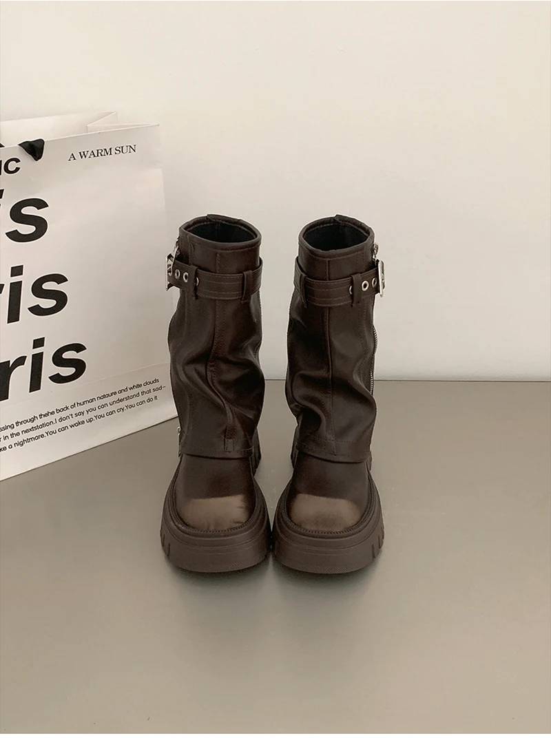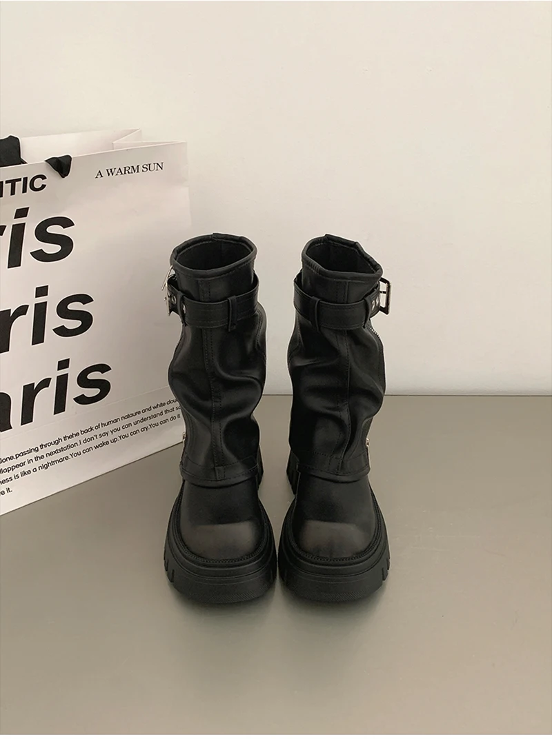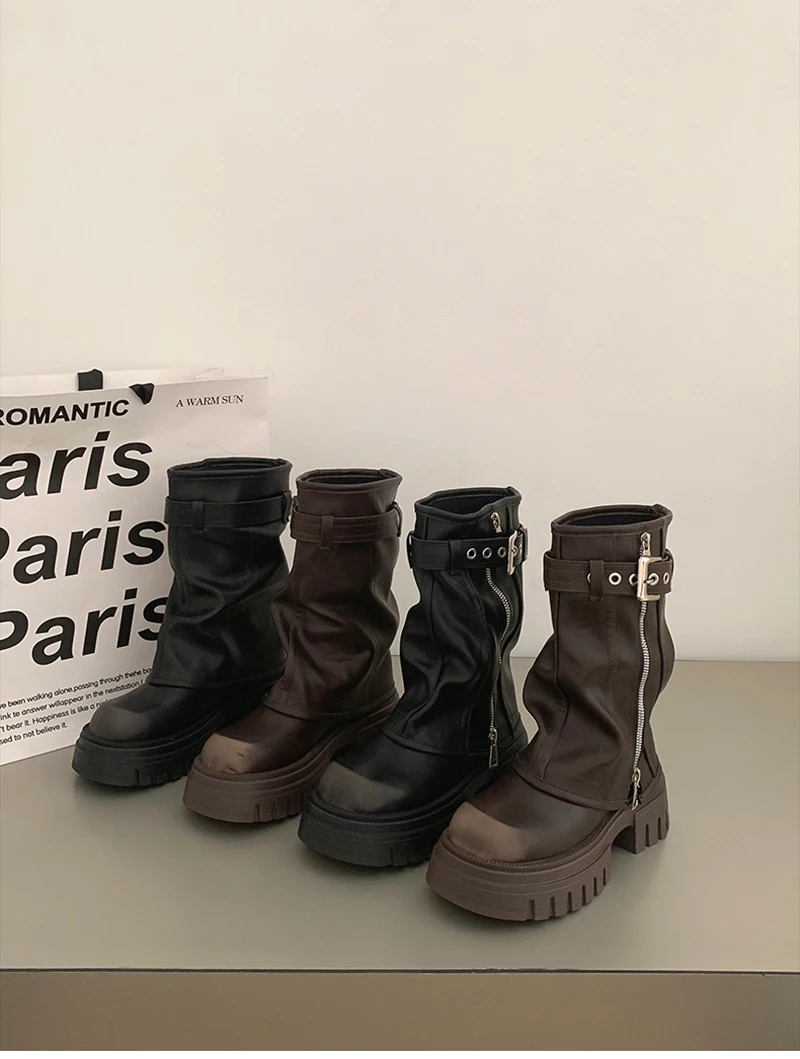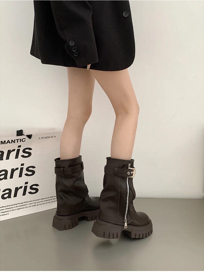 Platform Heel Mid Calf Boots Women Fashion Ladies Side Zippers Knight Boots 2025