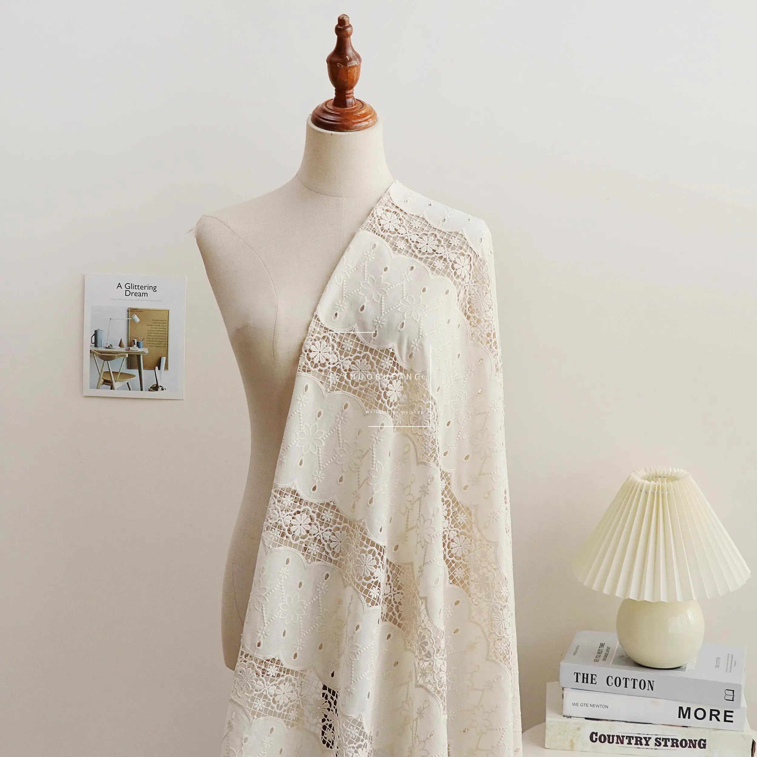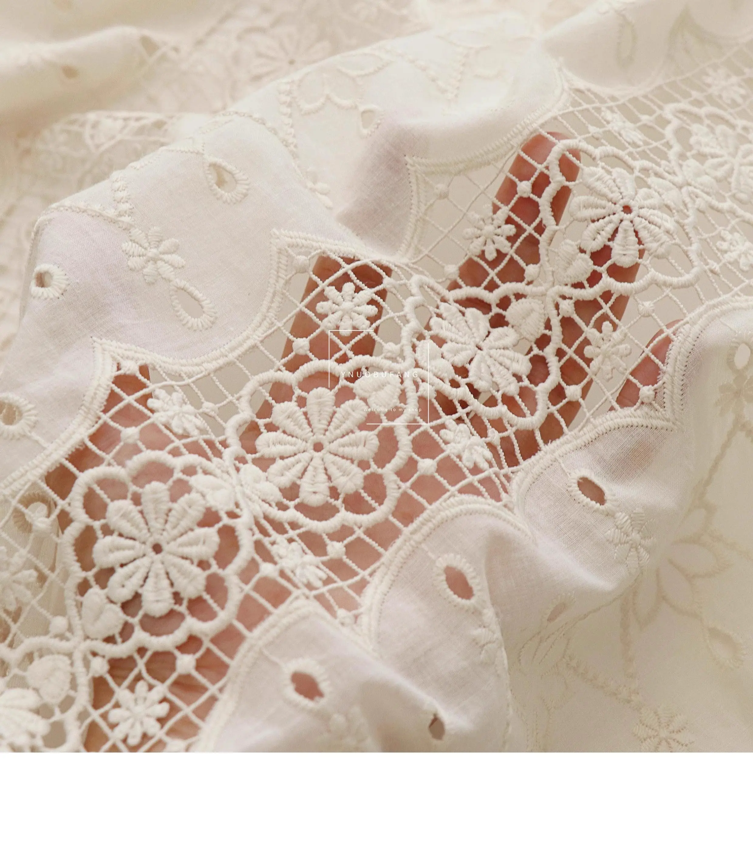 Pure Cotton Hollowed Out Embroidery Fabric Shirt Skirt Clothing Fabric DIY Table