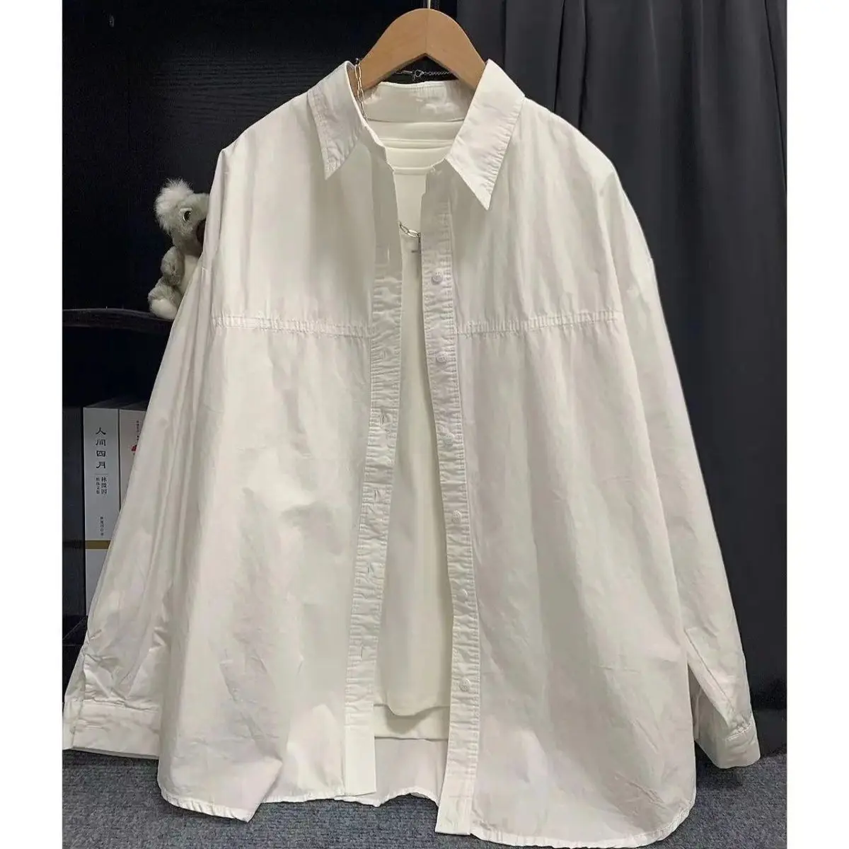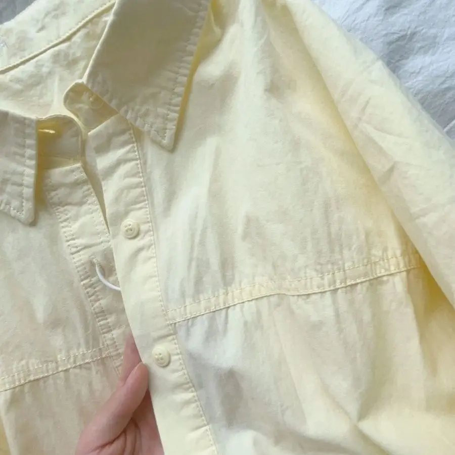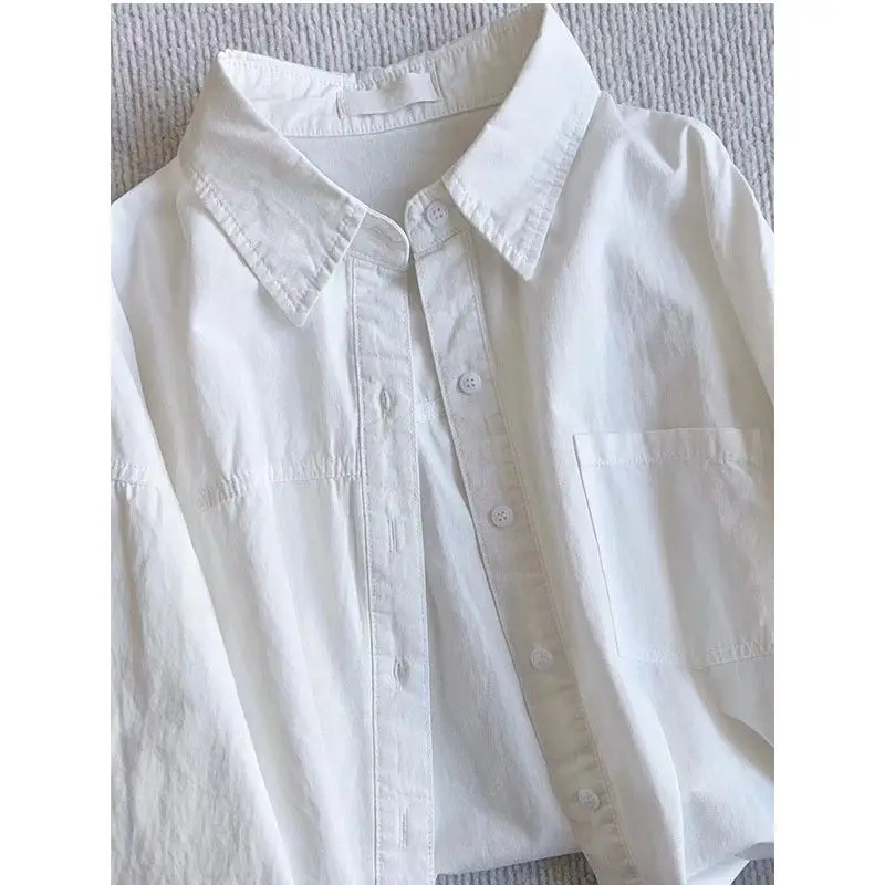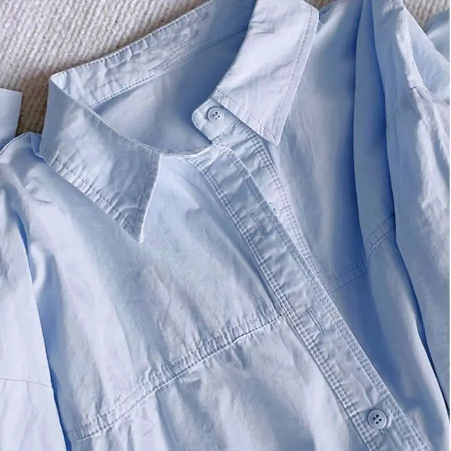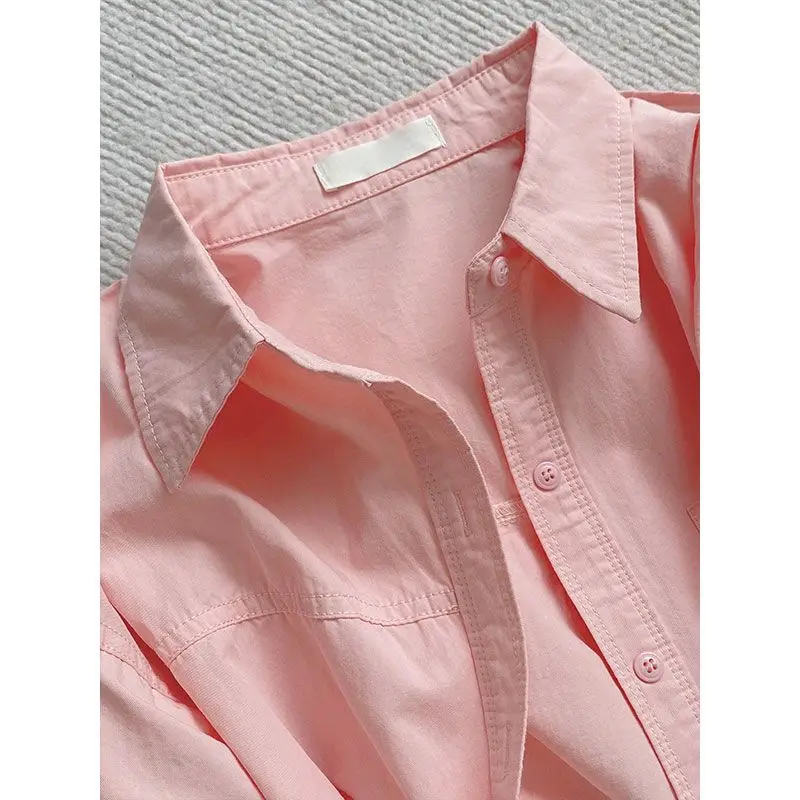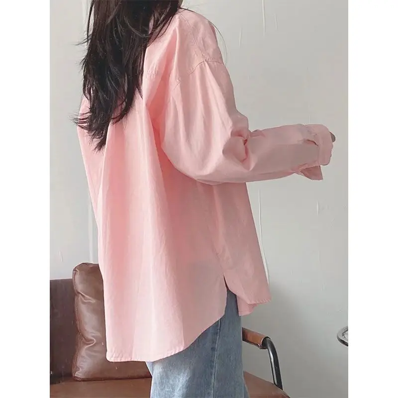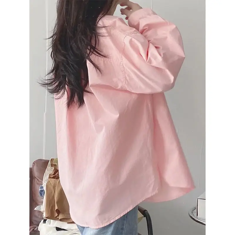 Pure Cotton Solid Color Long Sleeve Shirt for Women Spring Autumn Casual Loose C