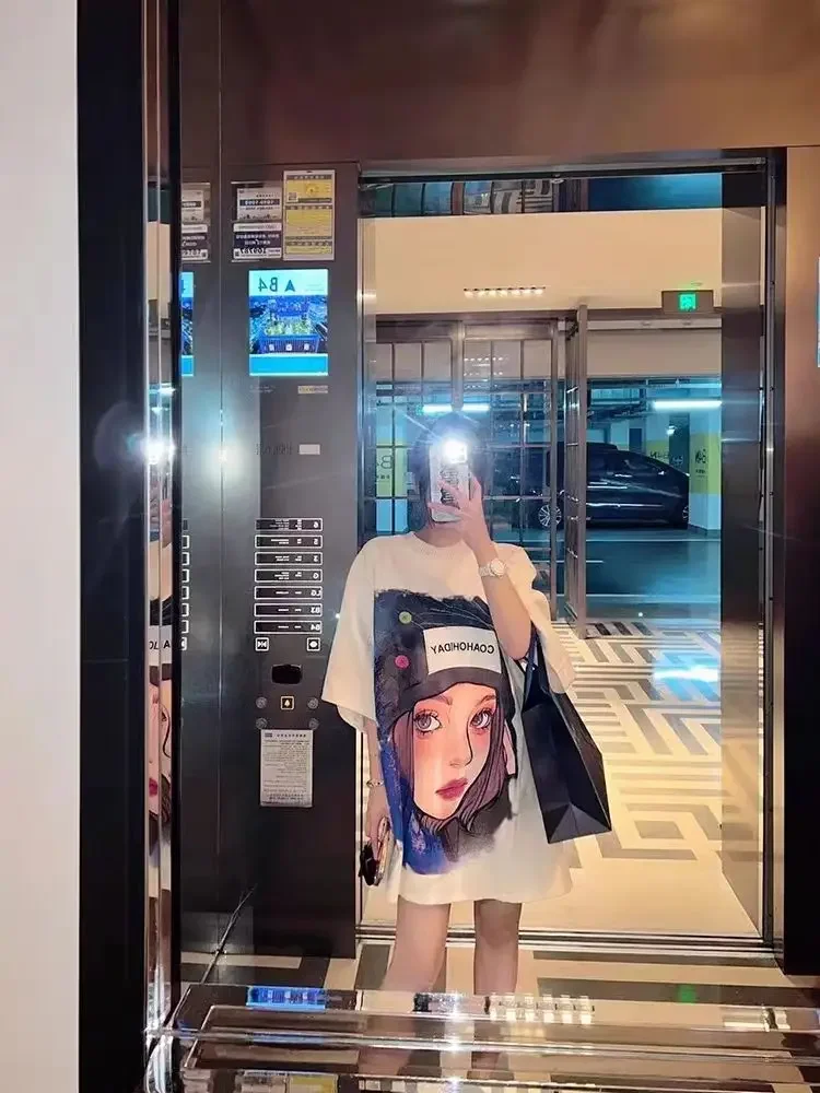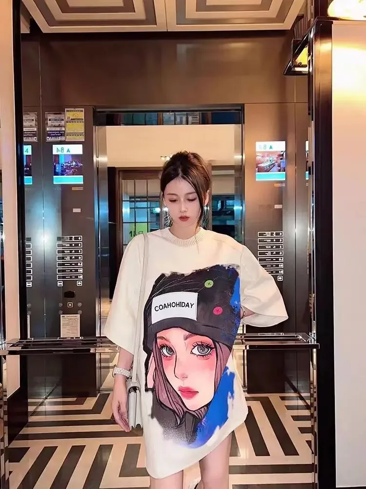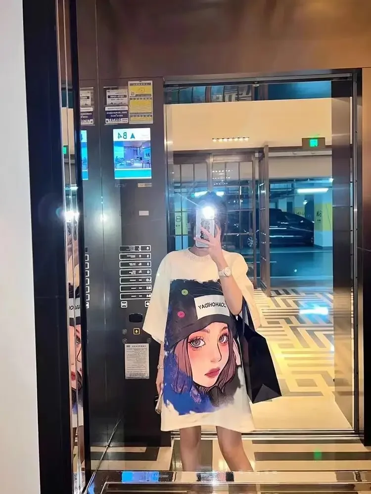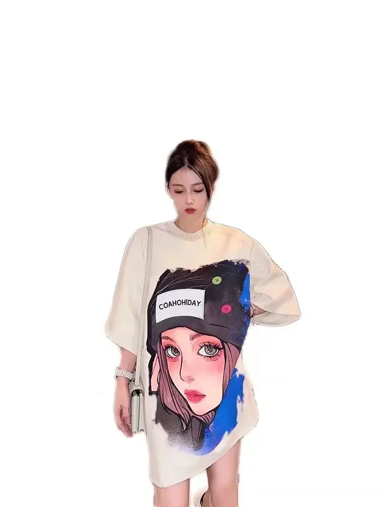 Pure cotton trendy fashionable sweet and spicy summer t-shirt for women mid-leng