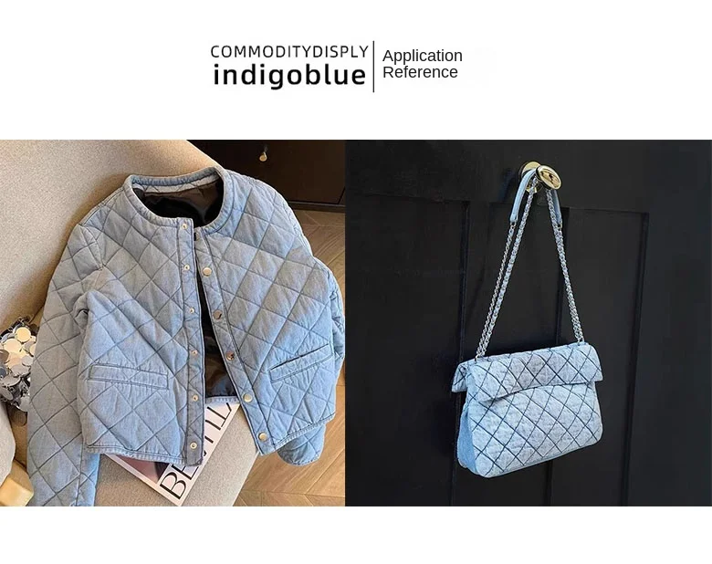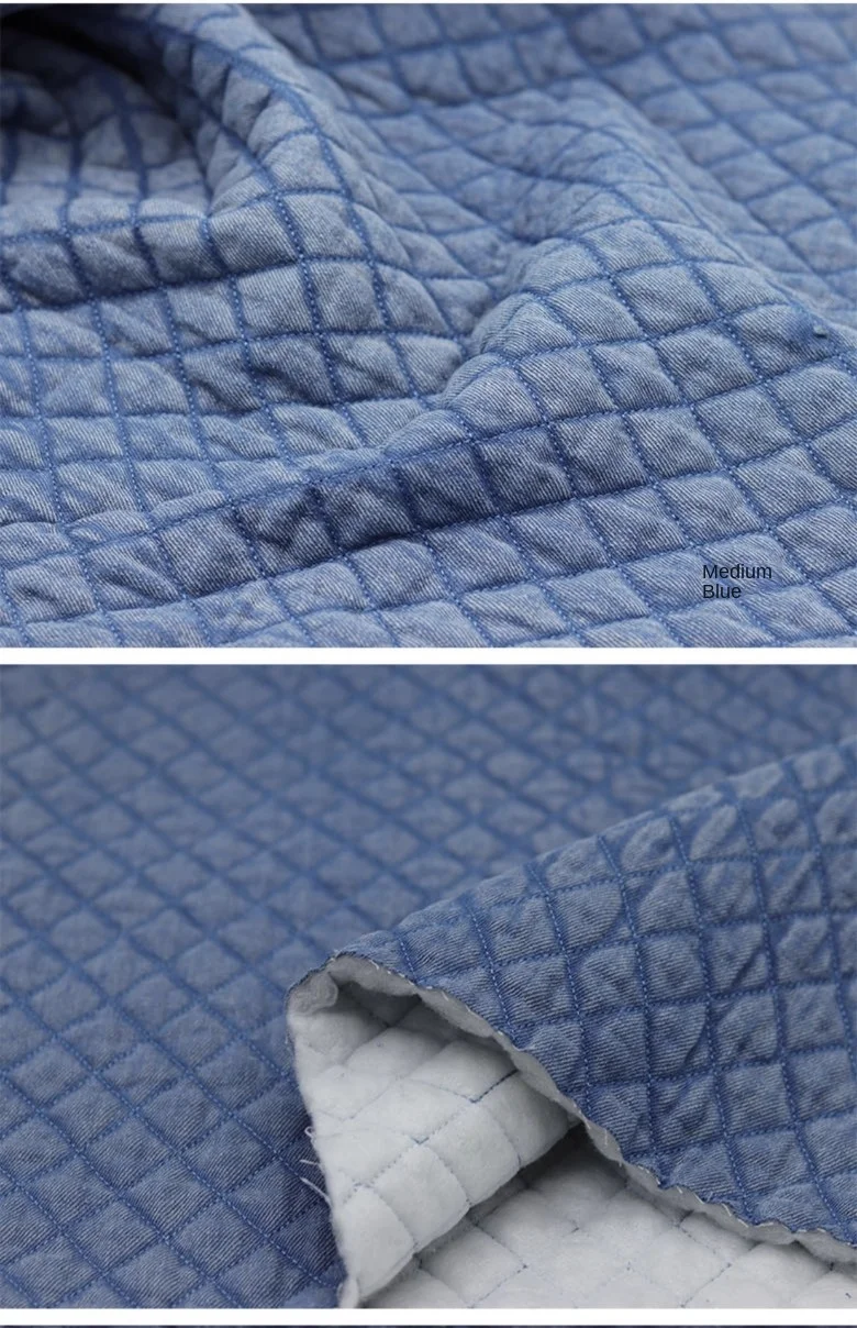Quilted Cotton Washed Denim Fabric Autumn Winter Retro Thickened for Clothing Ba