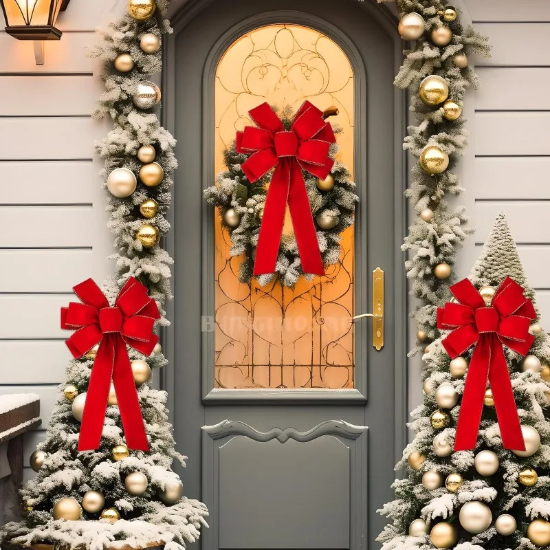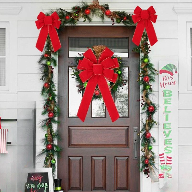 Red Christmas Bows Outdoor Decorations Large Christmas Tree Top Bow Velvet Wreat